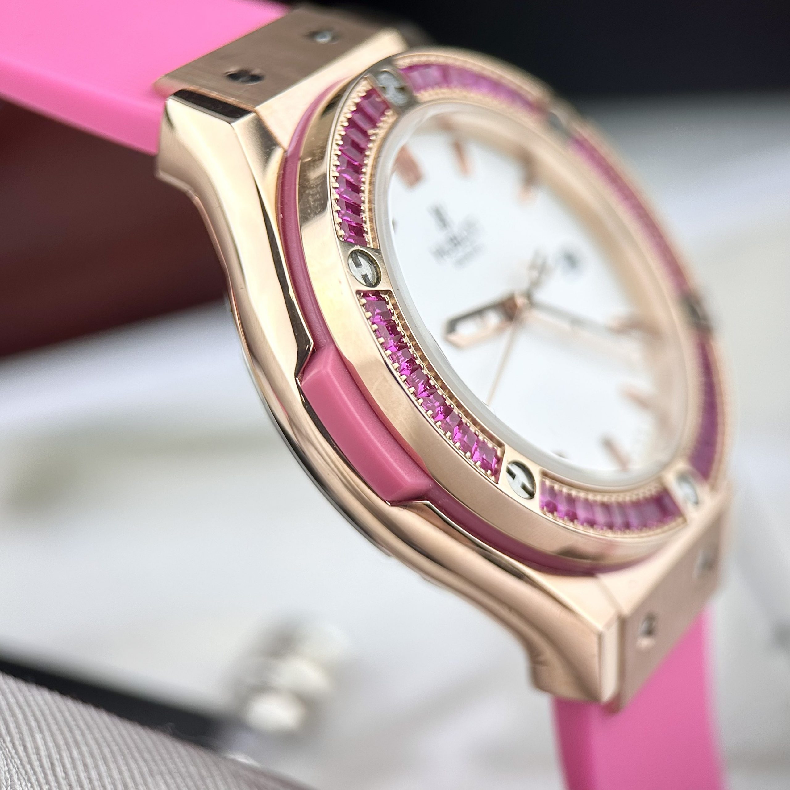 Từng chi tiết trên mẫu đồng hồ Hublot nữ màu hồng cá tính sang chảnh