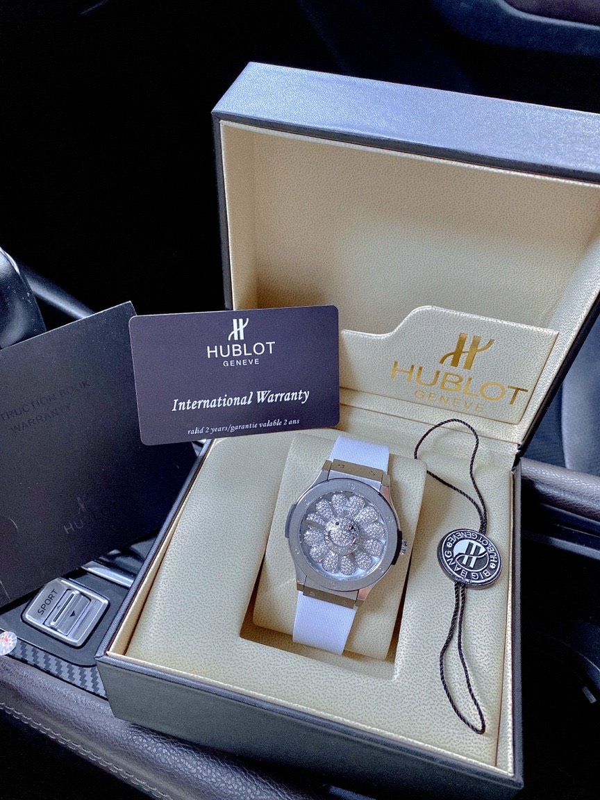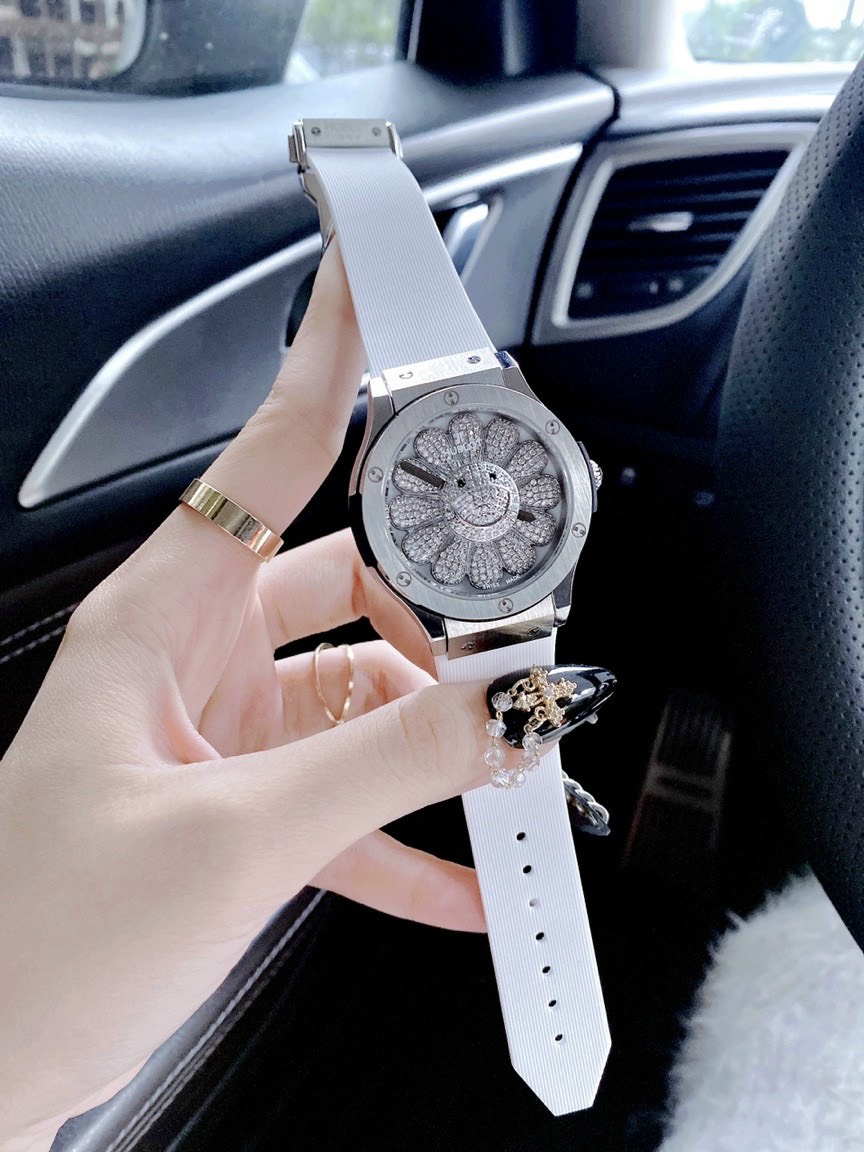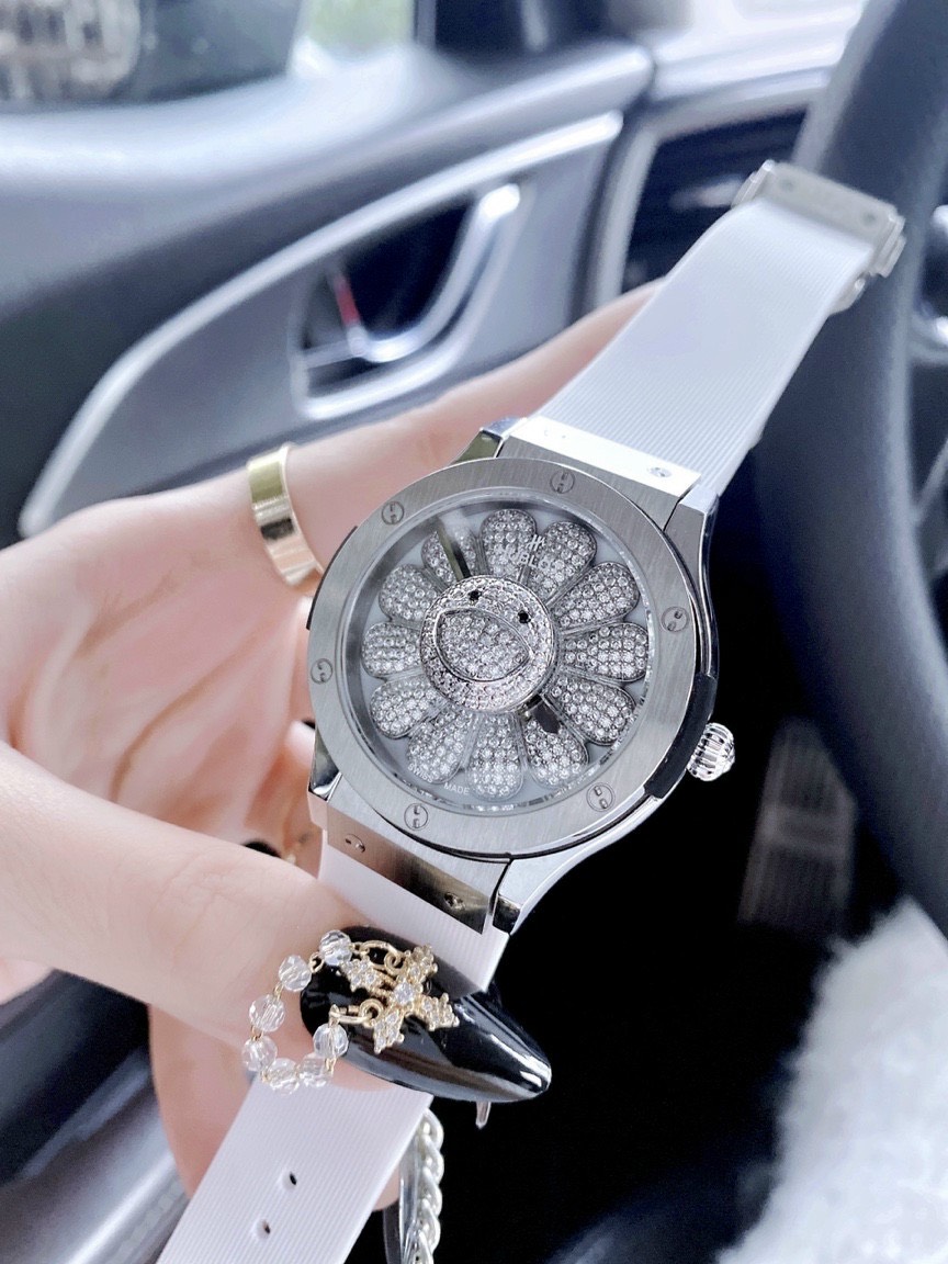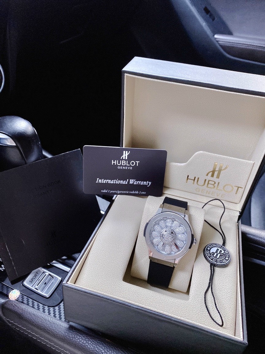 - Mặt đồng hồ Hublot đính đá hình hoa hướng dương xoay tự động quyến rũ