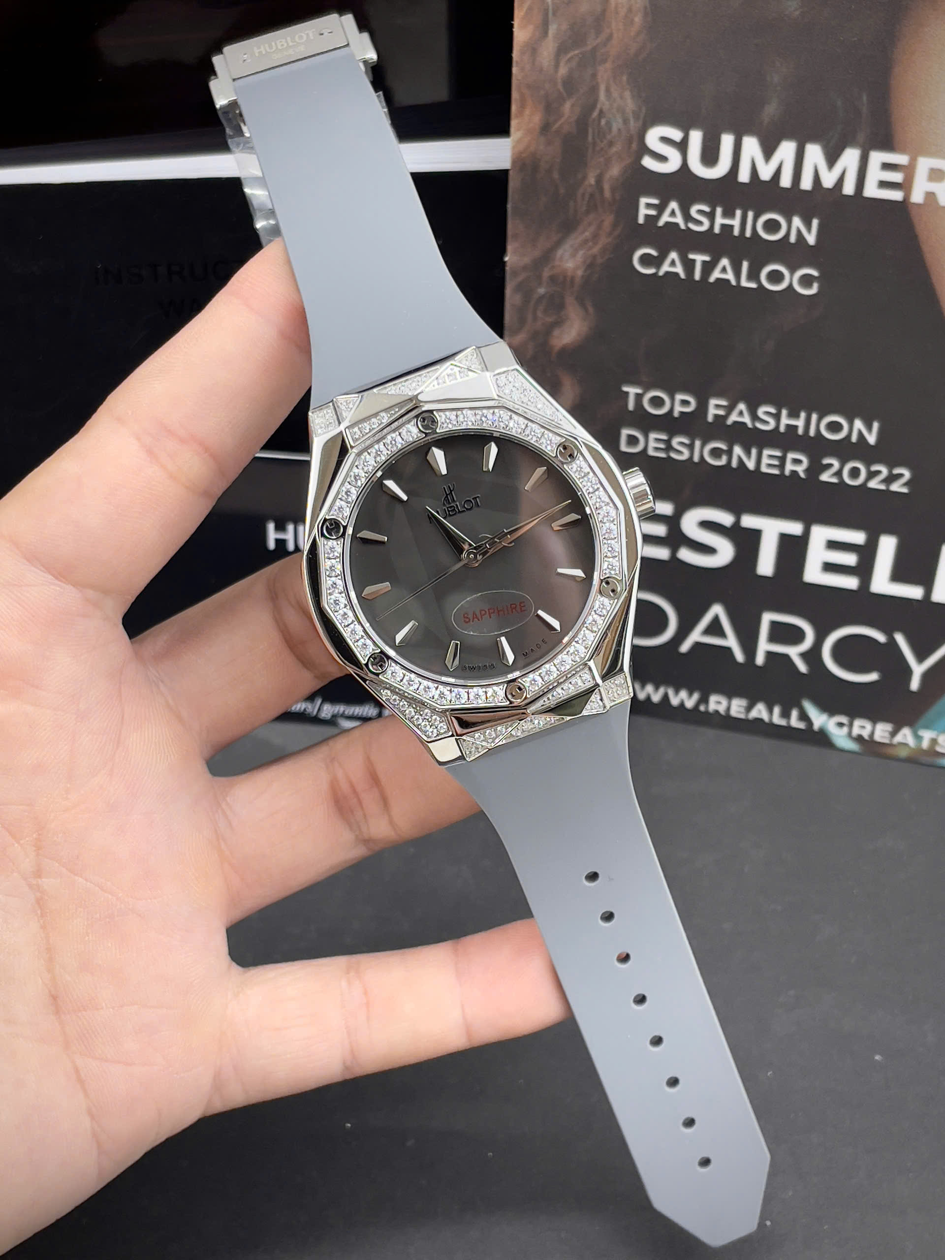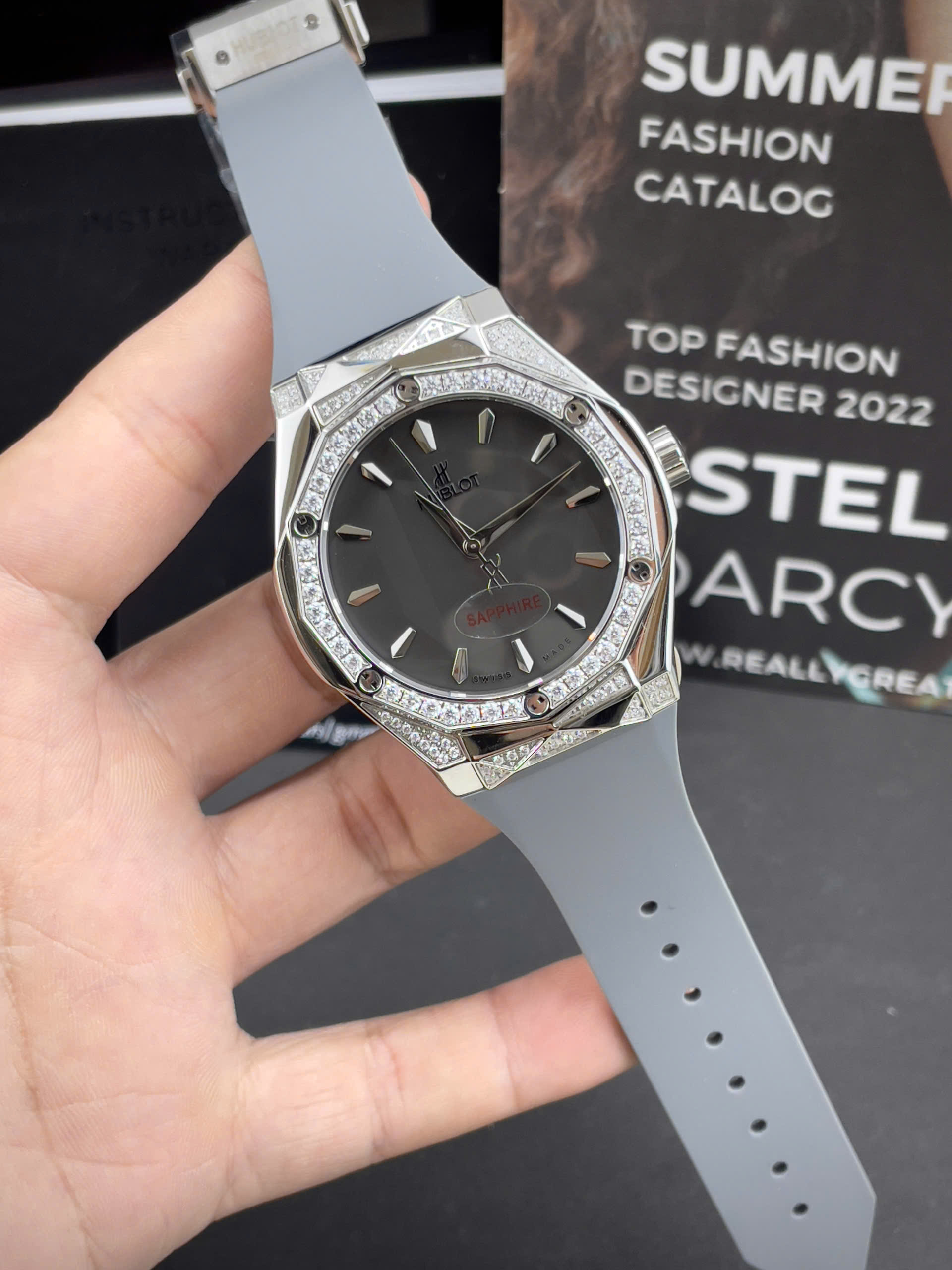 Đặt mua Đồng Hồ Hublot Orlinski nam đính đá dây cao su xám máy nhật giá rẻ fake cao cấp 40mm