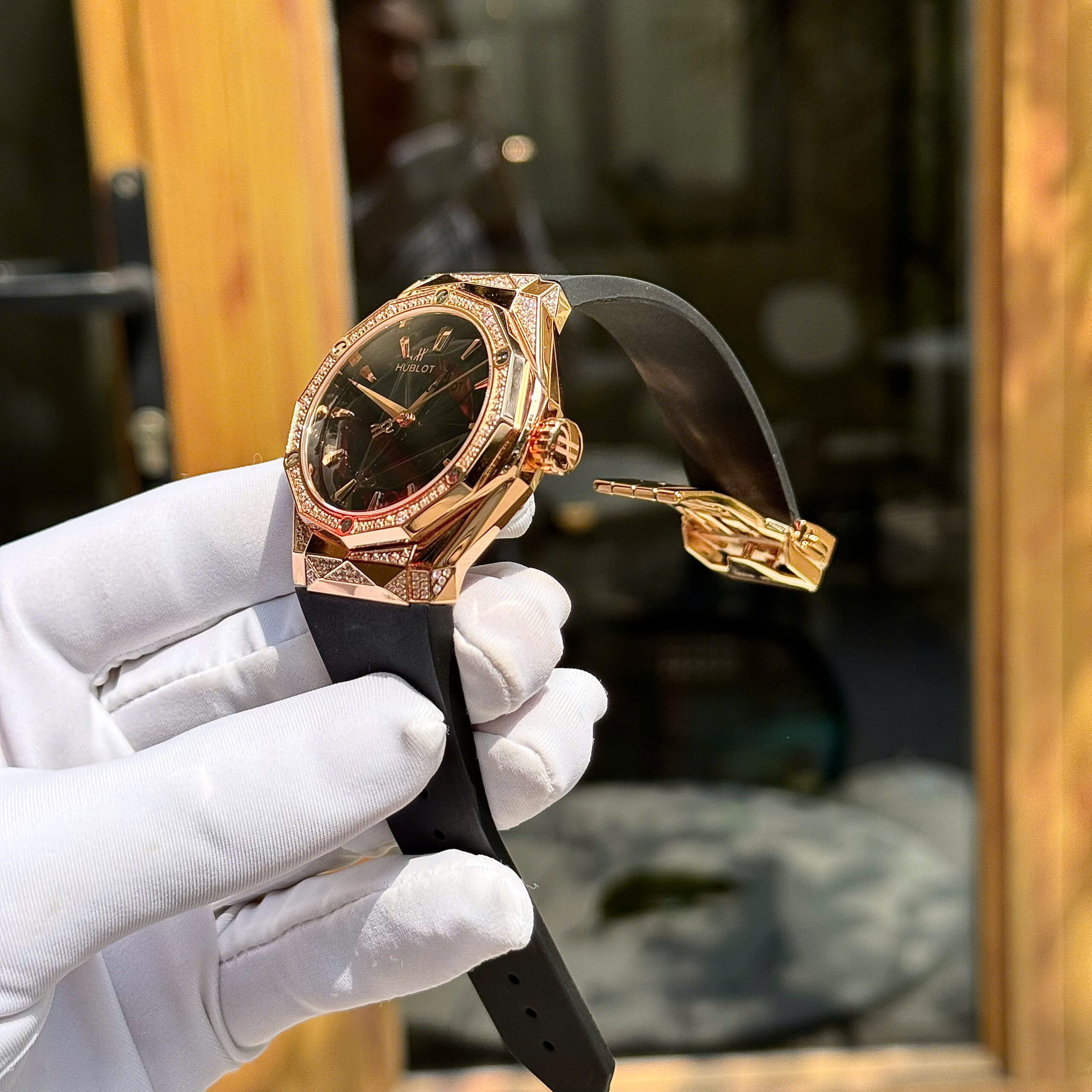 Đồng hồ Hublot Rep 1 1 Classic Fusion Orlinski King Gold Demi Pave đính đá nhà máy HB 40mm