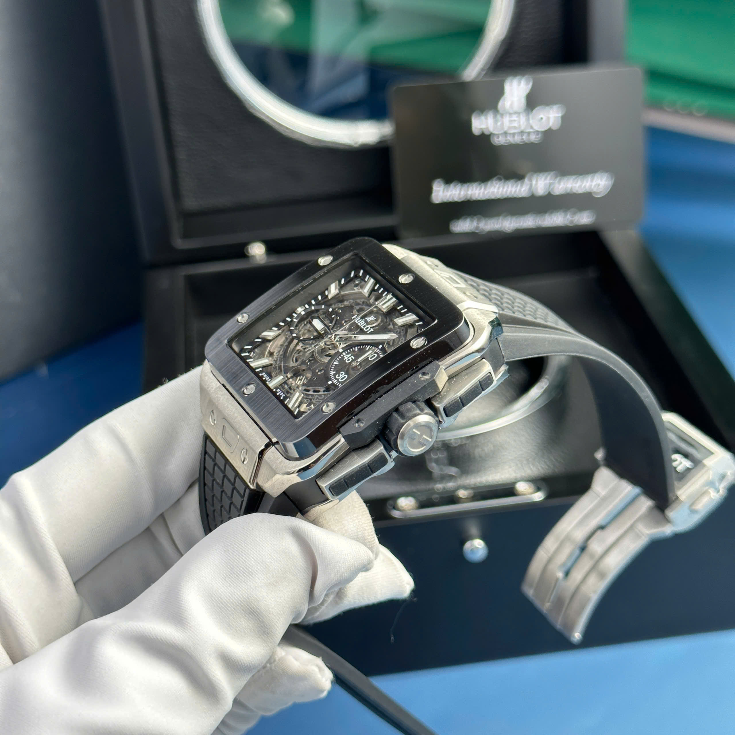 Đồng hồ Hublot Square Bang Unico Titanium Rep 11 cao cấp nhất BBF phiên bản sao chép chuẩn 1:1 chạy đầy đủ chức năng.