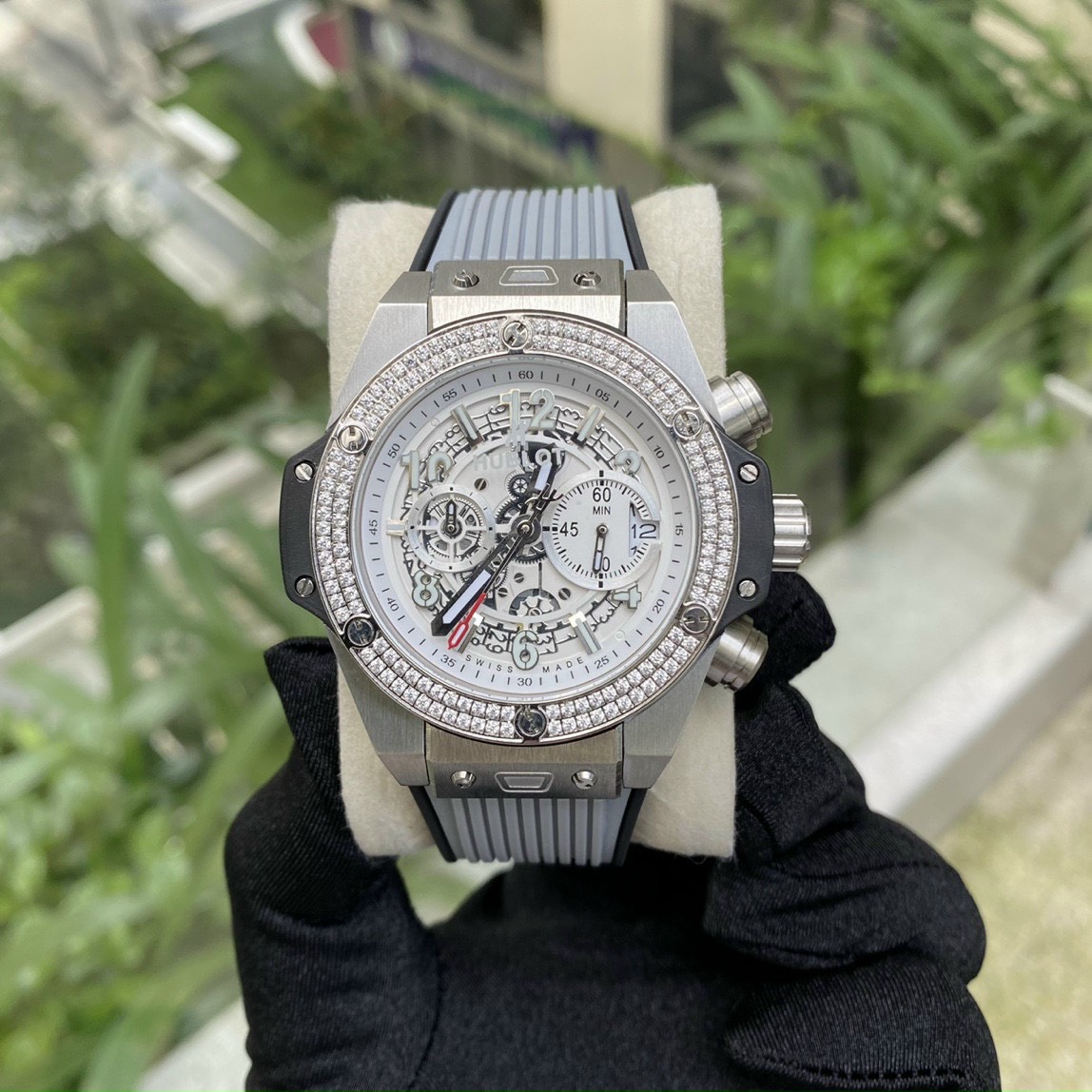 - Đồng hồ Hublot nam đính đá Swarovski viền lấp lánh nổi bật