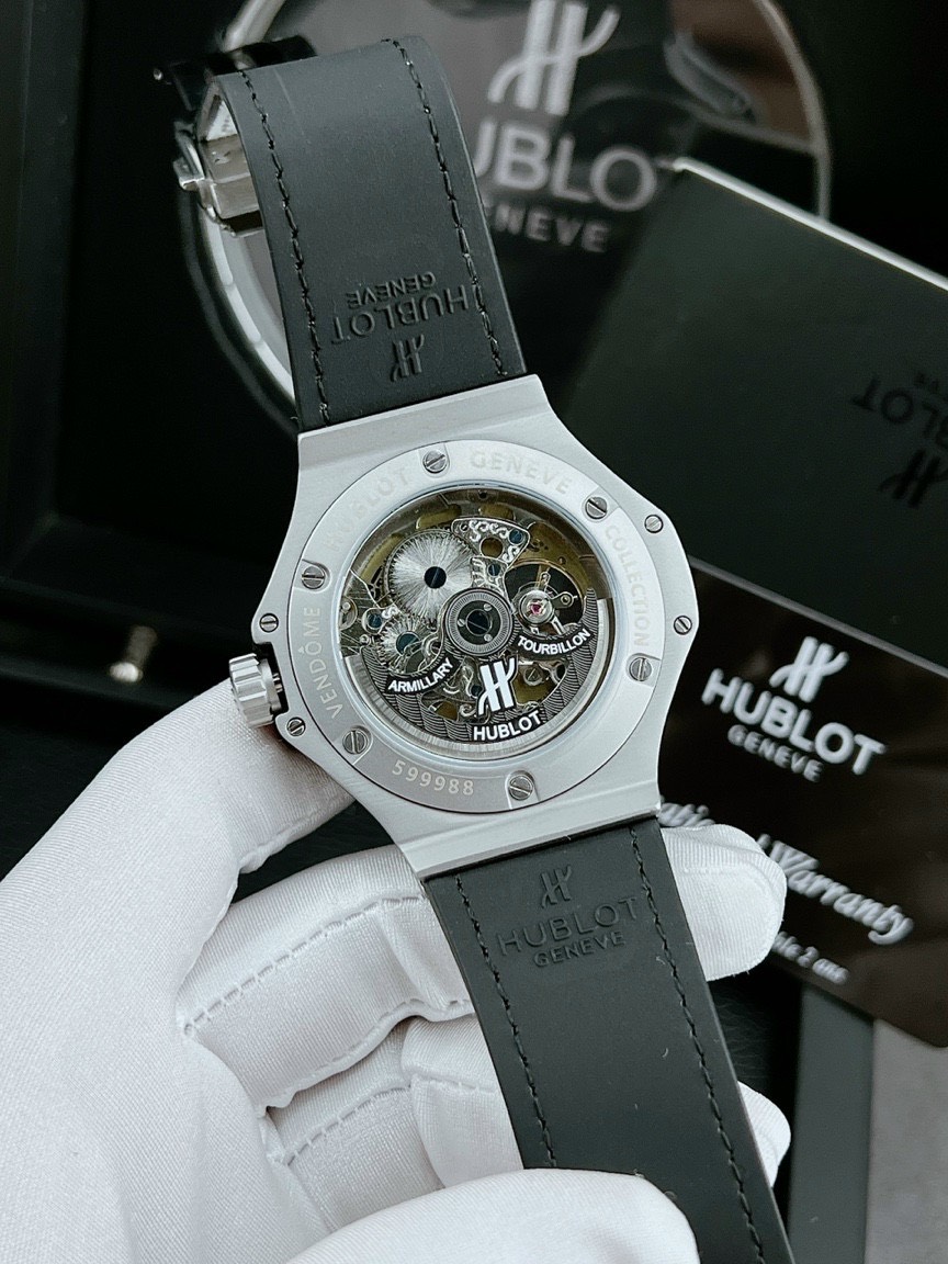 Với tiêu chí đơn giản, không có chi tiết thừa, đồng hồ Hublot mang đến sự hoàn hảo. Dây đeo cao su đặc biệt với khóa gài được gia cố đảm bảo sự vững chắc.