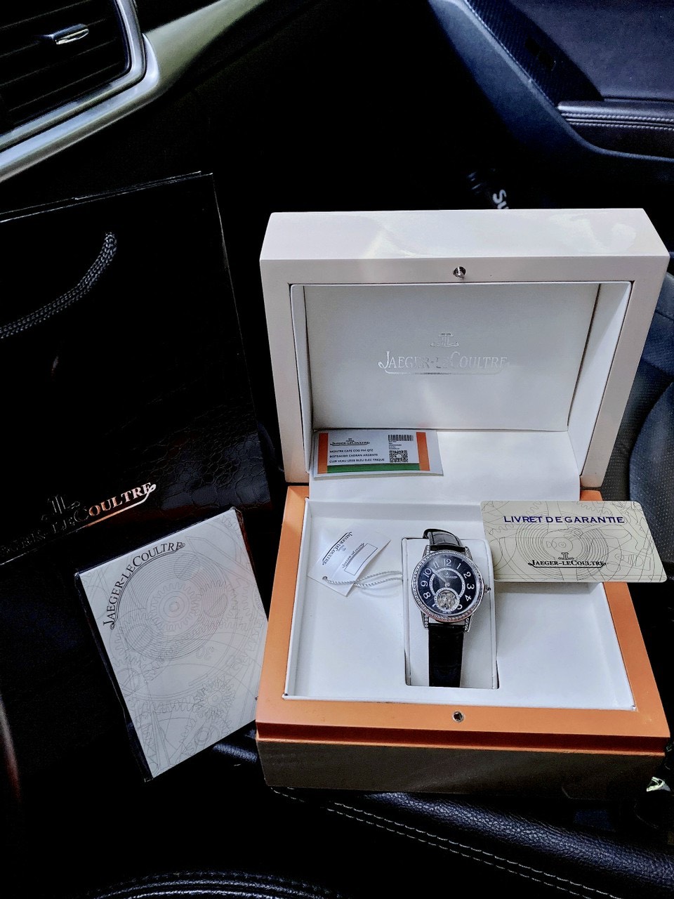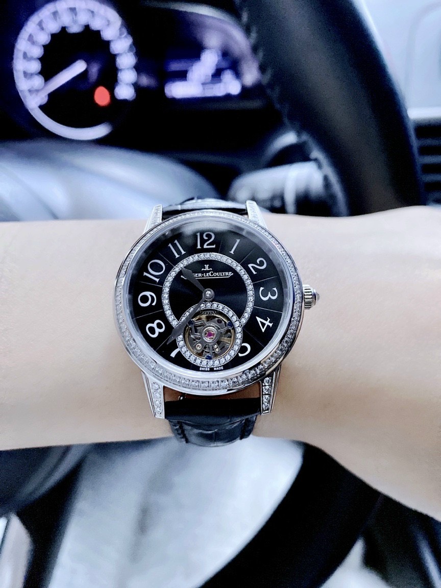 - Đồng hồ Jaeger LeCoultre nữ dây da màu đen bí ẩn và quyền lực, trang trọng