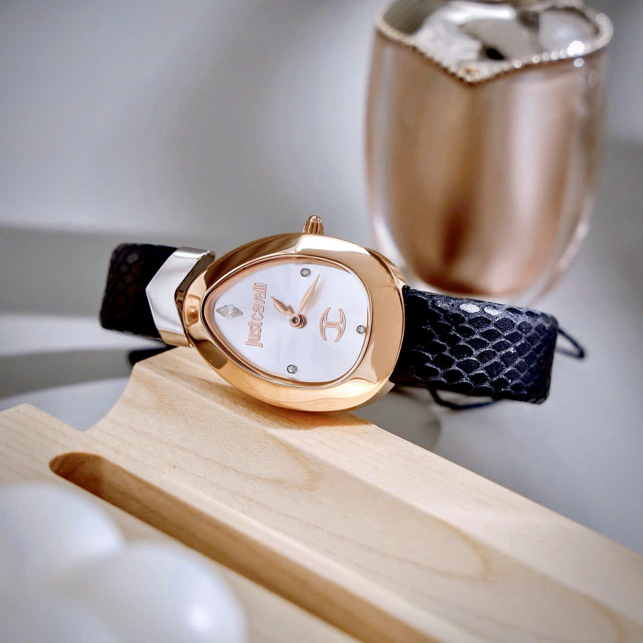 Đặt mua Đồng hồ Just Cavalli Embellished Dial & Leather nữ rose gold like auth 30mm