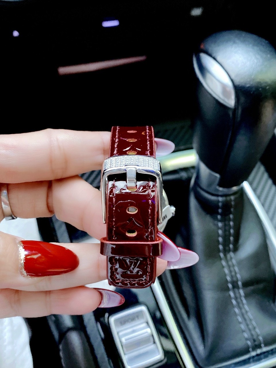 Đồng hồ Louis Vuitton nữ dây da màu đỏ đun LV Diamond Like Auth