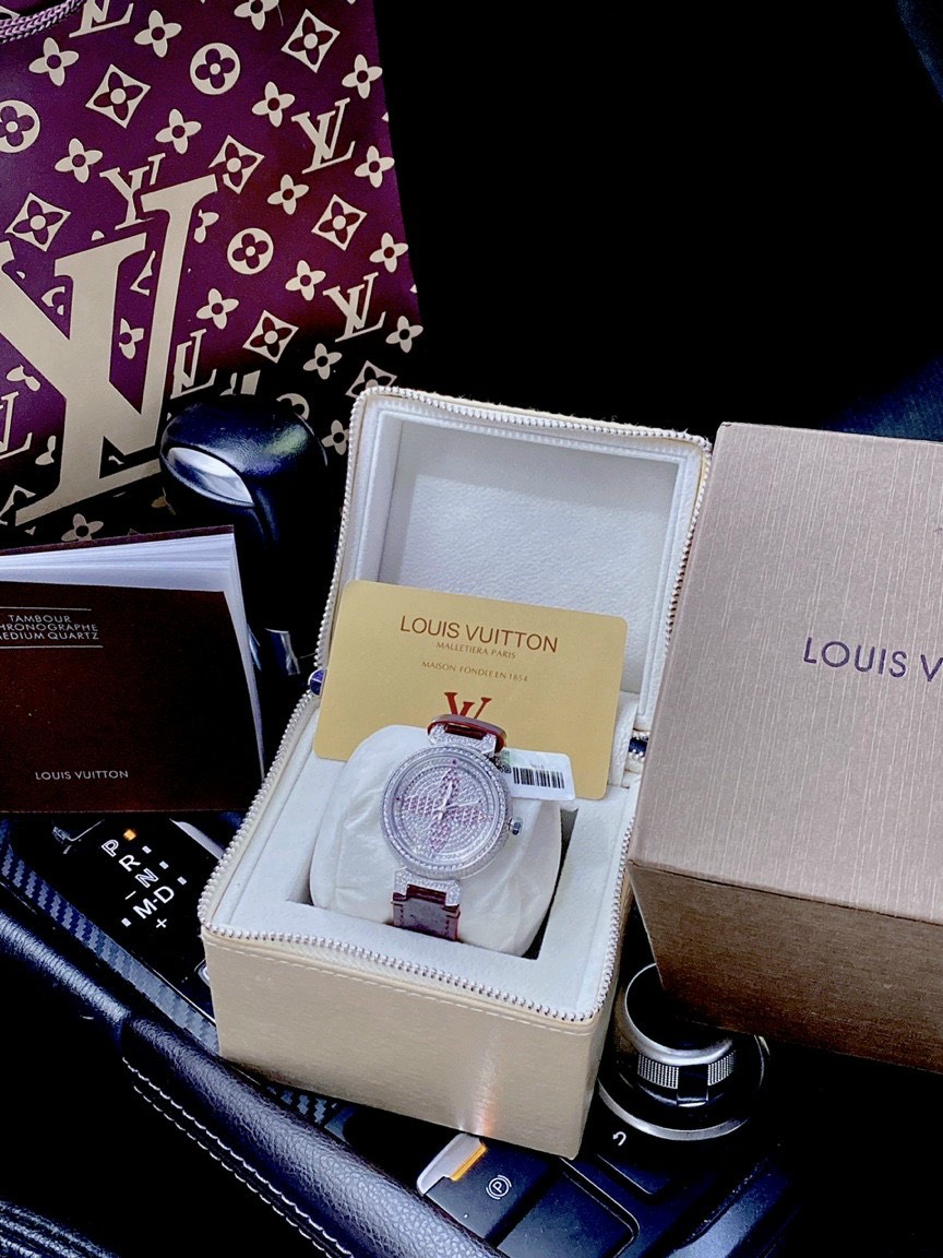 - Viền và mặt đồng hồ Louis Vuitton nữ đính full đá đều đẹp và sáng lấp lánh