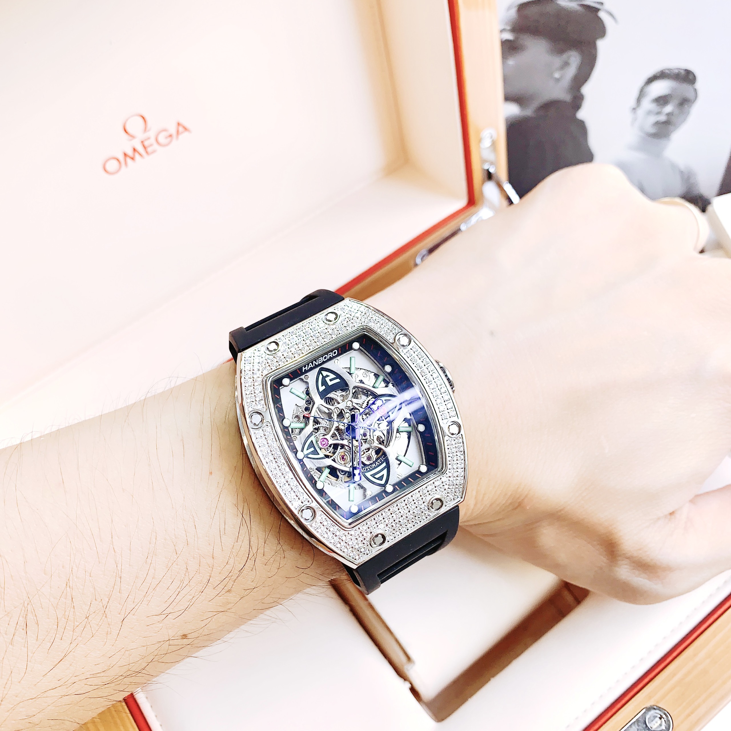 - Đồng hồ nam chính hãng Hanboro by Huboler Automatic thiết kế theo phong cách Richard Mille đình đám bạc tỷ