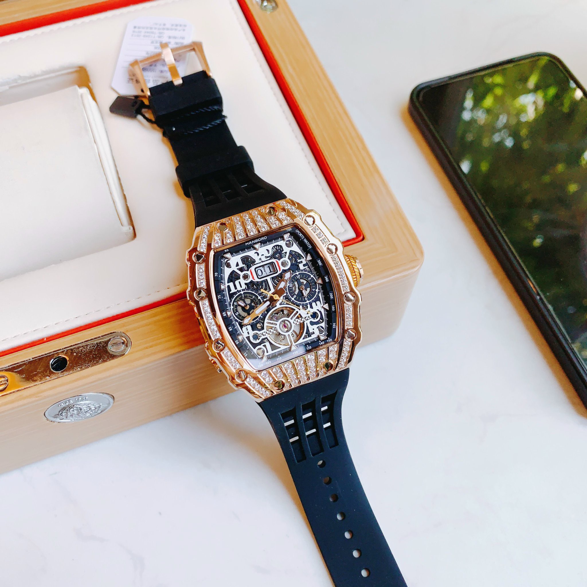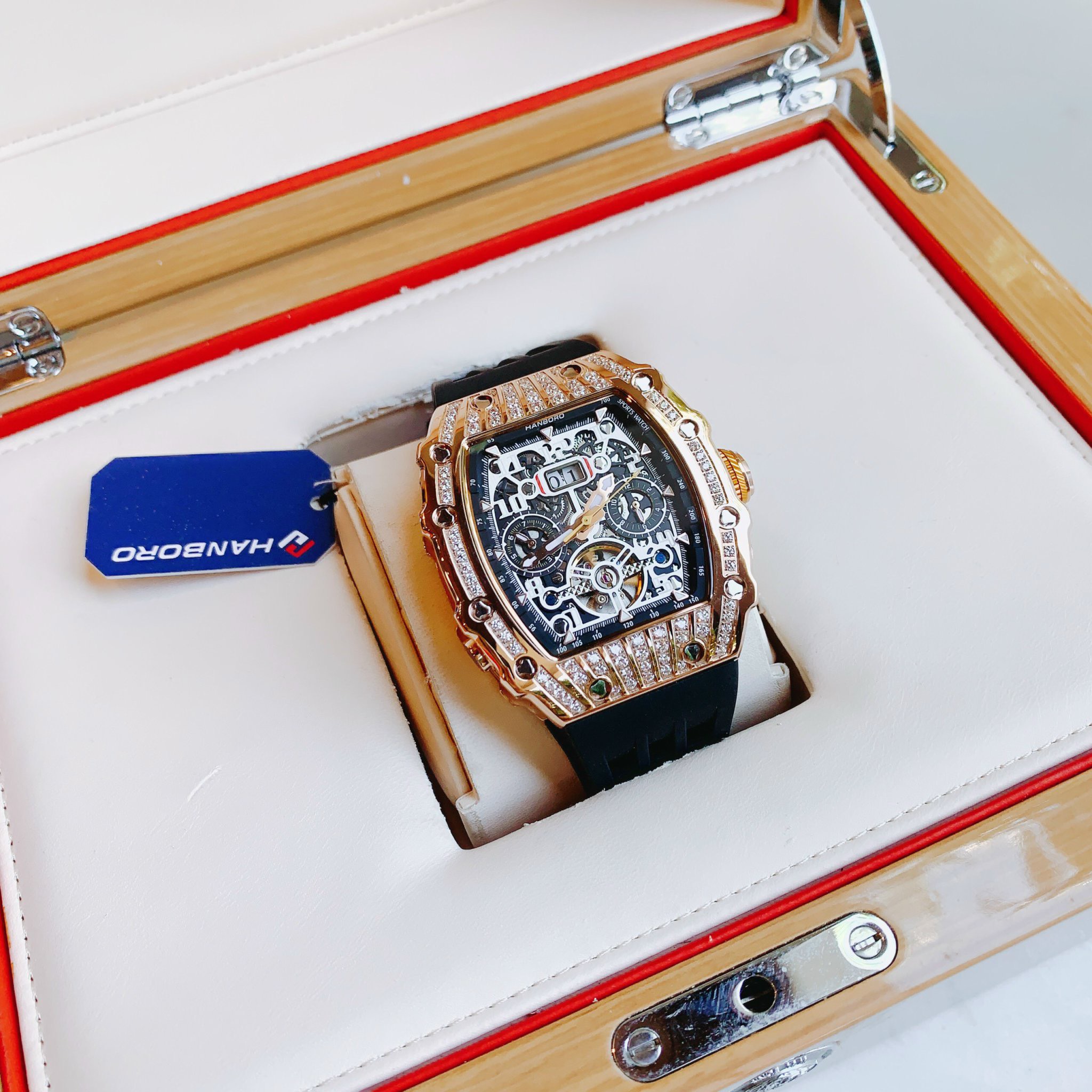 Nhắc đến đồng hồ, chúng ta thường nghĩ ngay đến thời gian cũng như hàm chứa nhiều điều xảy ra trong cuộc đời mỗi người. Đồng hồ đeo tay đang dần trở thành một món phụ kiện thời trang không thể thiếu trong tủ đồ của mỗi người! Nếu bạn đang băn khoăn và muốn tìm mua một mẫu đồng hồ nam chính hãng với chất lượng tốt, giá cả hợp lý cùng chính sách bảo hành dài và uy tín thì hãy cùng DWatch tham khảo Đồng hồ nam chính hãng Hanboro By Huboler đính đá 40x48mm nhé !