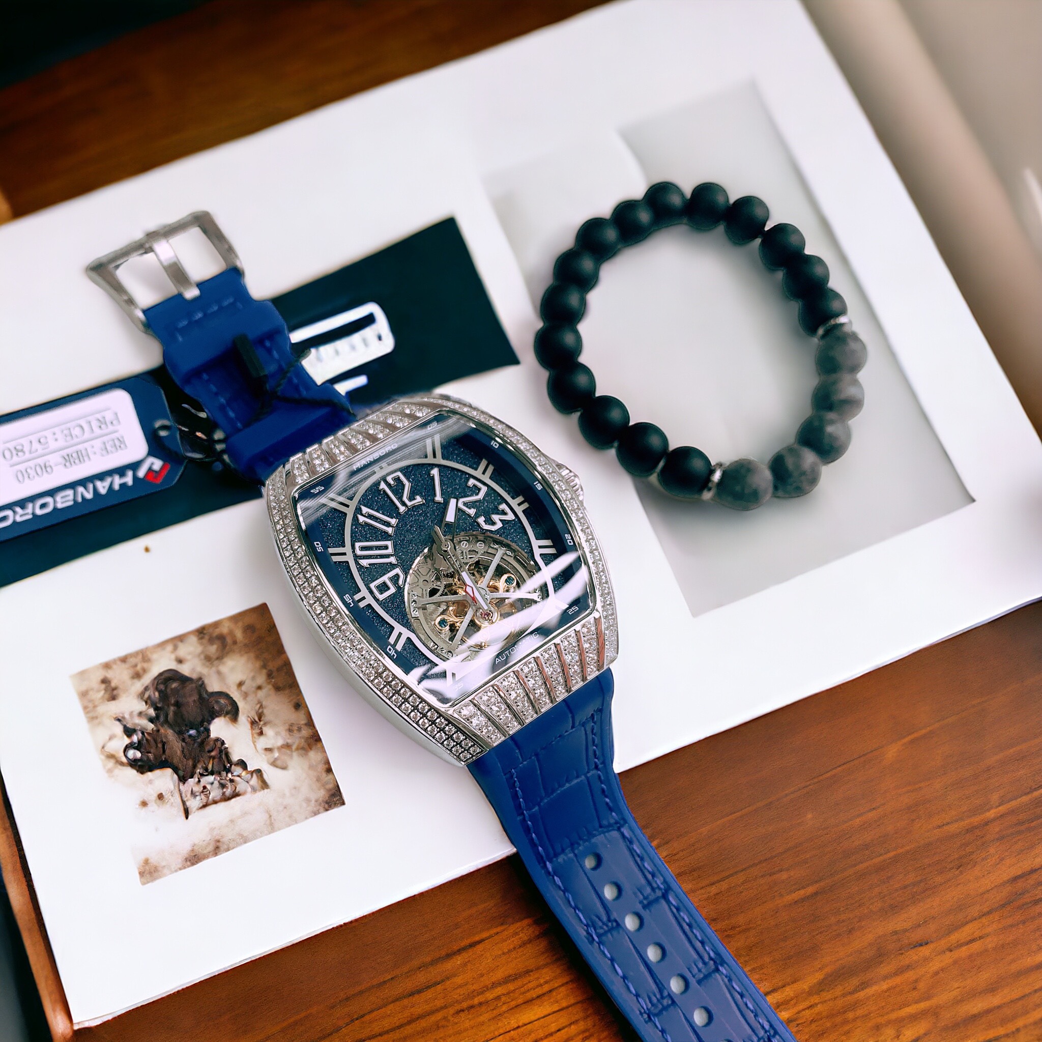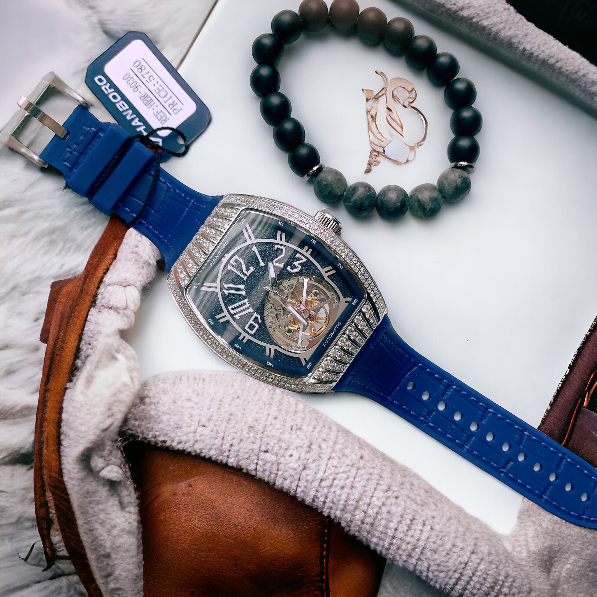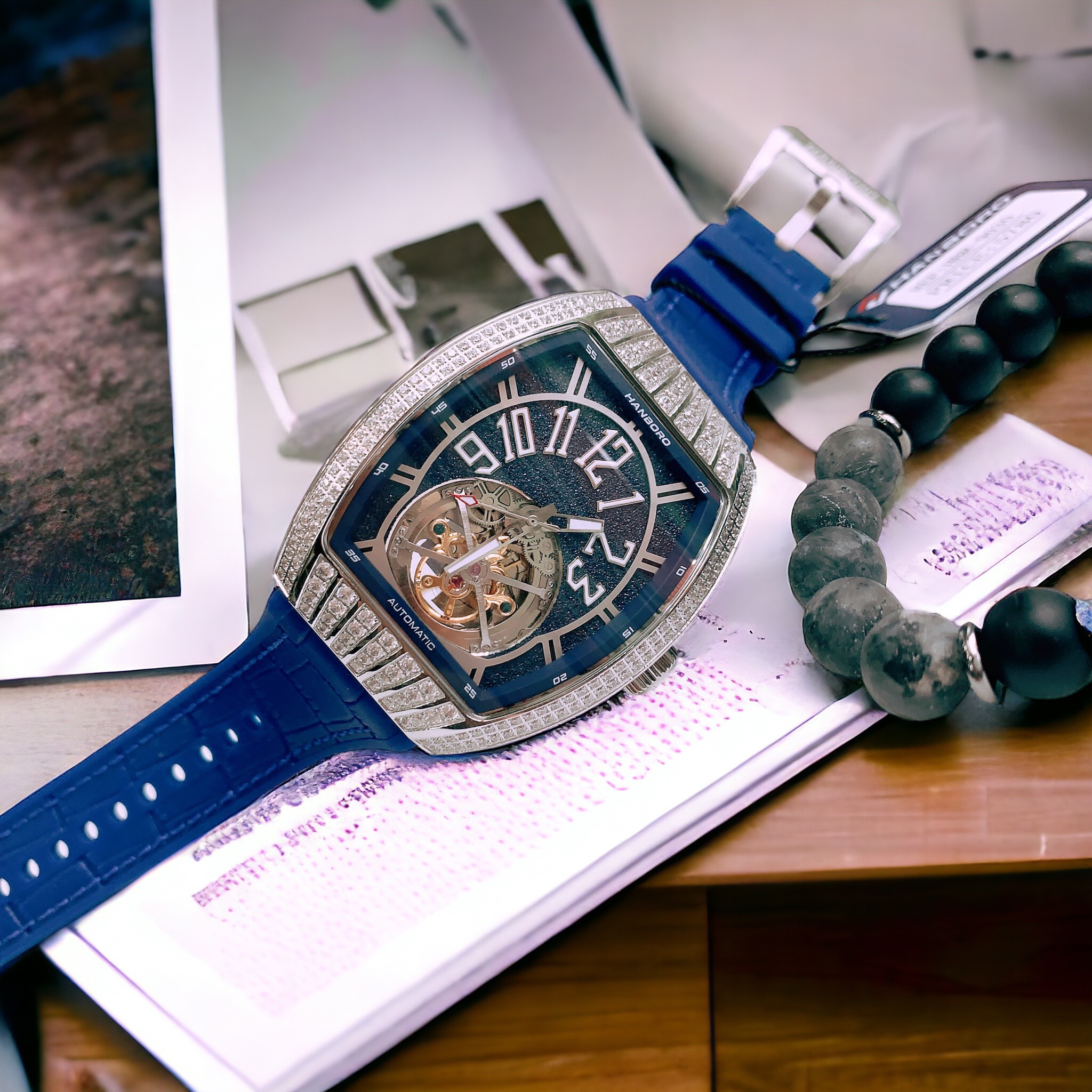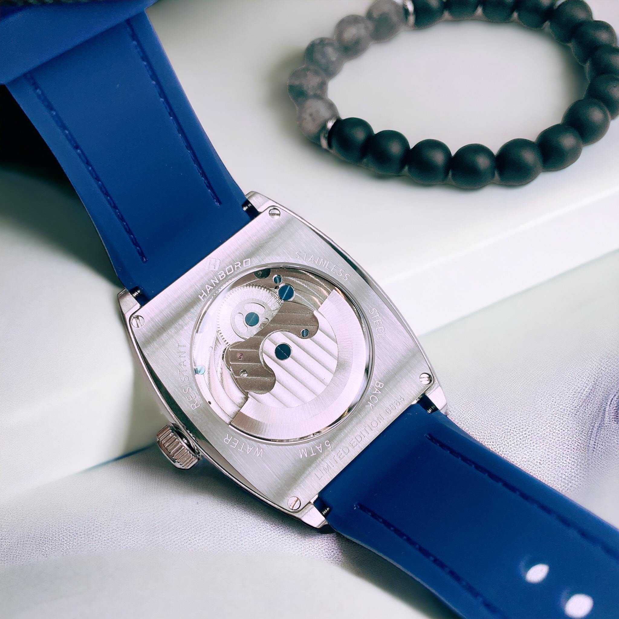 Đồng hồ nam Hanboro dây cao su lộ cơ