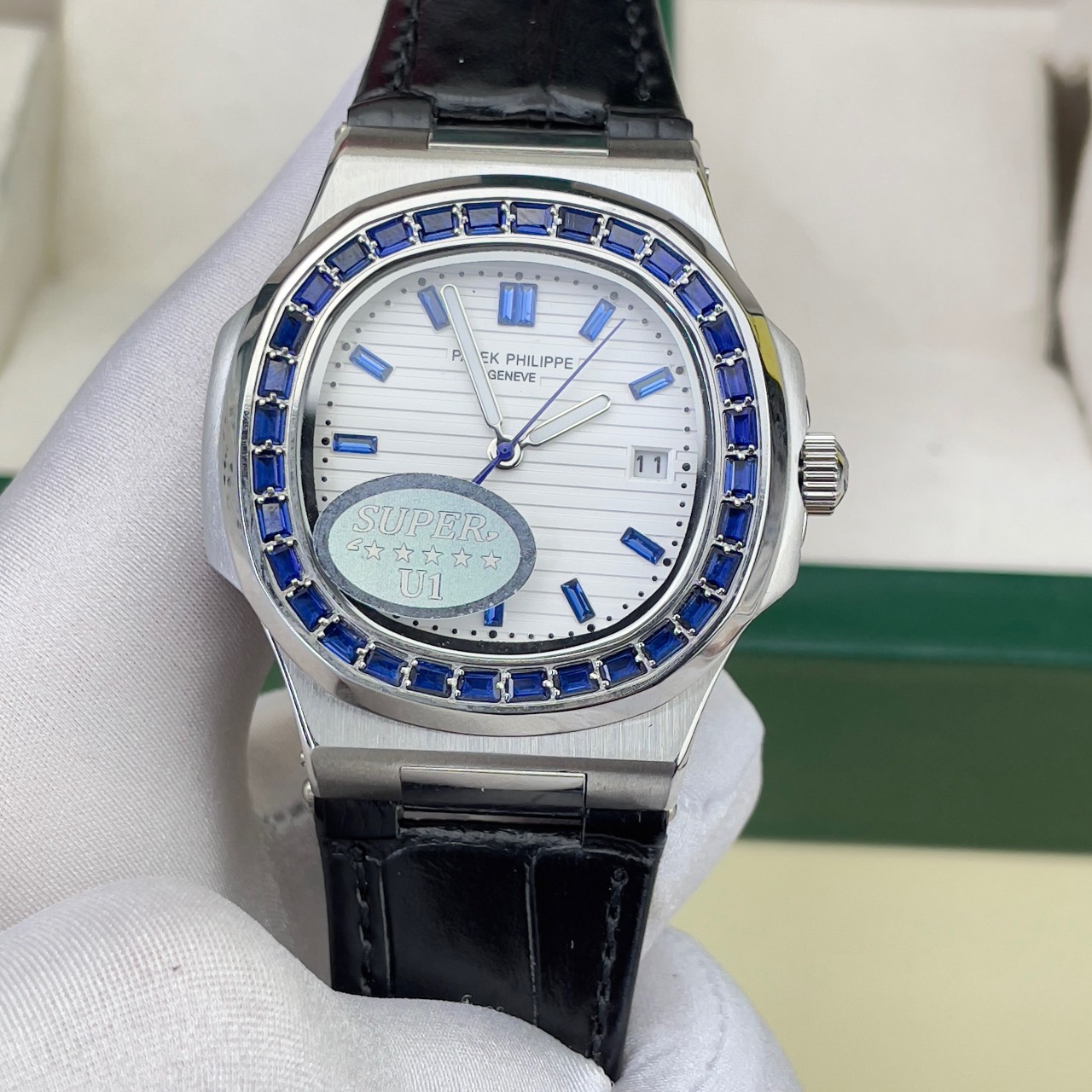 Đồng hồ đeo tay là một trong những phát minh vĩ đại nhất thế giới. Trước đây đồng hồ đeo tay chủ yếu giúp mọi người xem thời gian. Tuy nhiên trong vài thập kỉ gần đây hồ đeo tay không phải chỉ đơn thuần là công cụ xem giờ nữa, nó đã dần trở thành món phụ kiện thời trang thiết yếu ! Và trong thế giới đồng hồ đeo tay không thể không kể tới cái tên Patek Philippe – Một thương hiệu đồng hồ với những thiết kế đi vào lịch sử. Hãy cùng DWatch tham khảo mẫu Đồng hồ nam máy cơ đính đá Patek Philippe Nautilus Super Fake cao cấp nhé!
