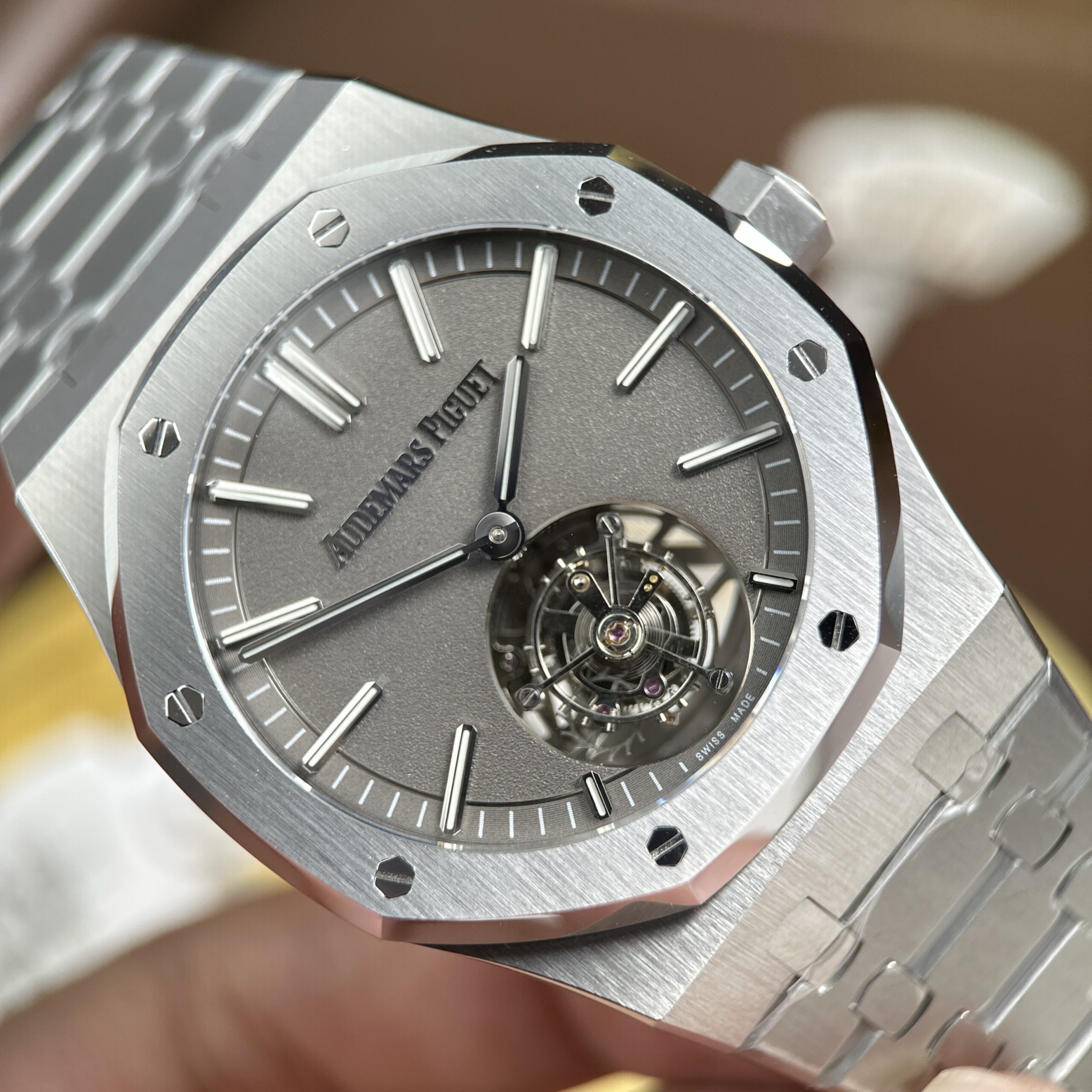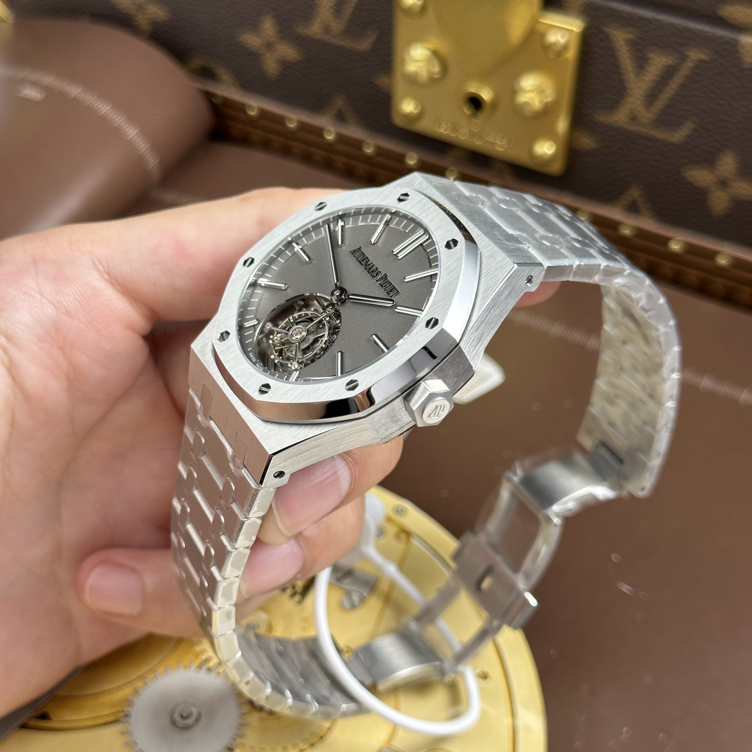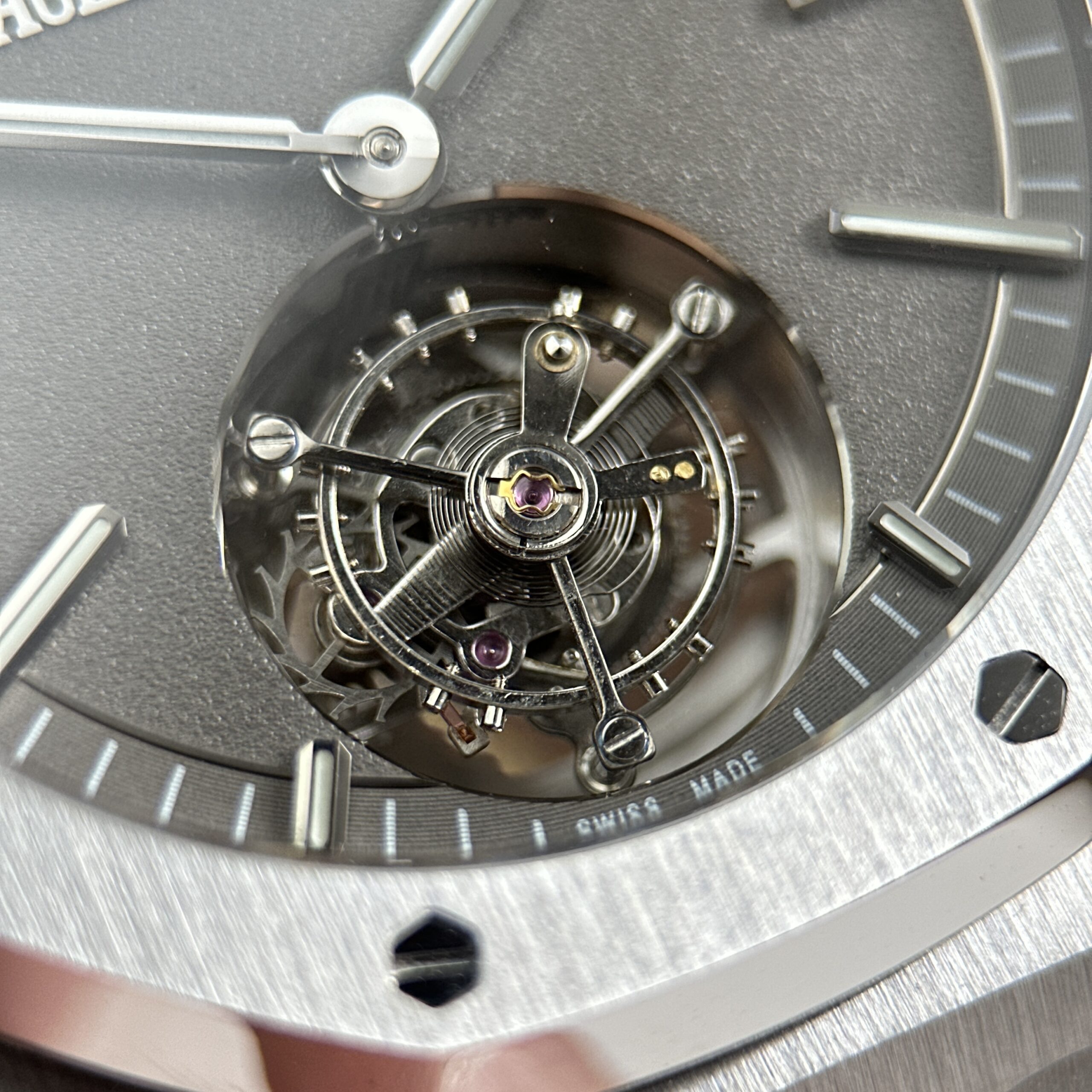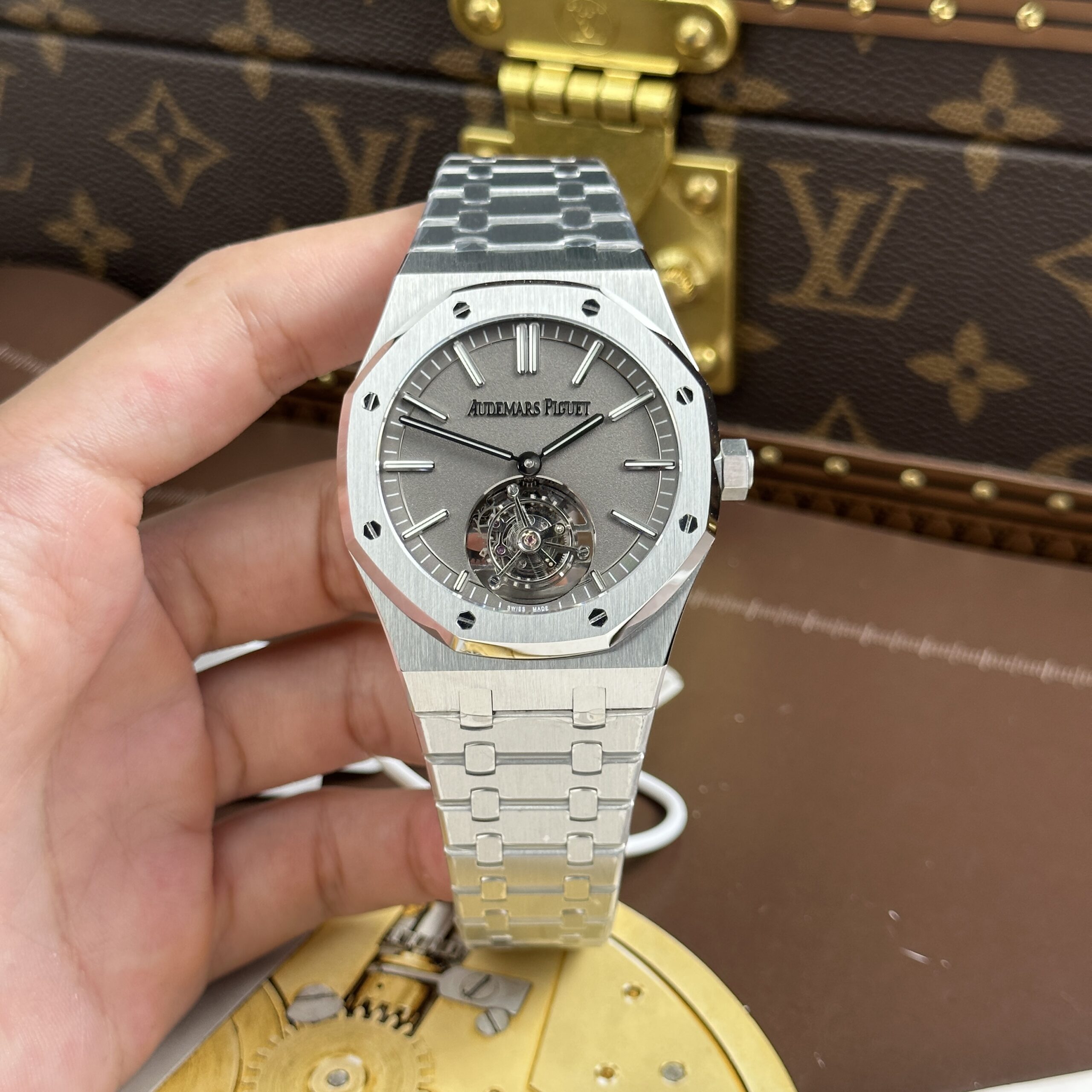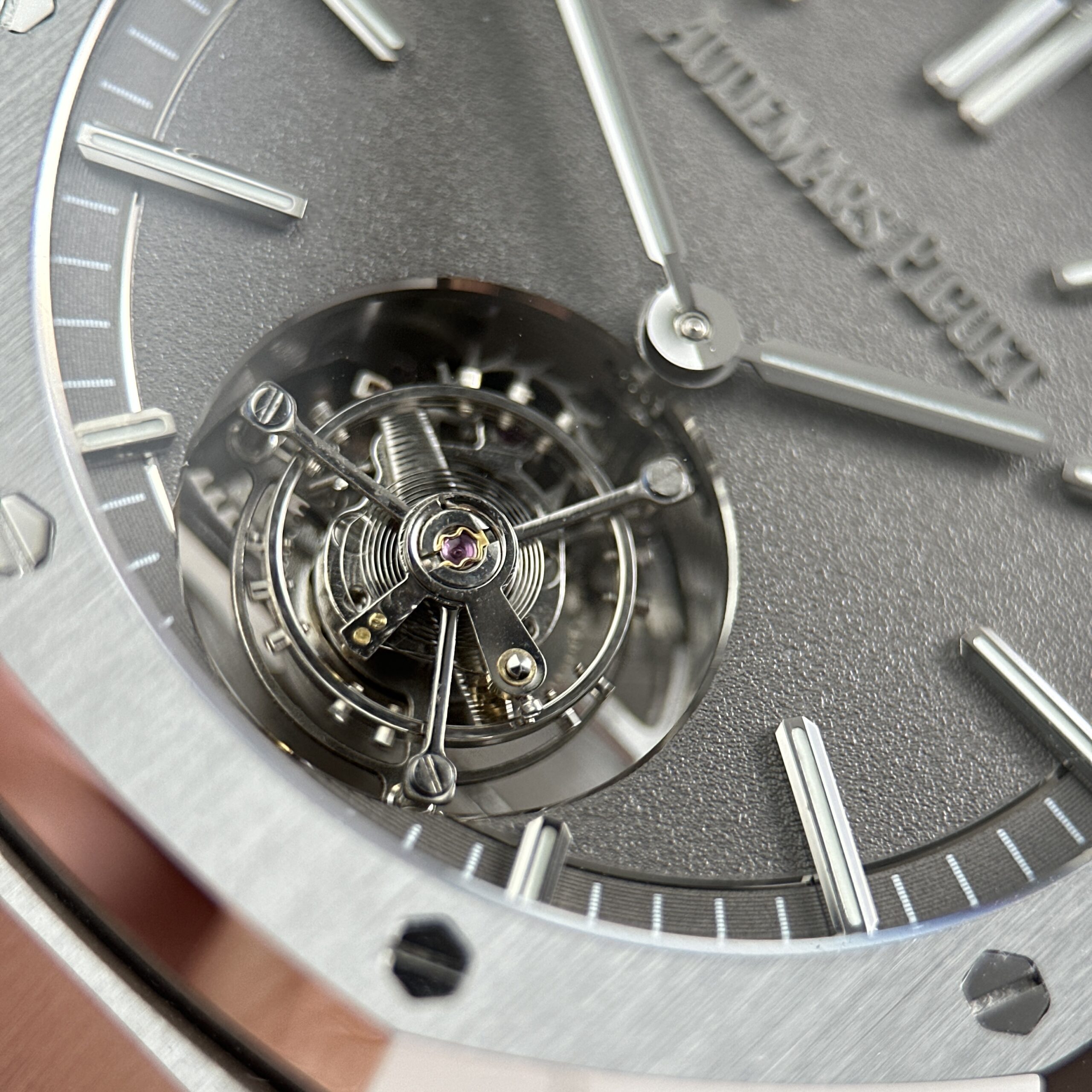 Đồng hồ nam Rep 11 Audemars Piguet Royal Oak Sellfwinding Flying Tourbillon 26530TI mặt xám dây kim loại 41mm