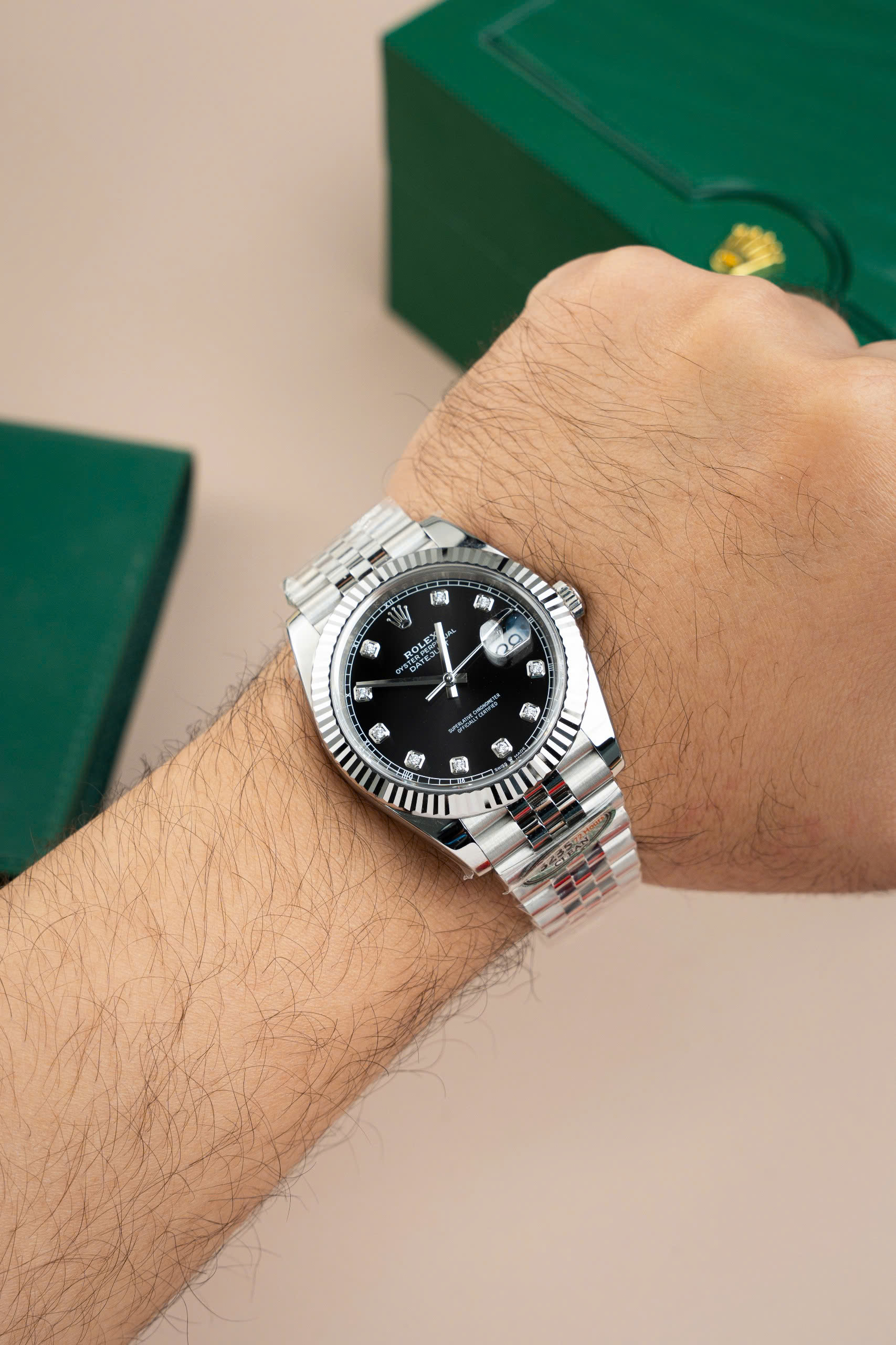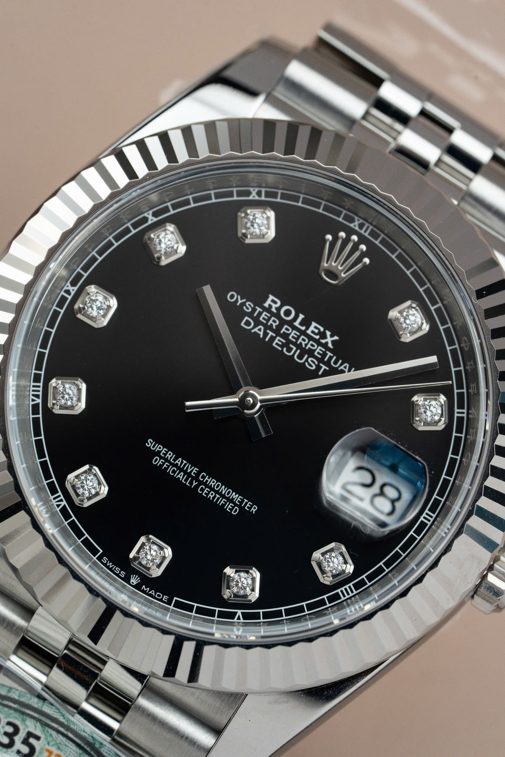Đồng hồ nam Rolex DateJust Replica 11 mặt đen cọc số đá xưởng Clean 41mm