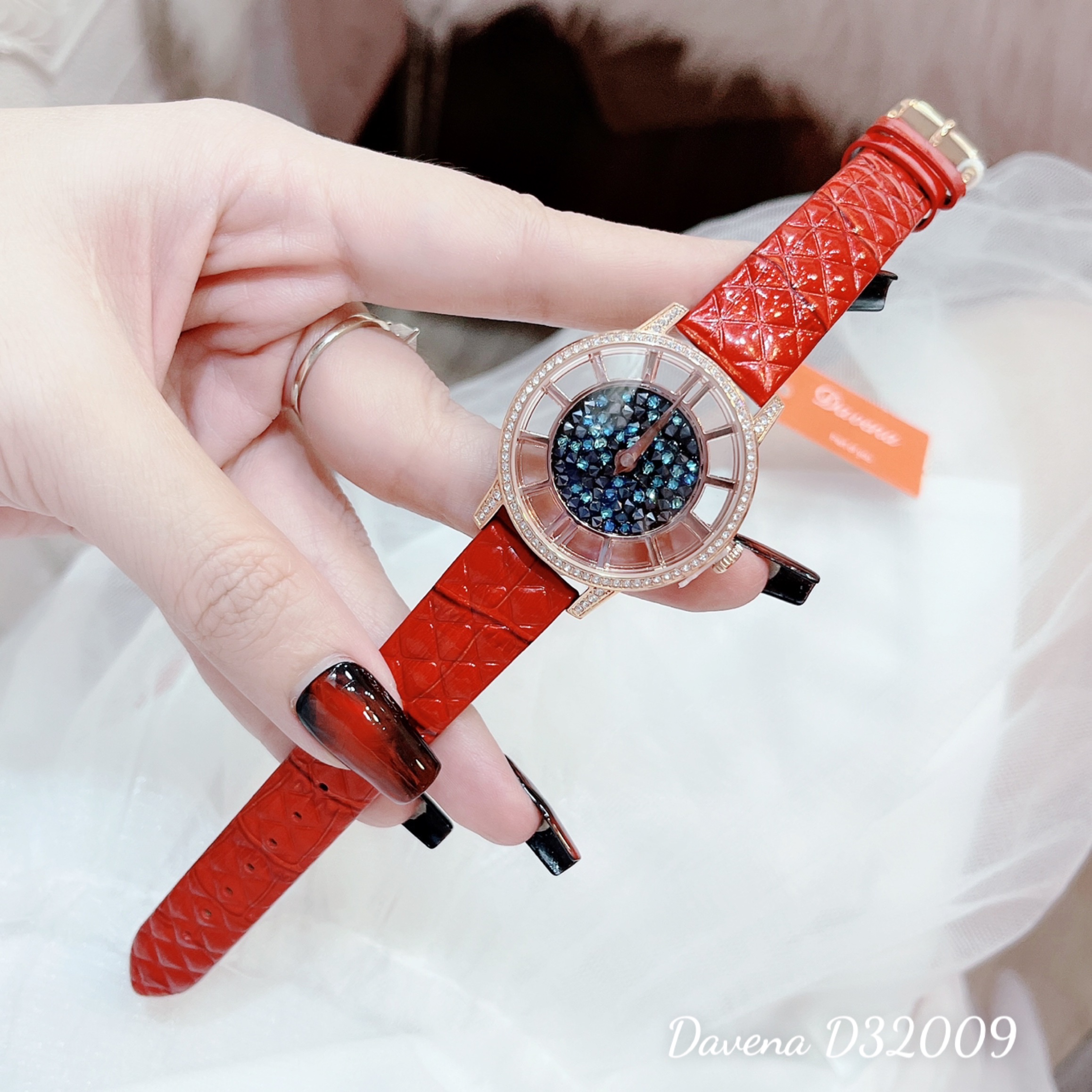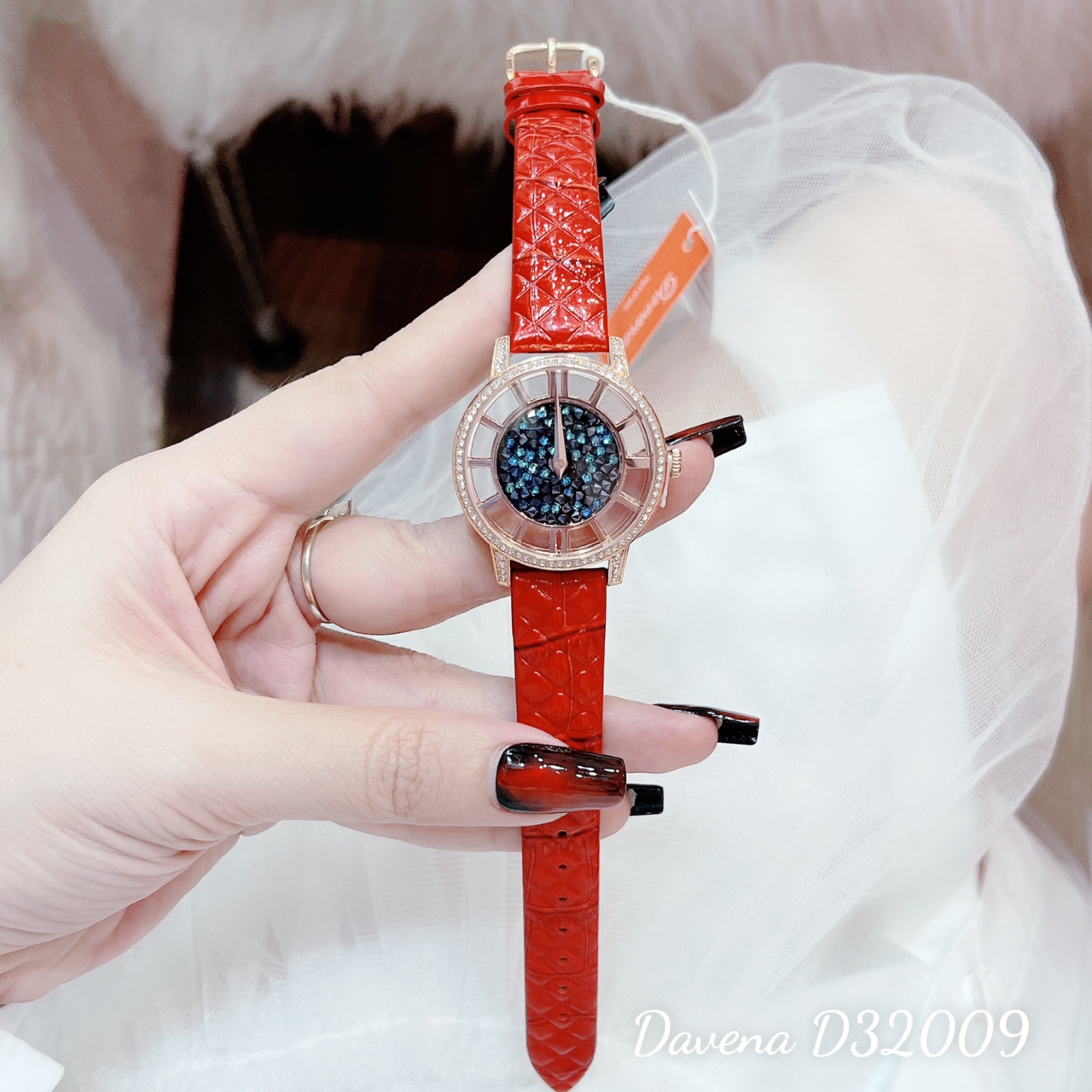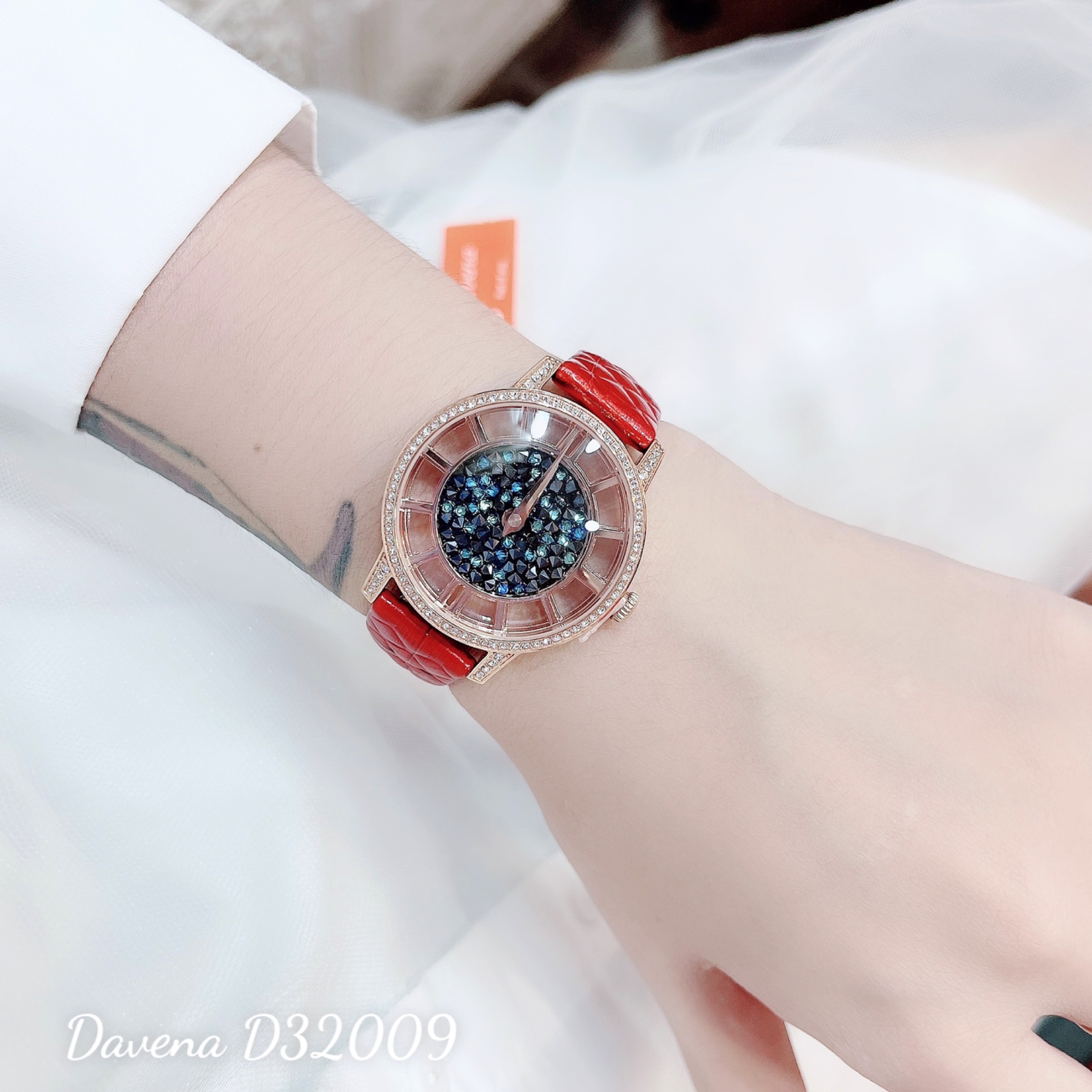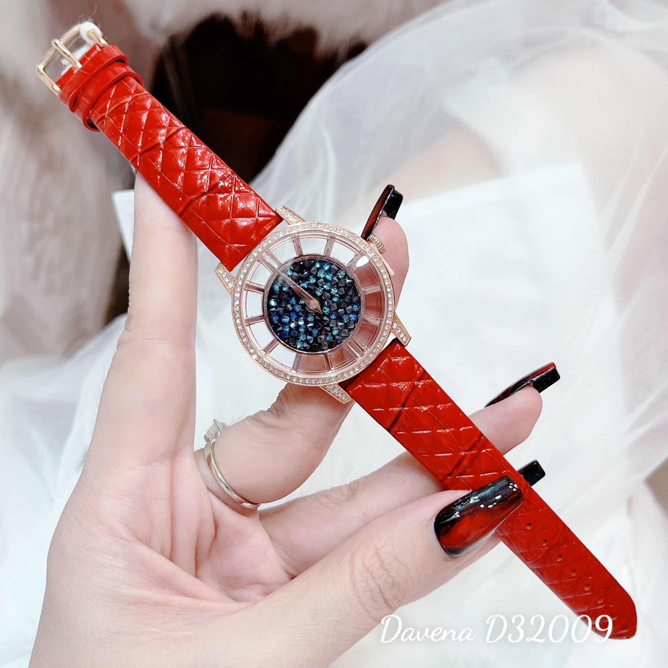 Đồng hồ nữ Davena 32009 dây da đỏ đính đá