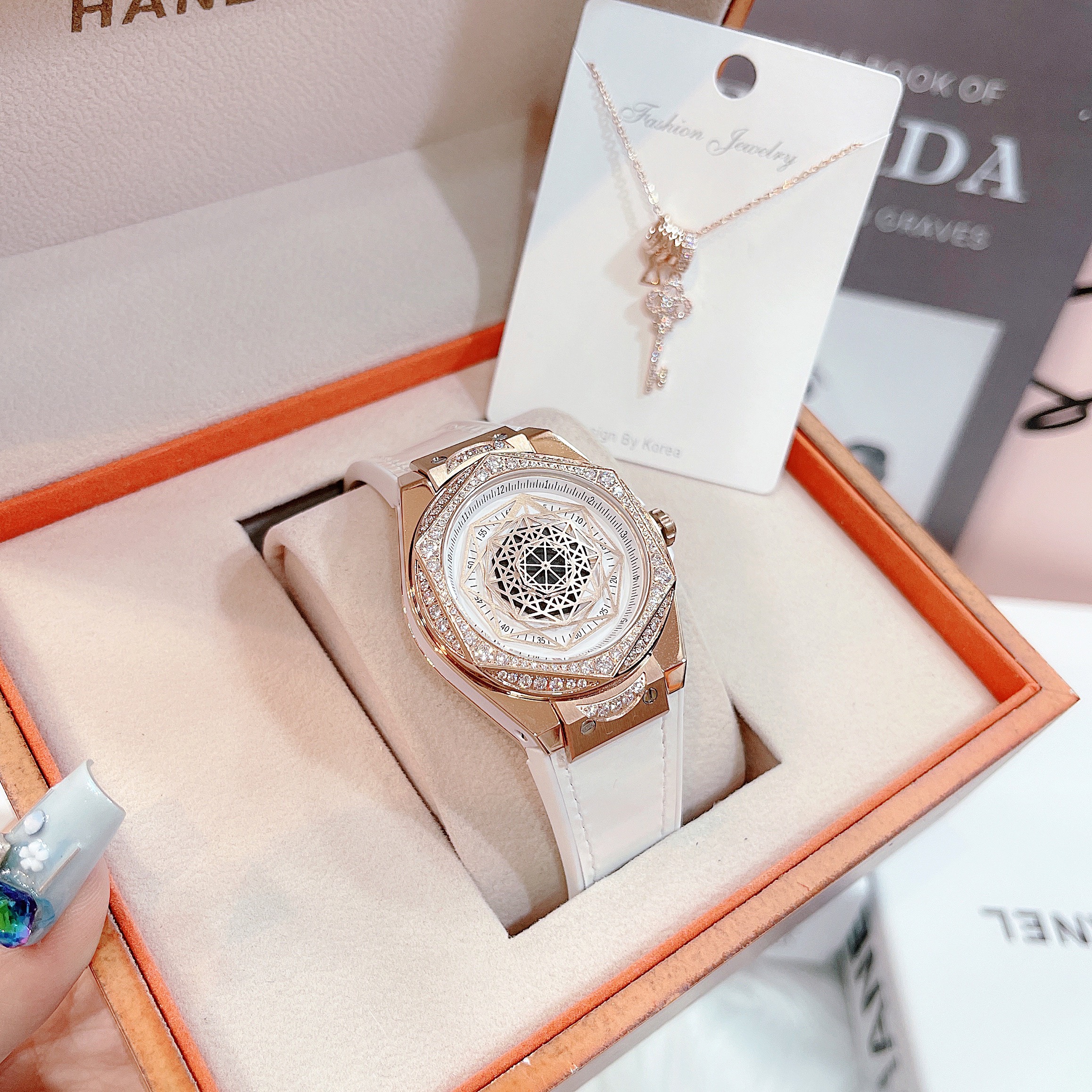 - Viền đồng hồ Hanboro by Huboler nữ đính đá sáng lấp lánh sang chảnh