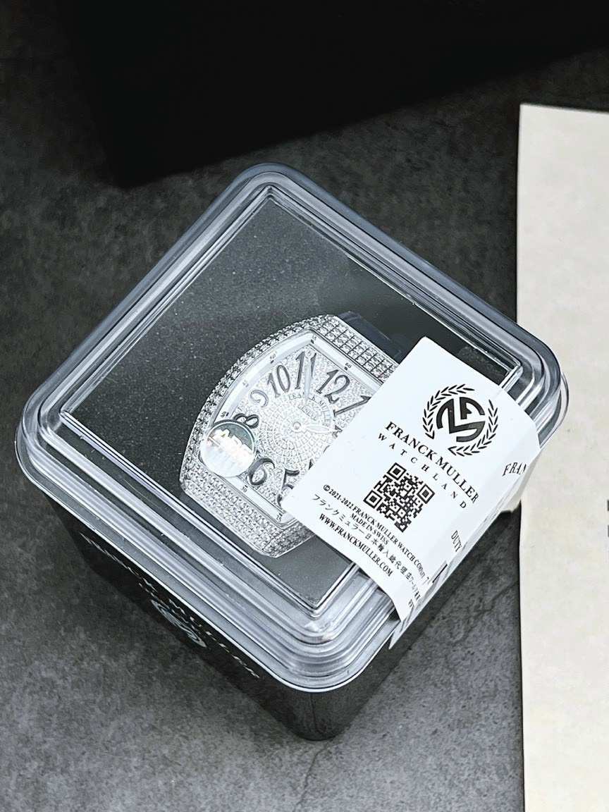 - Khóa đồng hồ Franck Muller V32 ABF đính đá lấp lánh và mặt số lớn nổi bật