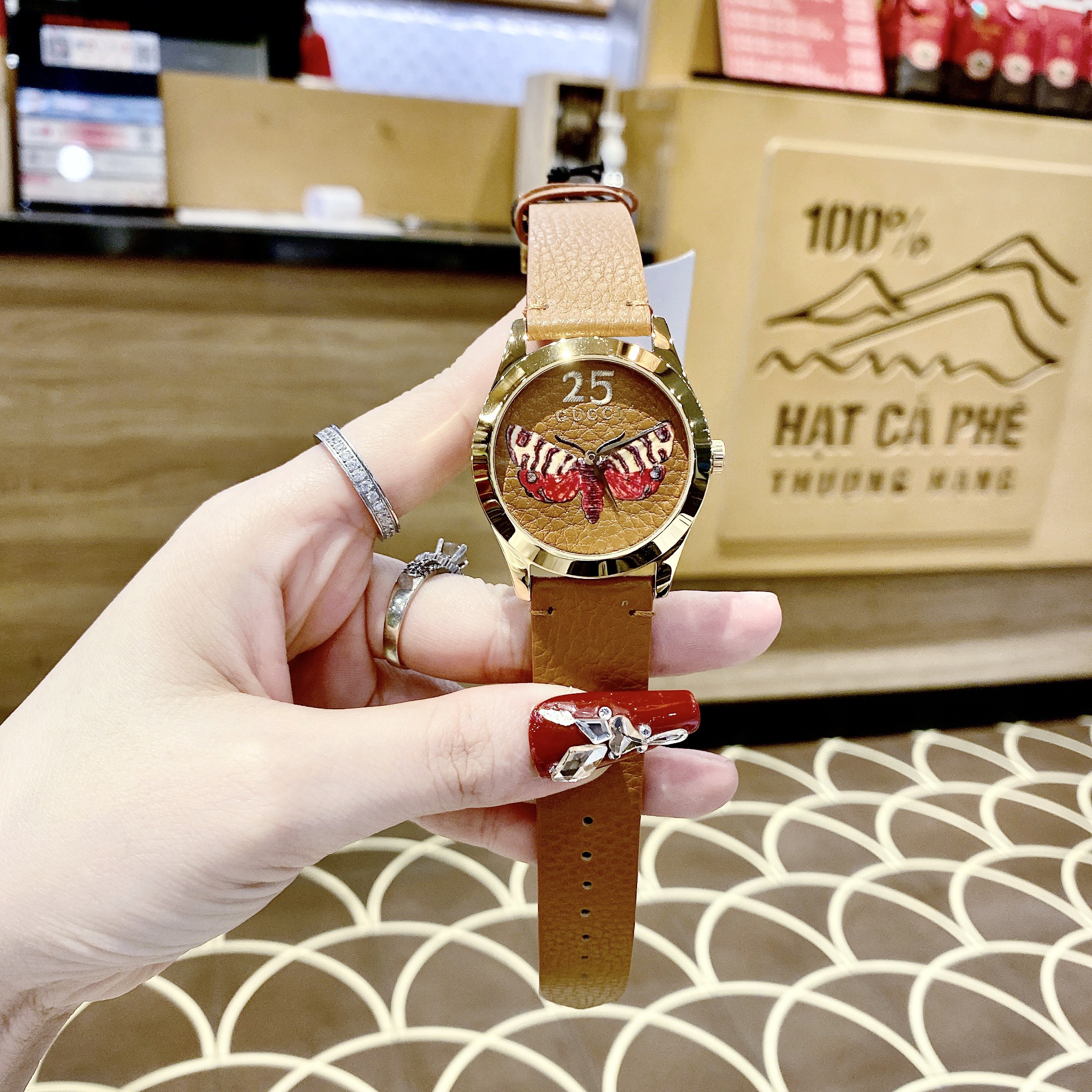 Đồng hồ nữ Gucci G-Timeless Butterfly dây da màu nâu siêu cấp