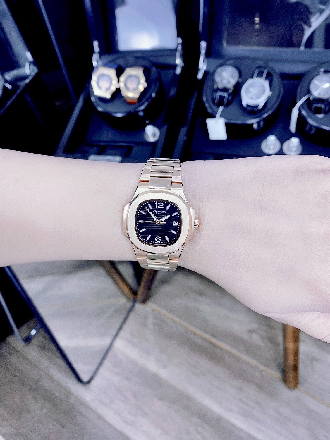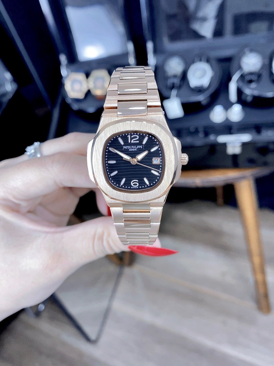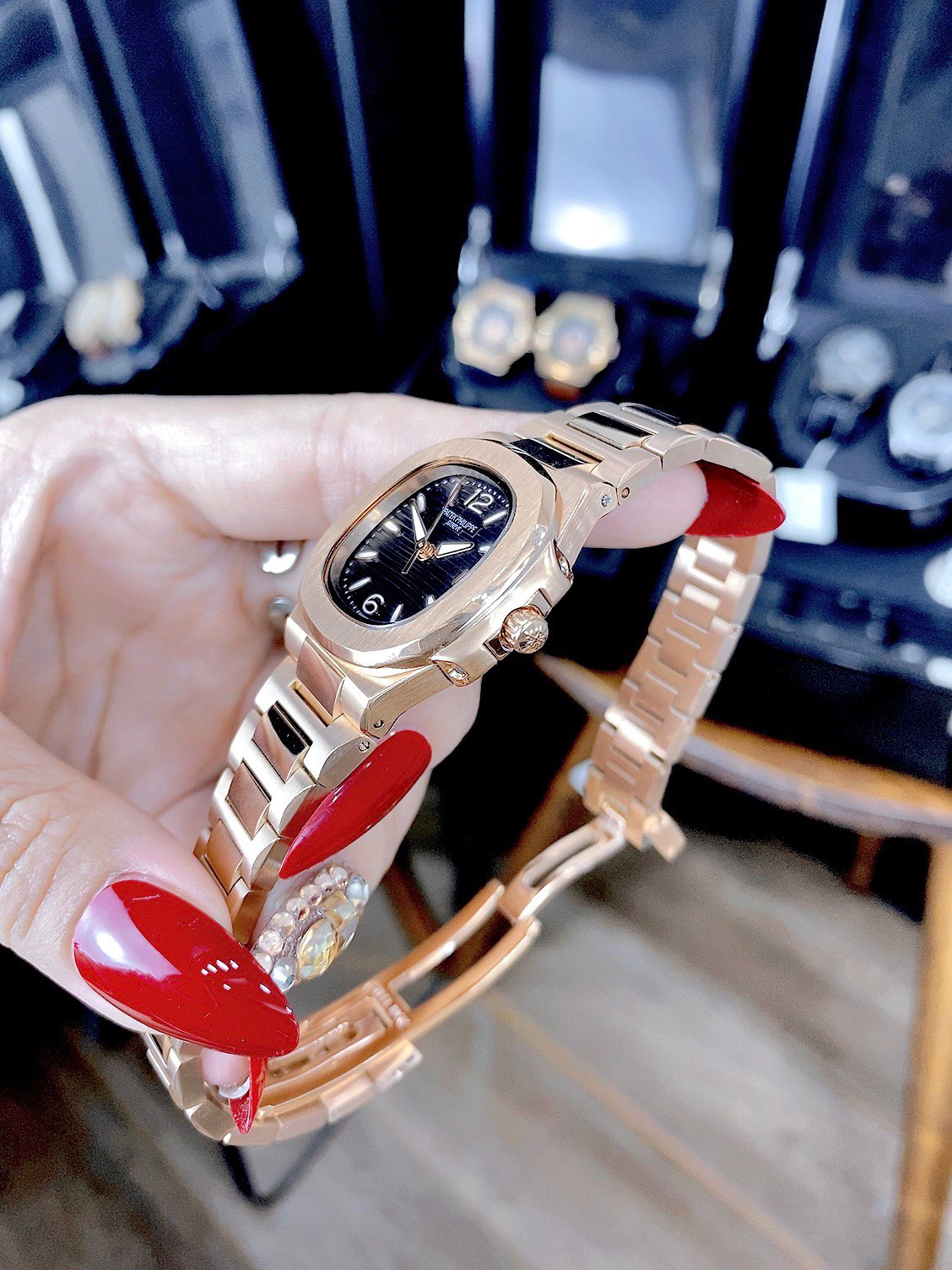 Đồng hồ nữ mặt đen Patek Philippe Nautilus Fake giá rẻ