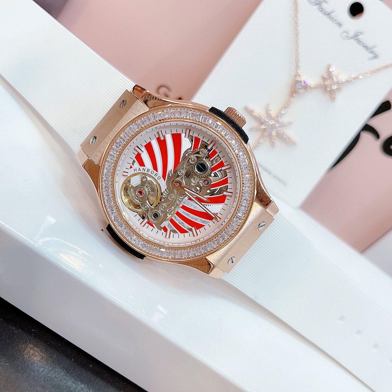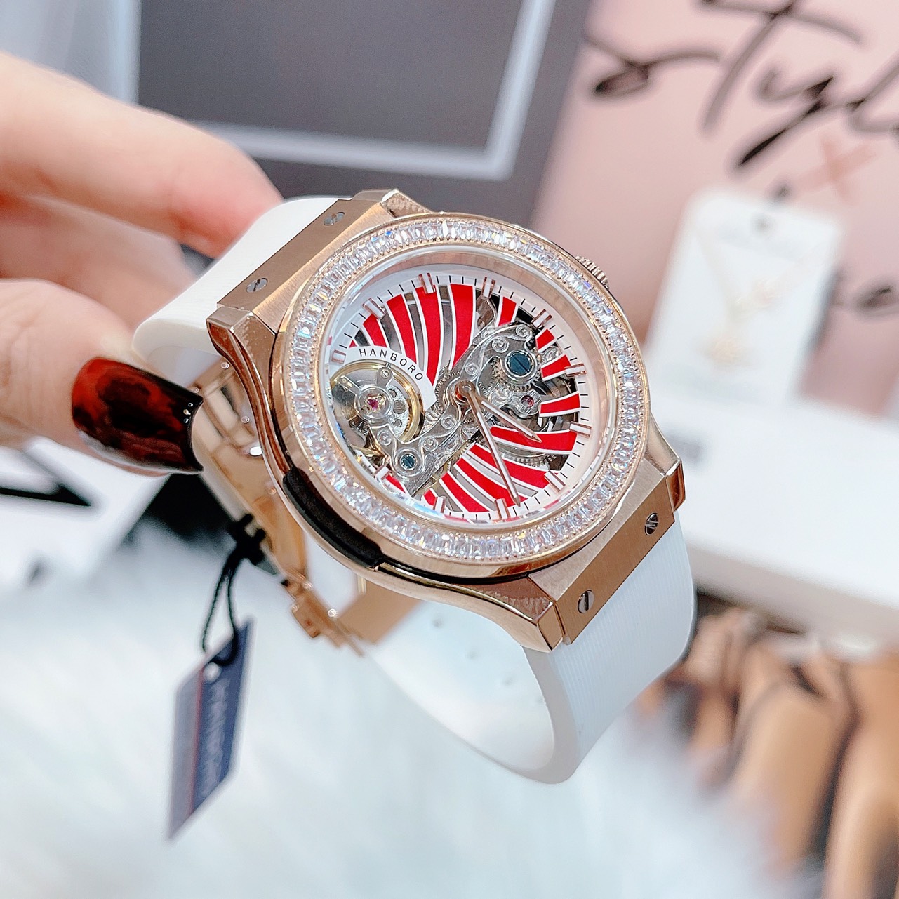 - Thiết kế mặt đồng hồ nữ chính hãng Hanboro thiết kế theo phong cách Hublot thể thao đình đám