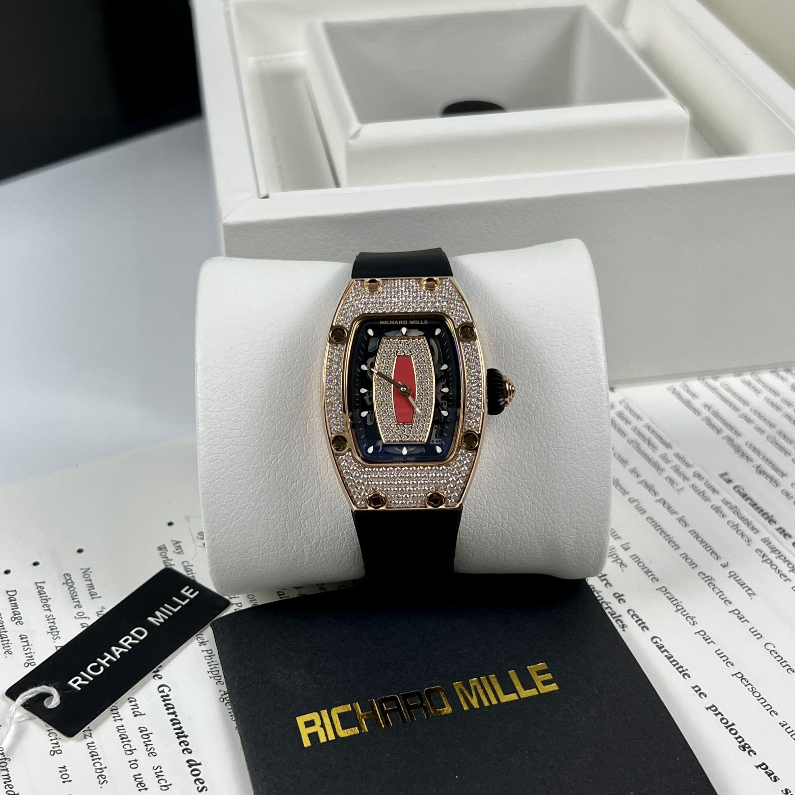 Đối với những người thật sự yêu thích đồng hồ, và tìm hiểu về nó, thì có lẽ cái tên đồng hồ Richard Mille đã không còn gì xa lạ. Hãng đồng hồ này tuy ra đời chưa lâu, nhưng lại cực kì được săn đón, và chuyên cho ra đời những mẫu đồng hồ độc nhất thuộc phân lớp thị trường đồng hồ siêu cao cấp. Không phải ai cũng có đủ tài chính để sở hữu một chiếc đồng hồ Richard Mille, vậy nên những nhà máy đồng hồ siêu cấp đã cho ra đời phiên bản Richard Mille Replica 1:1 – cao cấp nhất với độ hoàn thiện 99% như hãng mà giá cả chỉ trên dưới chục triệu đồng. Hãy cùng DWatch Thế Giới Đồng Hồ tham khảo ngay mẫu đồng hồ nữ Richard Mille RM007 Rep 11 cao cấp nhất đính full đá nhé!