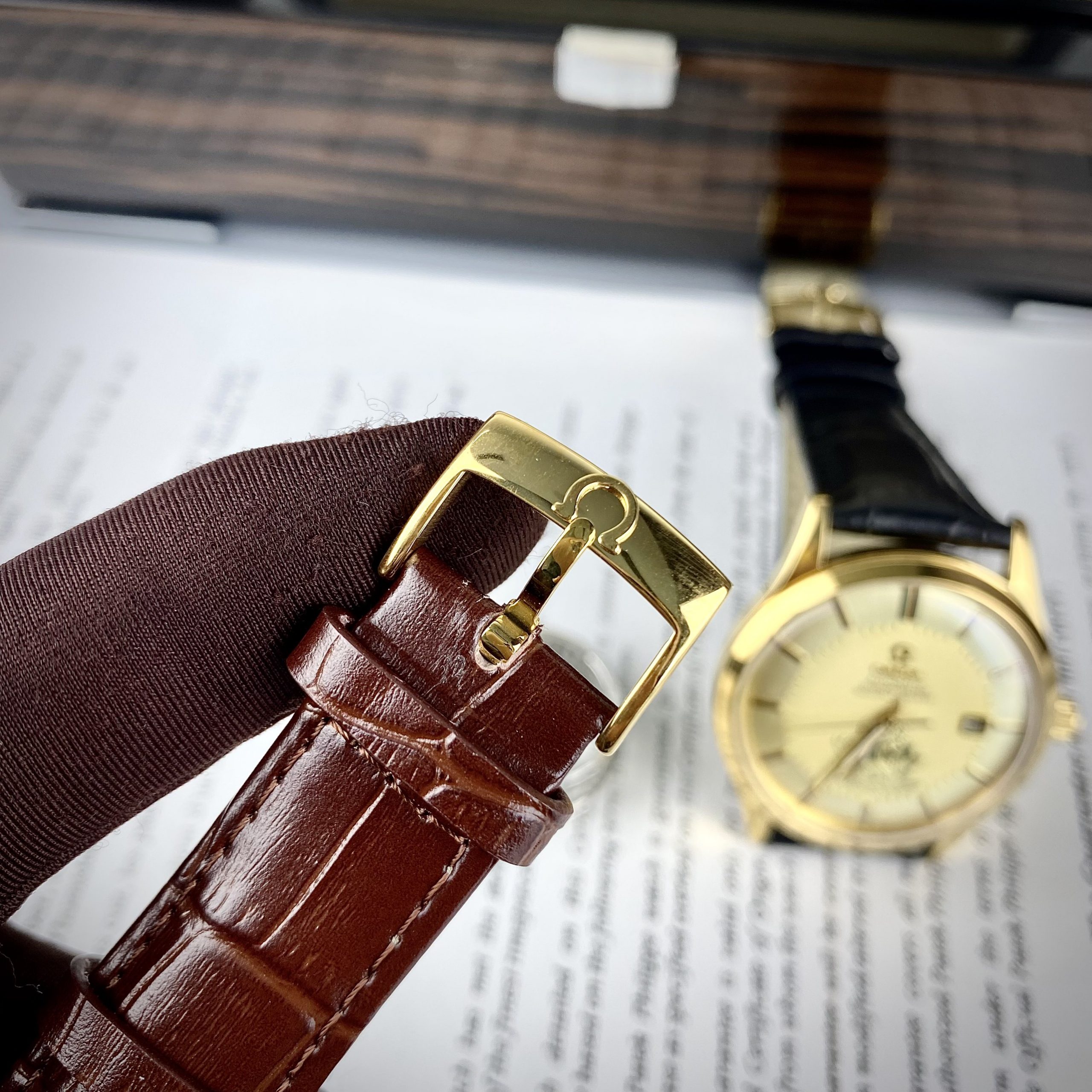 - Đồng hồ Omega nam dây da màu nâu dày bền đẹp và ôm tay