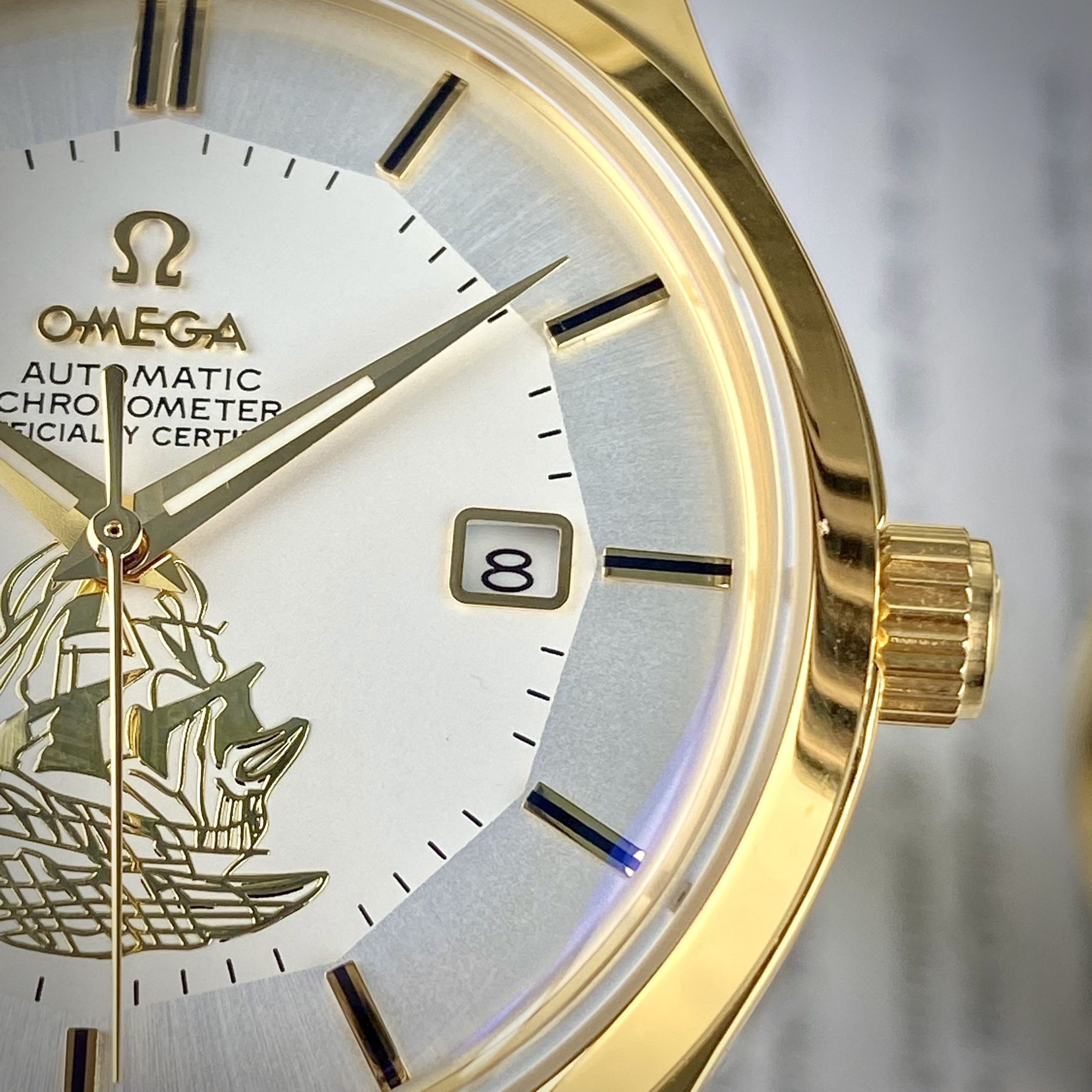 - Đồng hồ Omega Thuận Buồm Xuôi Gió với hình ảnh chiếc thuyền buồm trên mặt đồng hồ vô cùng ý nghĩa