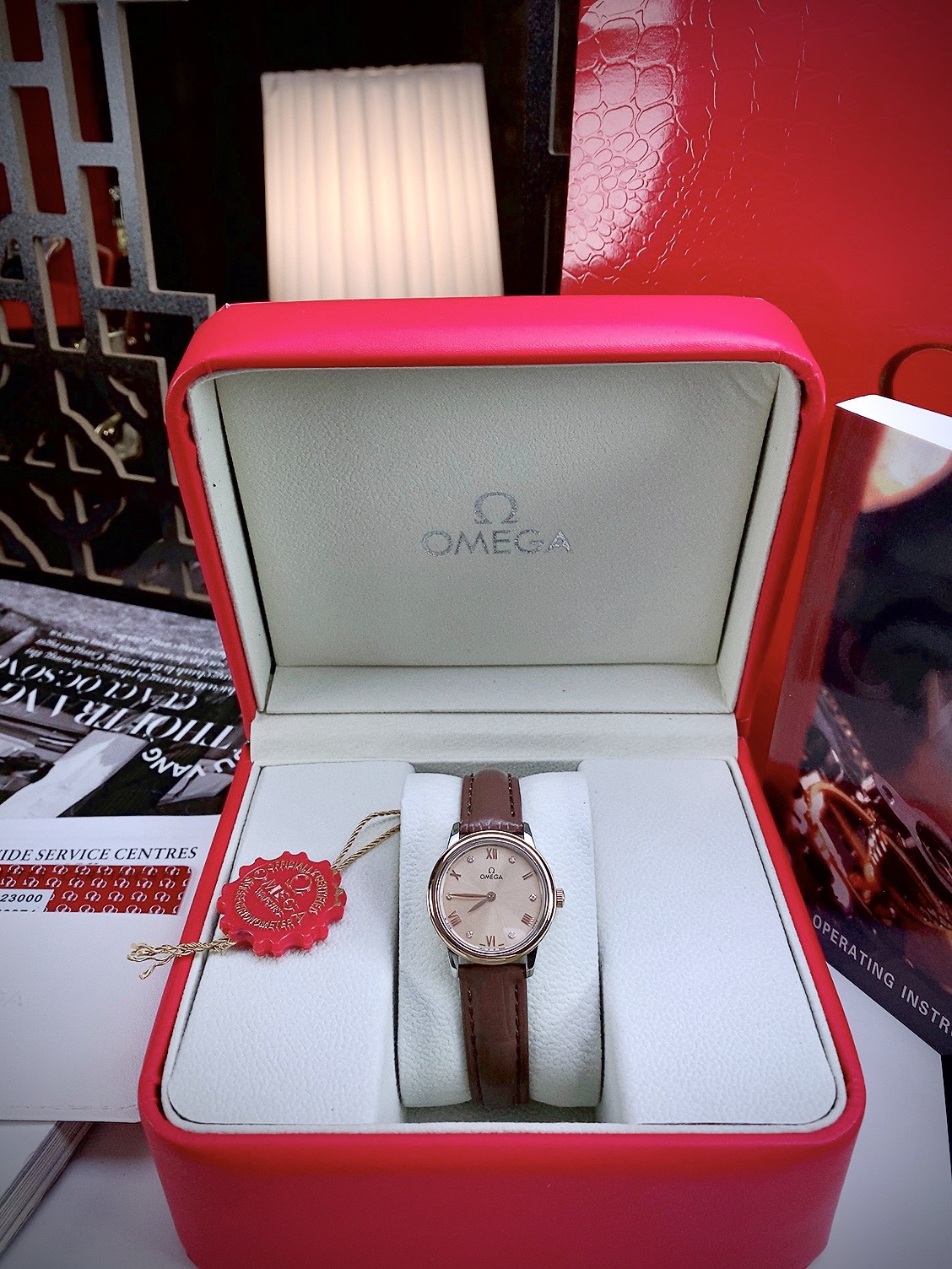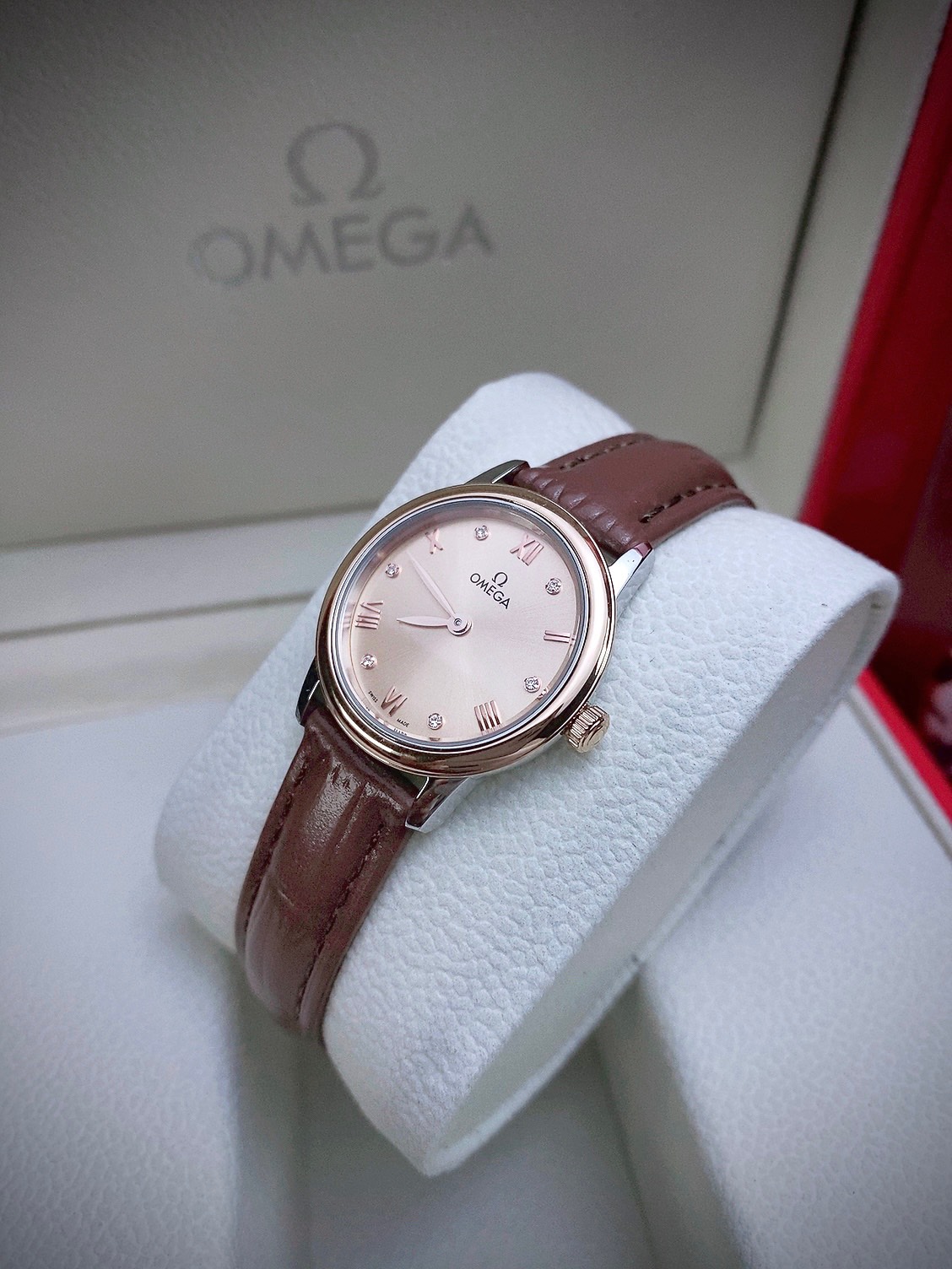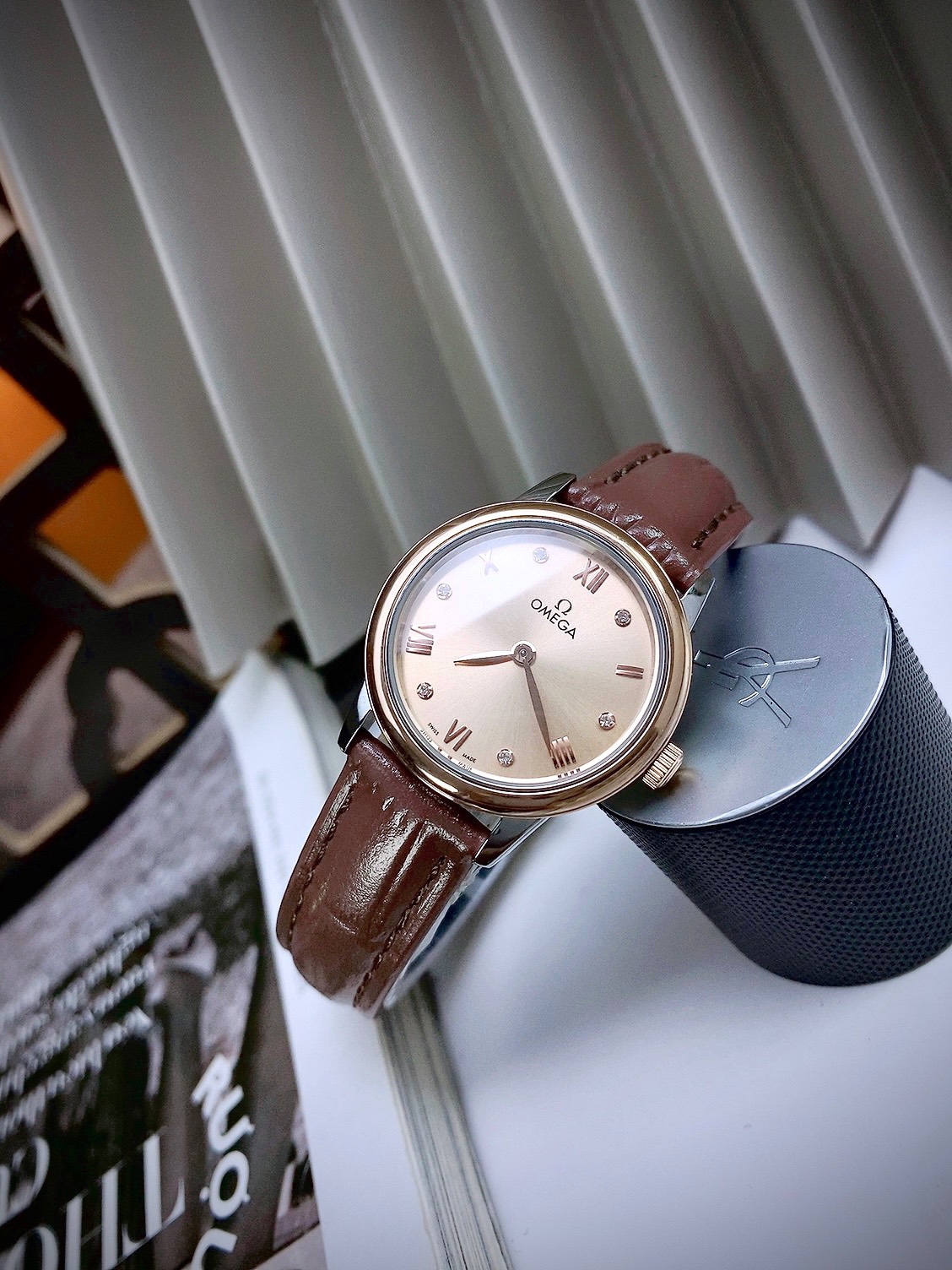 Đồng hồ Omega Deville nữ dây da màu nâu Super Fake Nhật 28mm