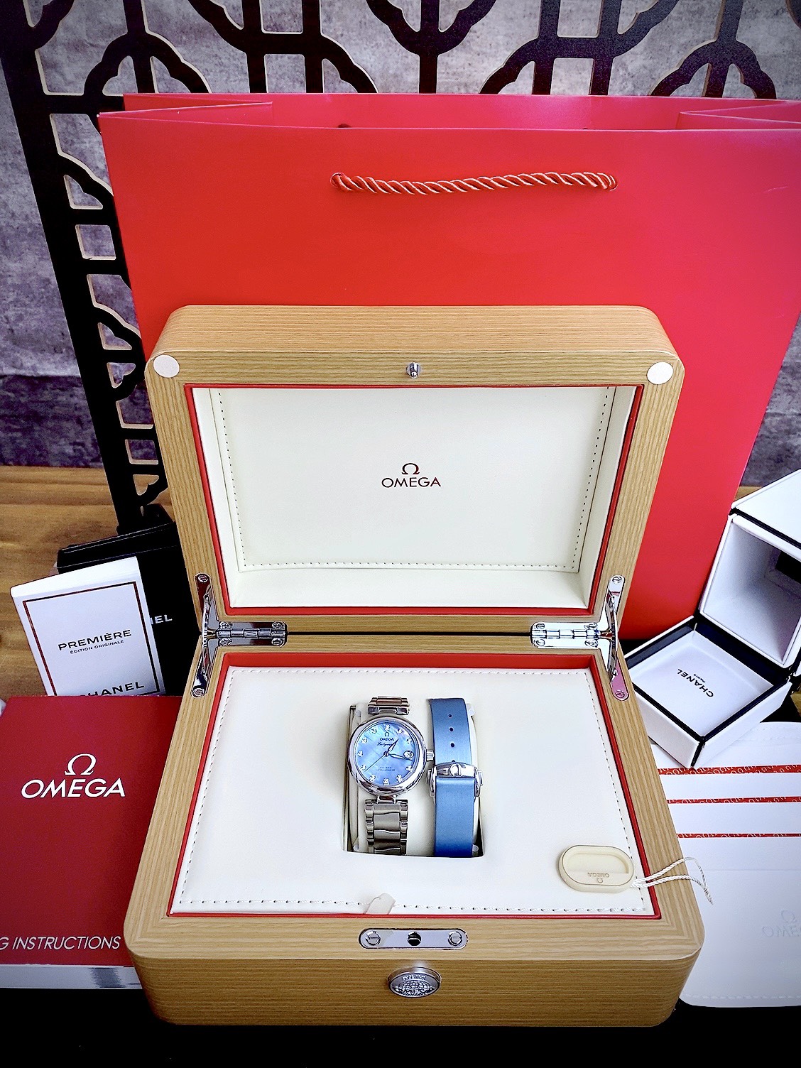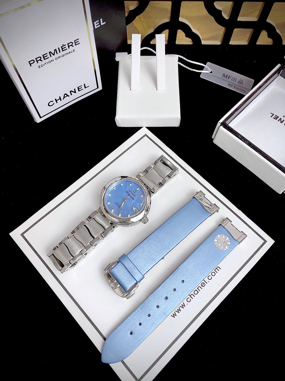 Đồng Hồ Omega Ladymatic nữ cọc số đính đá tặng kèm 1 bộ dây
