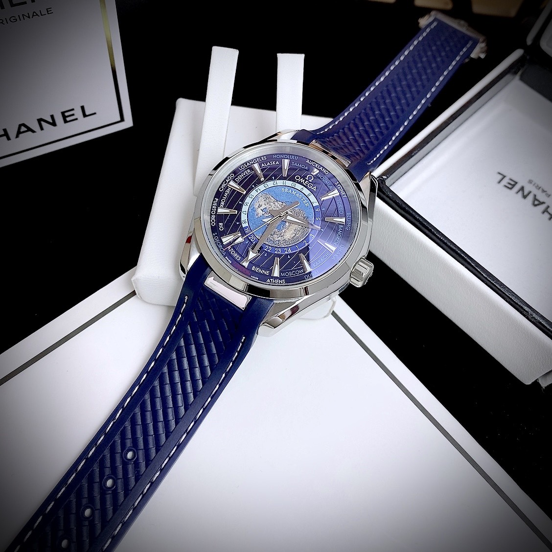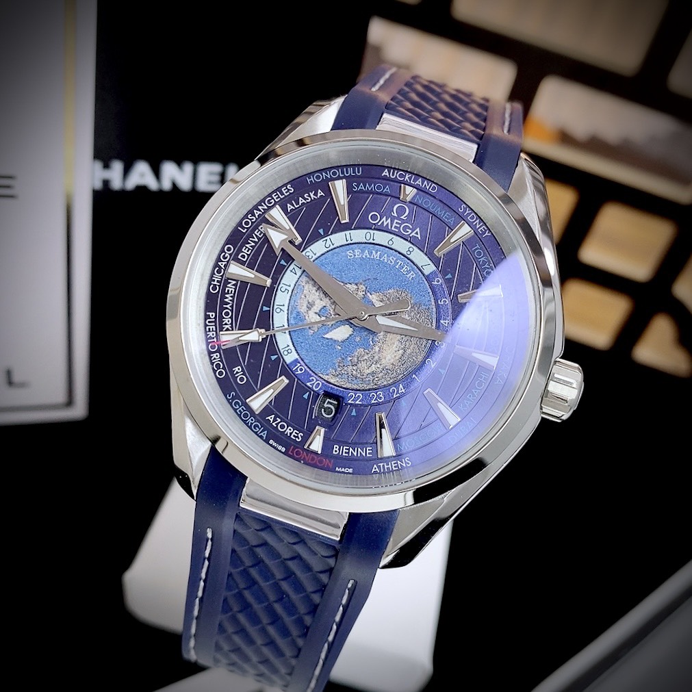 Đồng hồ Omega Seamaster Aqua Terra Worldtimer máy Nhật màu xanh