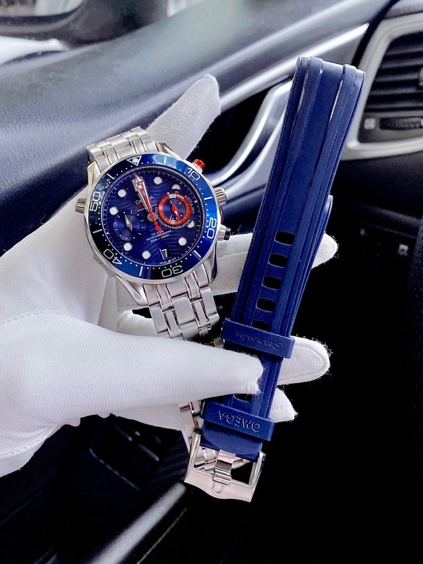 - Đồng hồ Omega nam dây đúc đặc mạnh mẽ nam tính, tặng kèm 1 bộ dây cao su màu xanh dương
