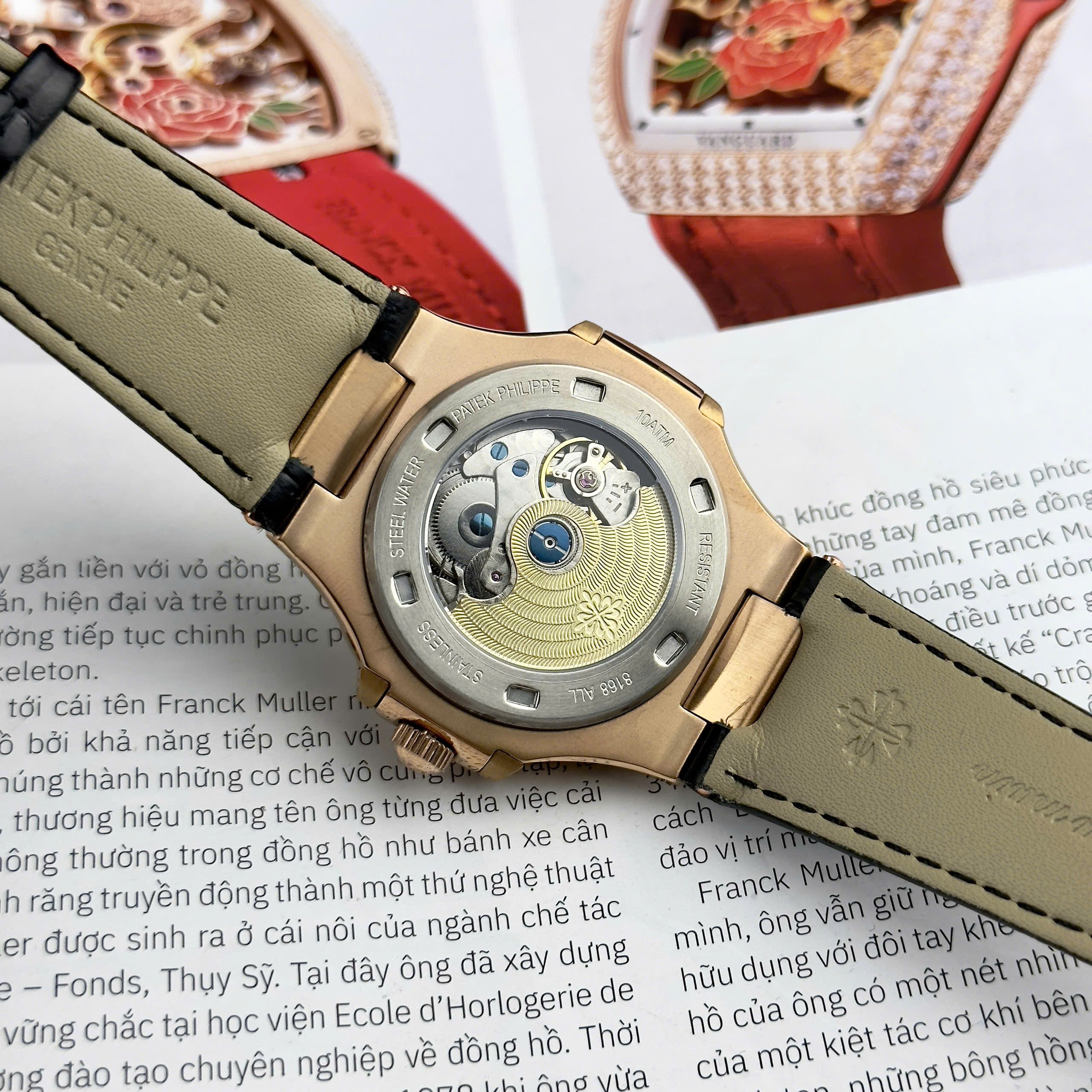 Đặt mua Đồng hồ Patek Philipe Nautilus 5726 KingGold dây da viền đá baguette Fake 11 40mm