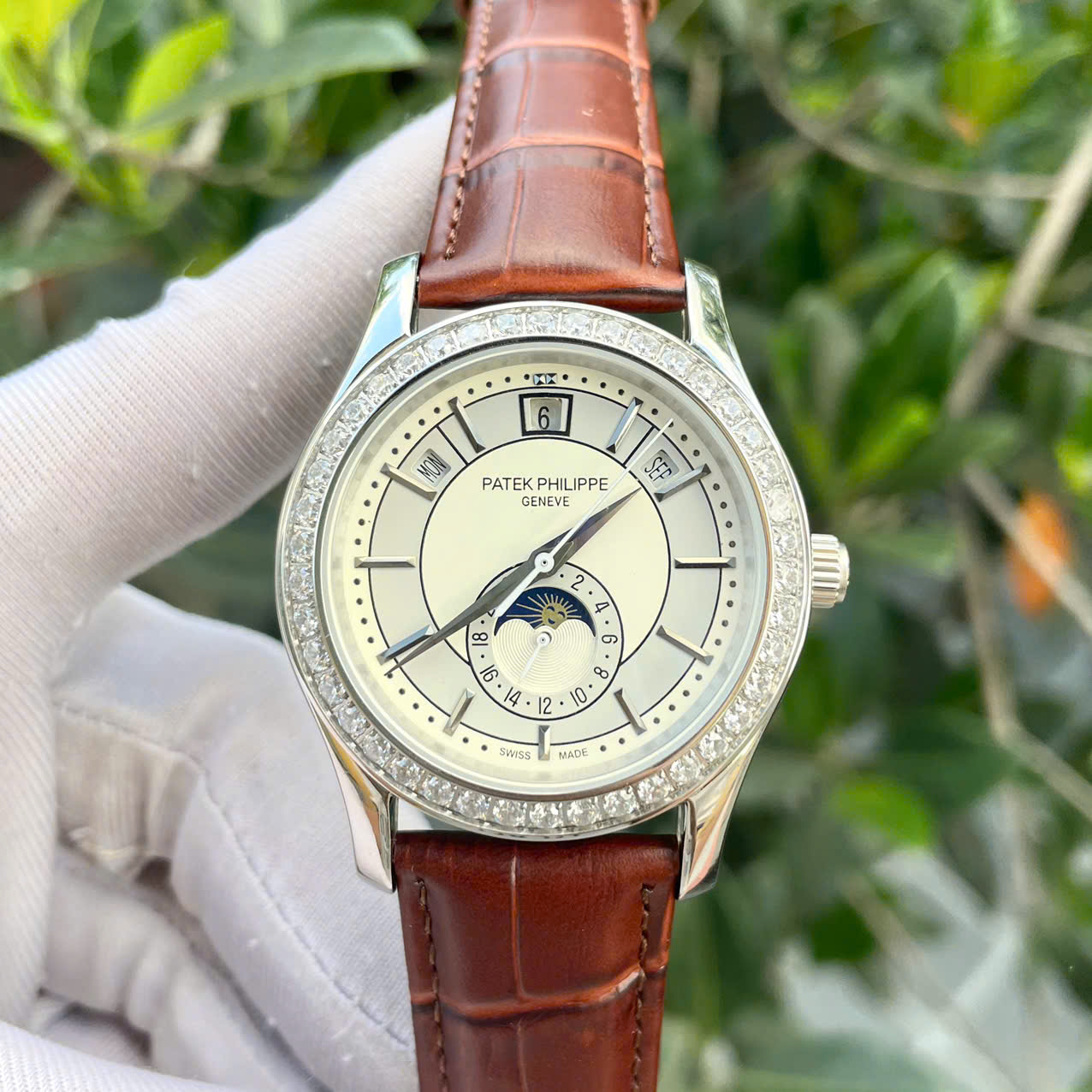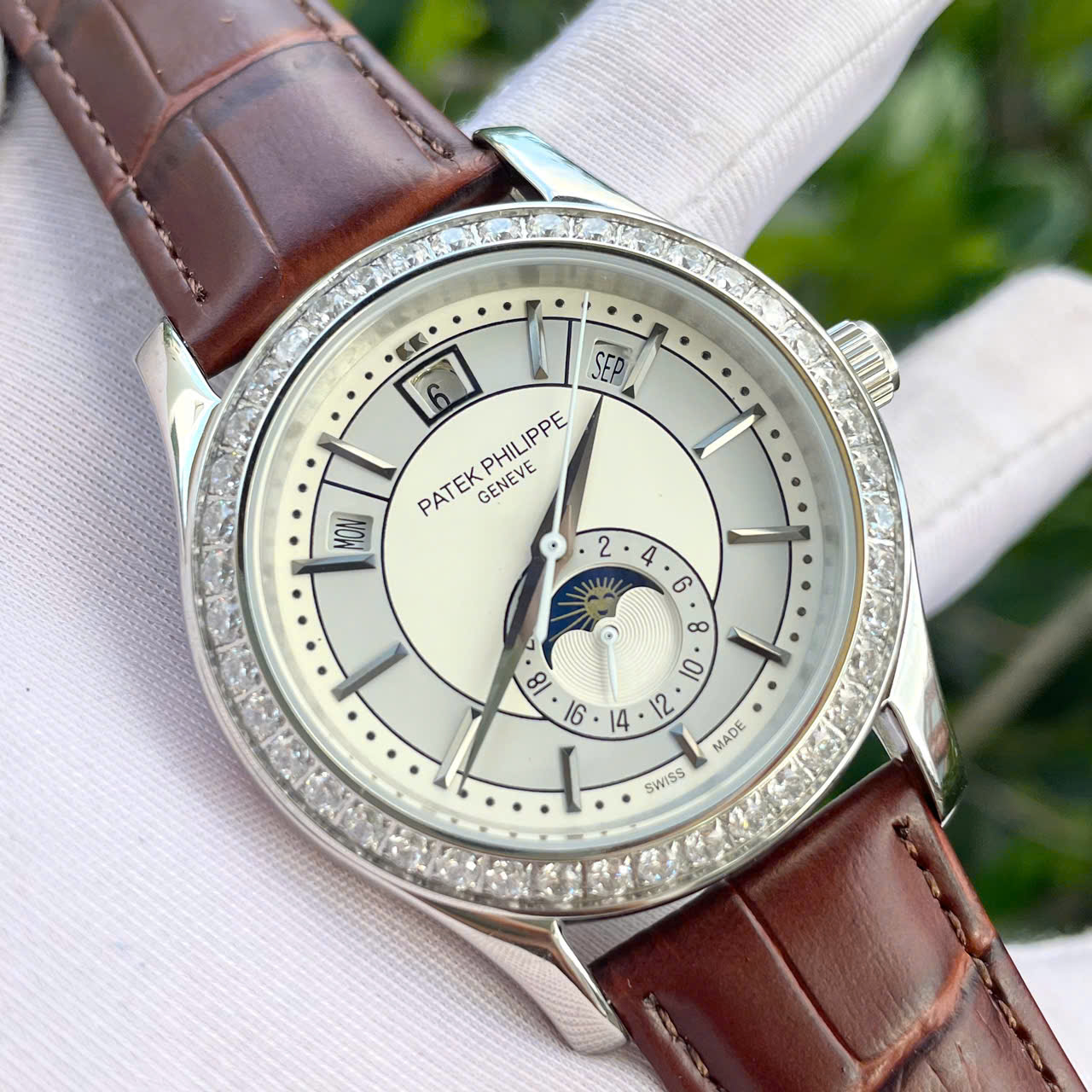 Đặt mua Đồng hồ Patek Philippe 5205R dây da nâu máy nhật giá rẻ fake cao cấp 40mm