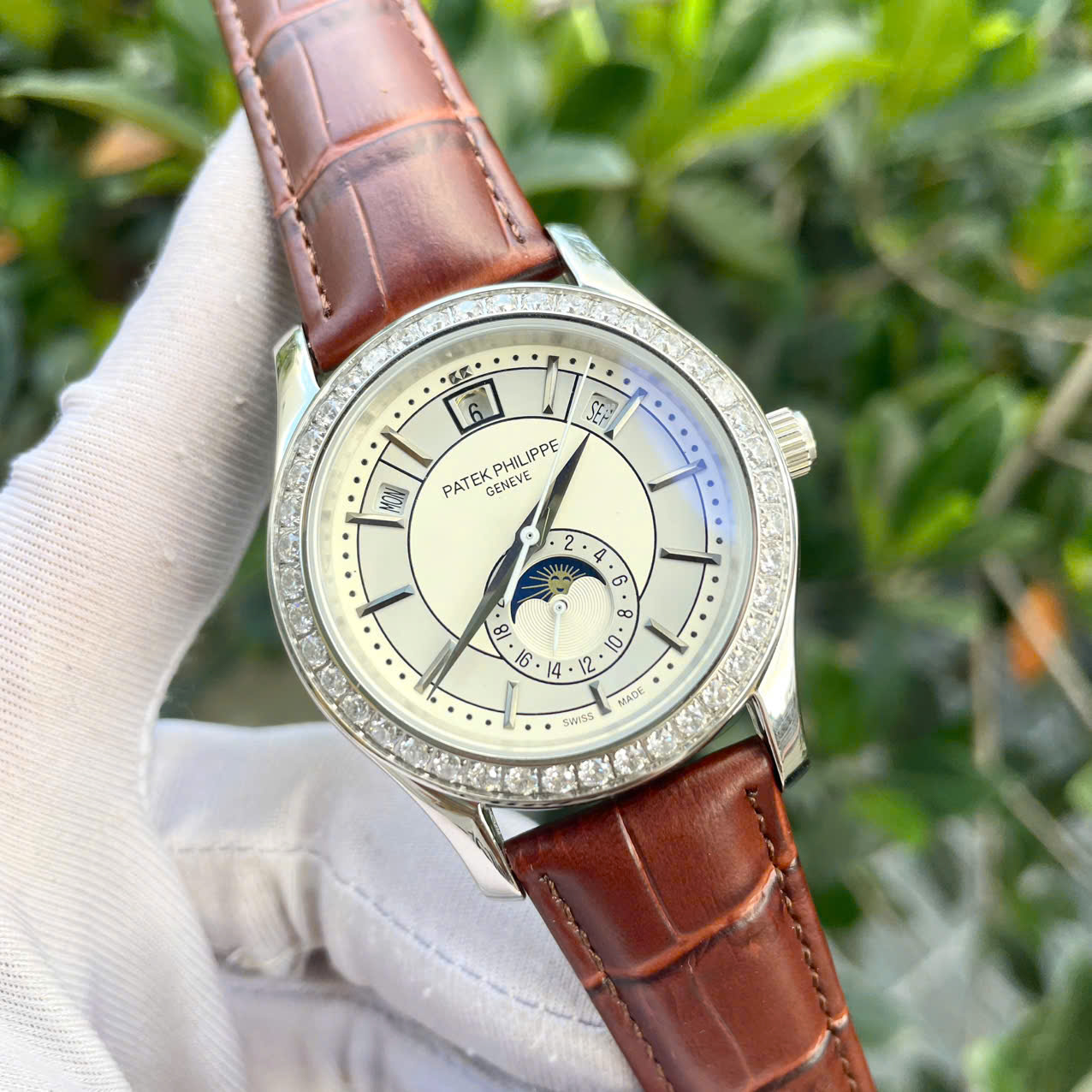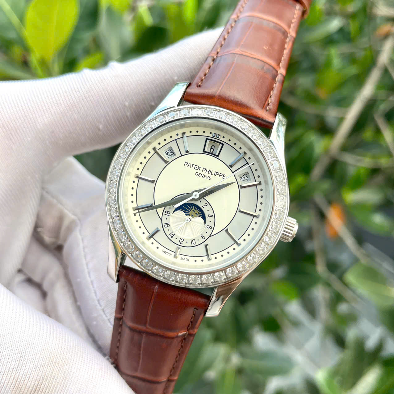 Đồng hồ Patek Philippe 5205R dây da nâu máy nhật giá rẻ fake cao cấp 40mm