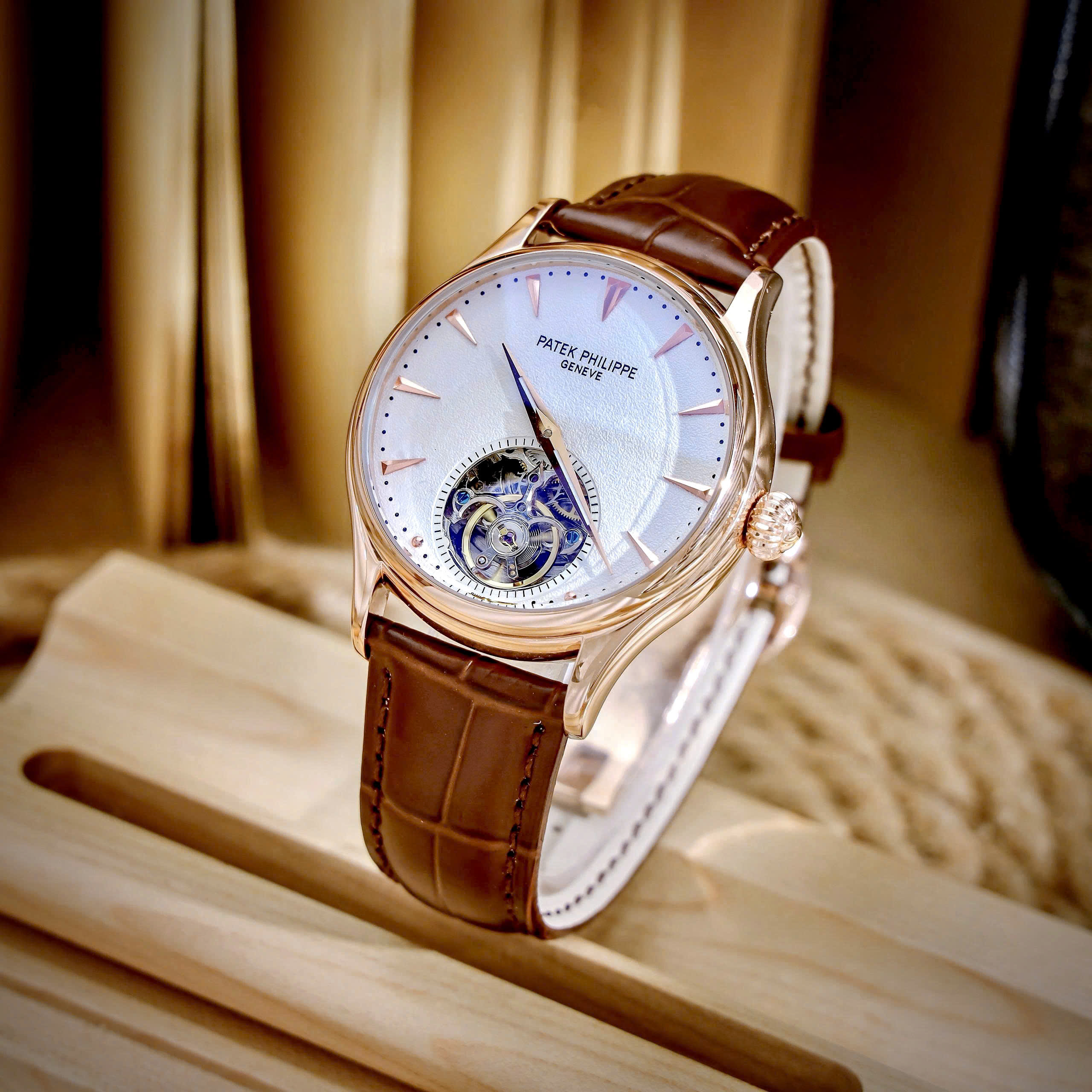 Đồng hồ Patek Philippe Genève nam vàng gold lộ cơ Tourbillon fake cao cấp 43mm