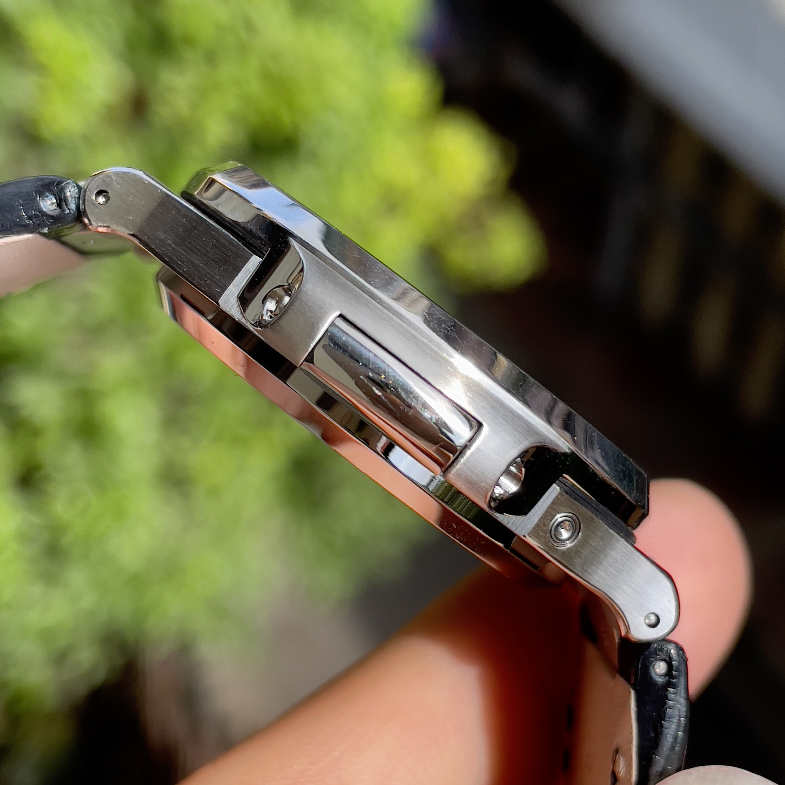 Sản phẩm được trang bị bộ dây đeo thiết kế bằng da cá sấu. Dây đeo đi kèm bộ khóa gập và có khóa an toàn rất dễ sử dụng. Theo như chúng tôi thấy ở đây khi mình đeo và trải nghiệm. Sản phẩm này mình cảm thấy nó rất thoải mái và mang lại cảm giác nhẹ nhàng, mềm mại.
