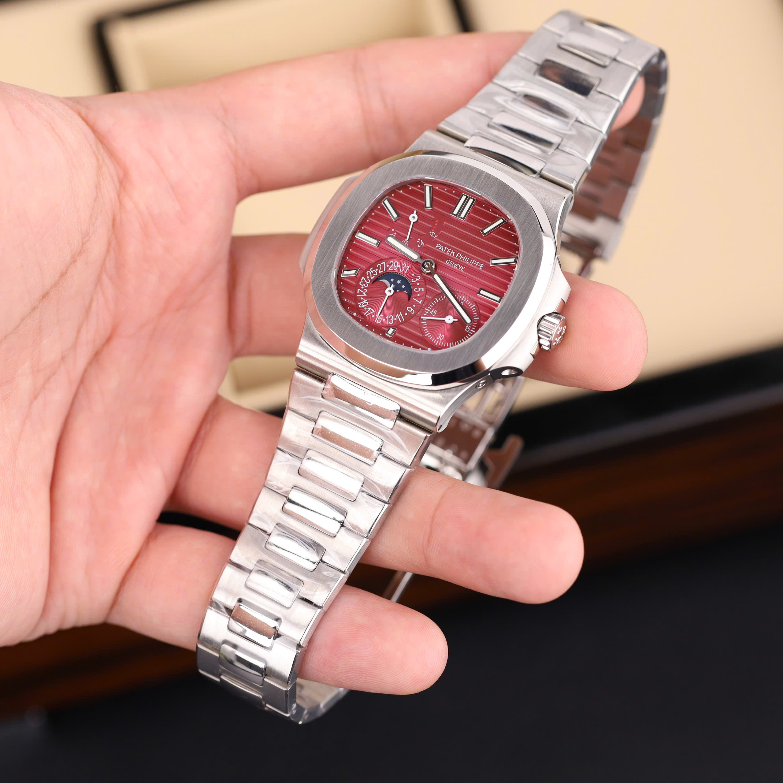 Đồng hồ Patek Philippe Nautilus 5712 Fake 11 mặt số màu cherry dây kim loại xưởng GR 40mm
