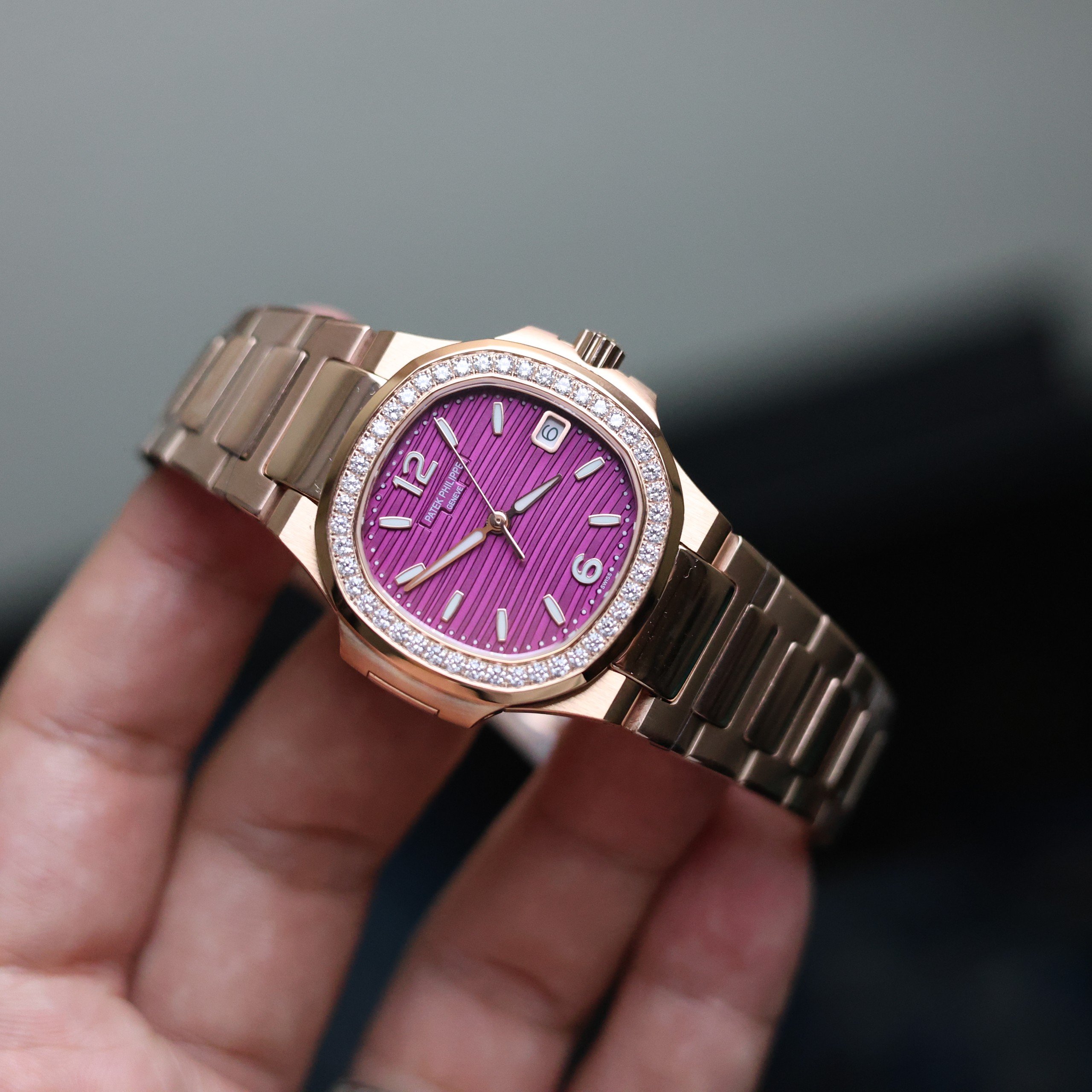 Đặt mua Đồng hồ Patek Philippe Nautilus 7118R đính đá mặt màu tím Rep 11 32mm