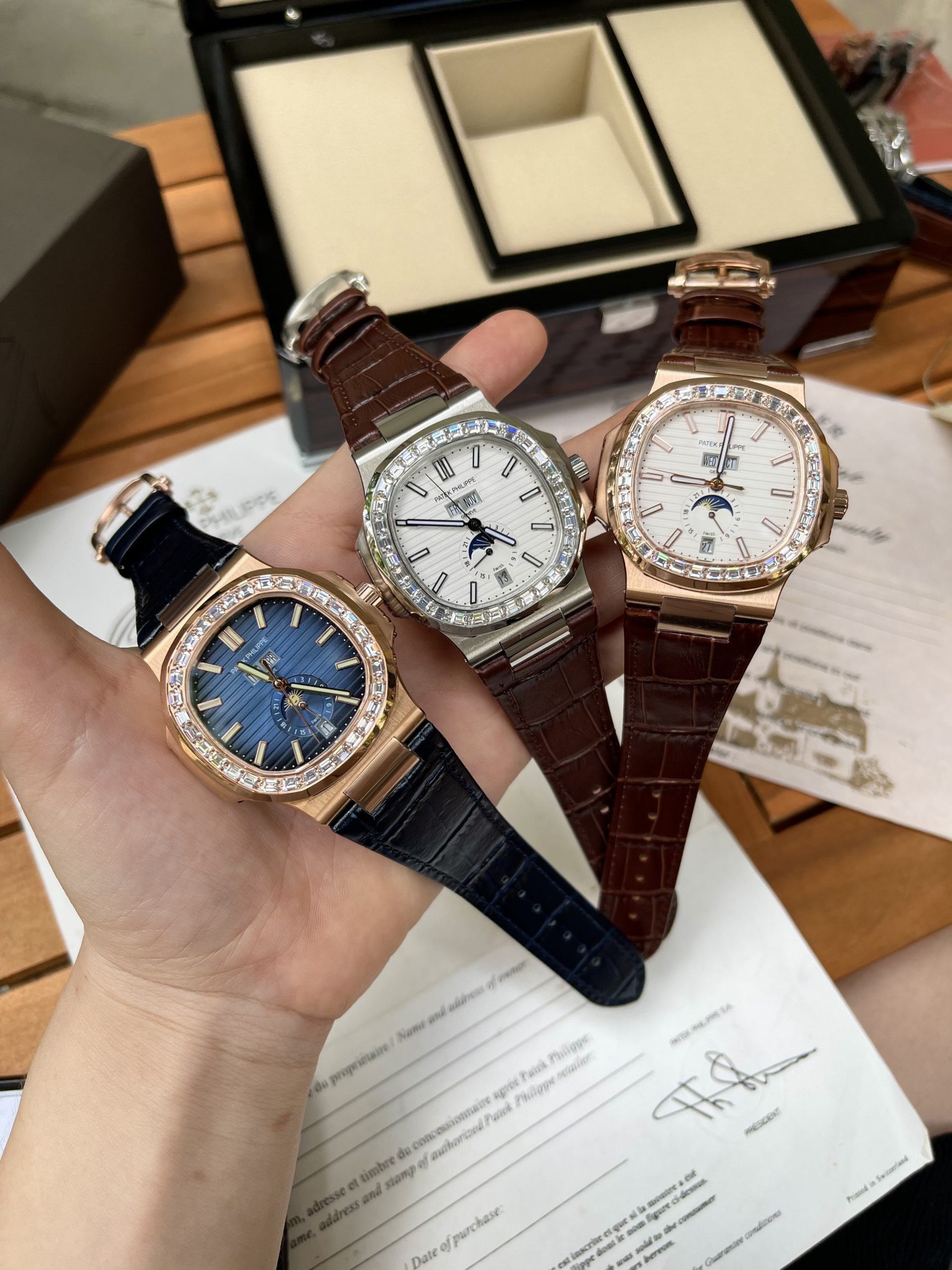 Đồng hồ Patek Philippe Nautilus Fake 1:1 Đính Đá Baguette 40mm