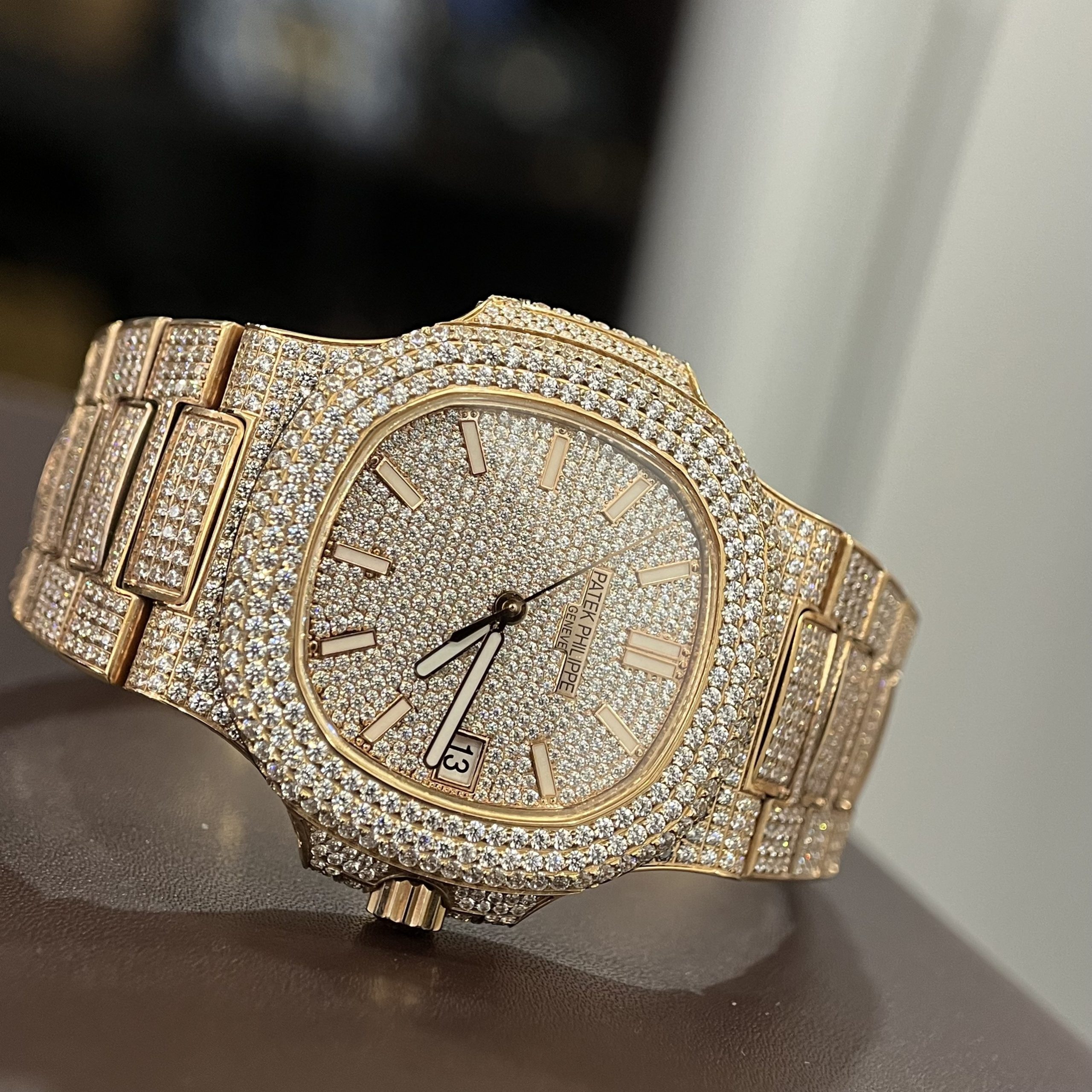 Đồng hồ Patek Philippe nam Siêu Cấp Nautilus Full Diamonds Replica 1:1