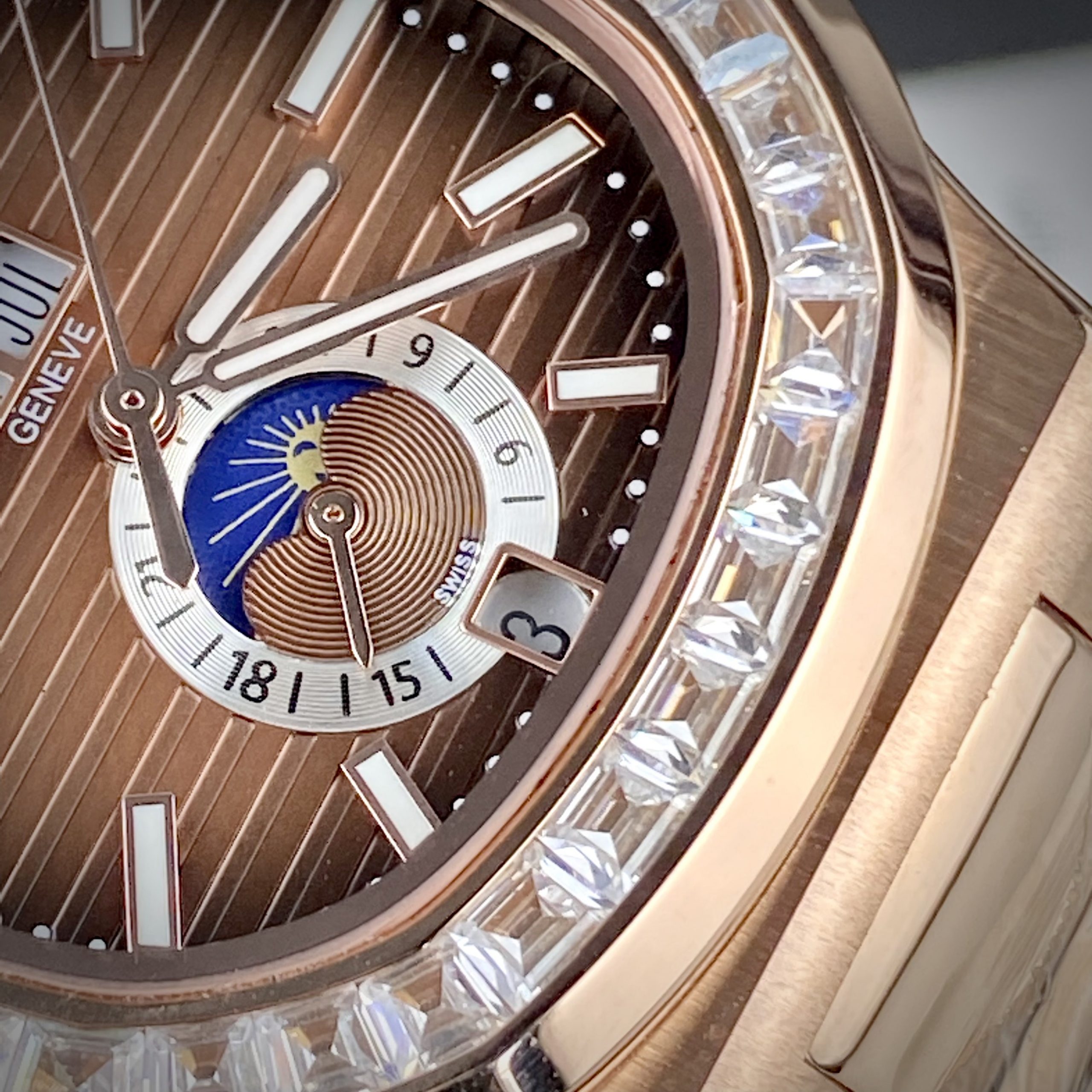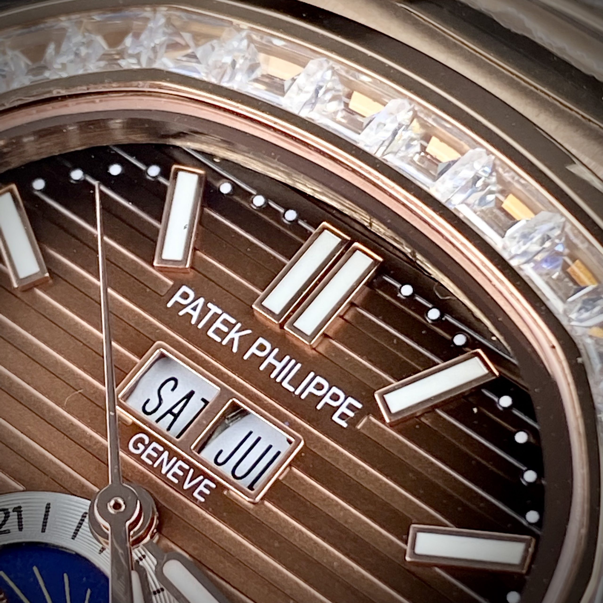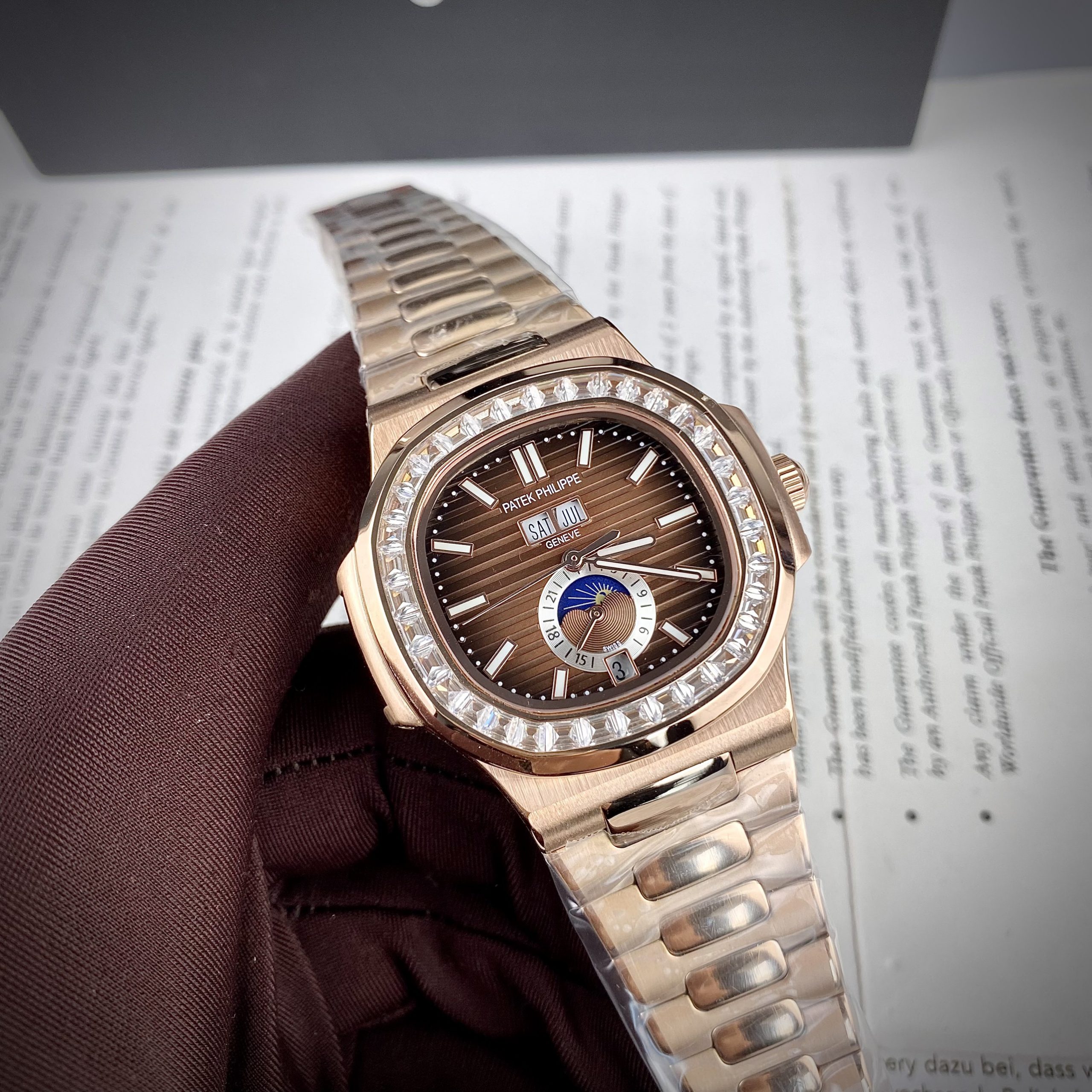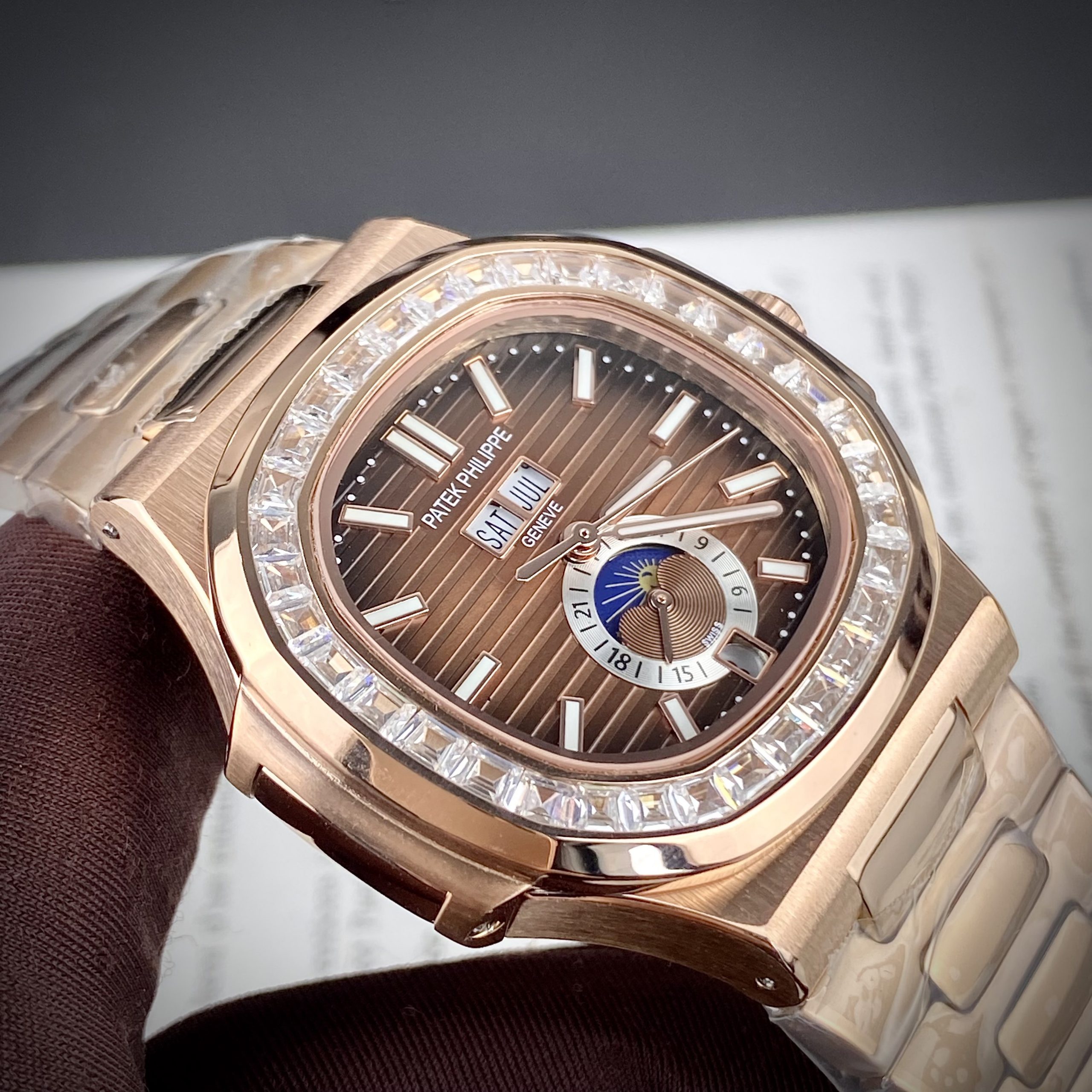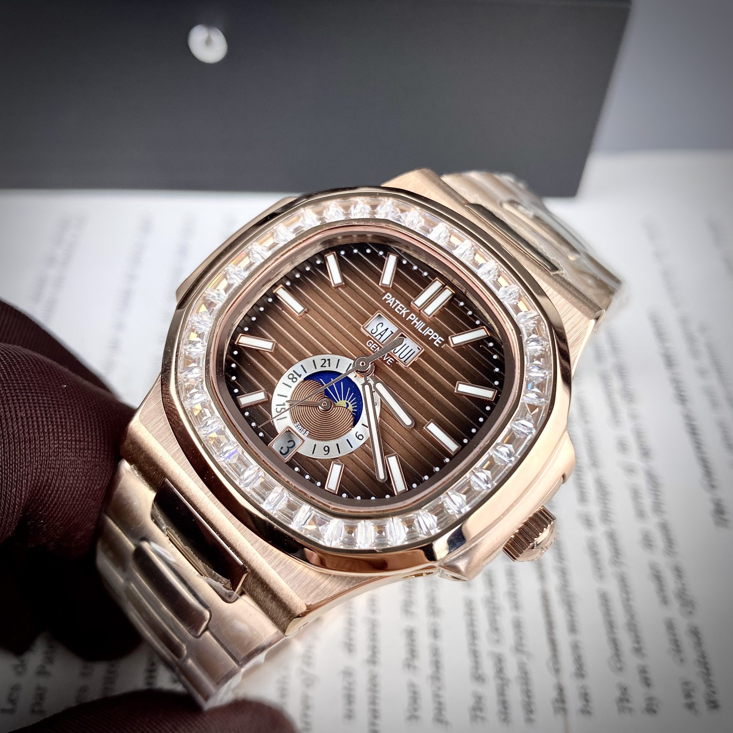 Đồng hồ Patek Philippe Nautilus màu vàng hồng mặt nâu đính đá 40mm