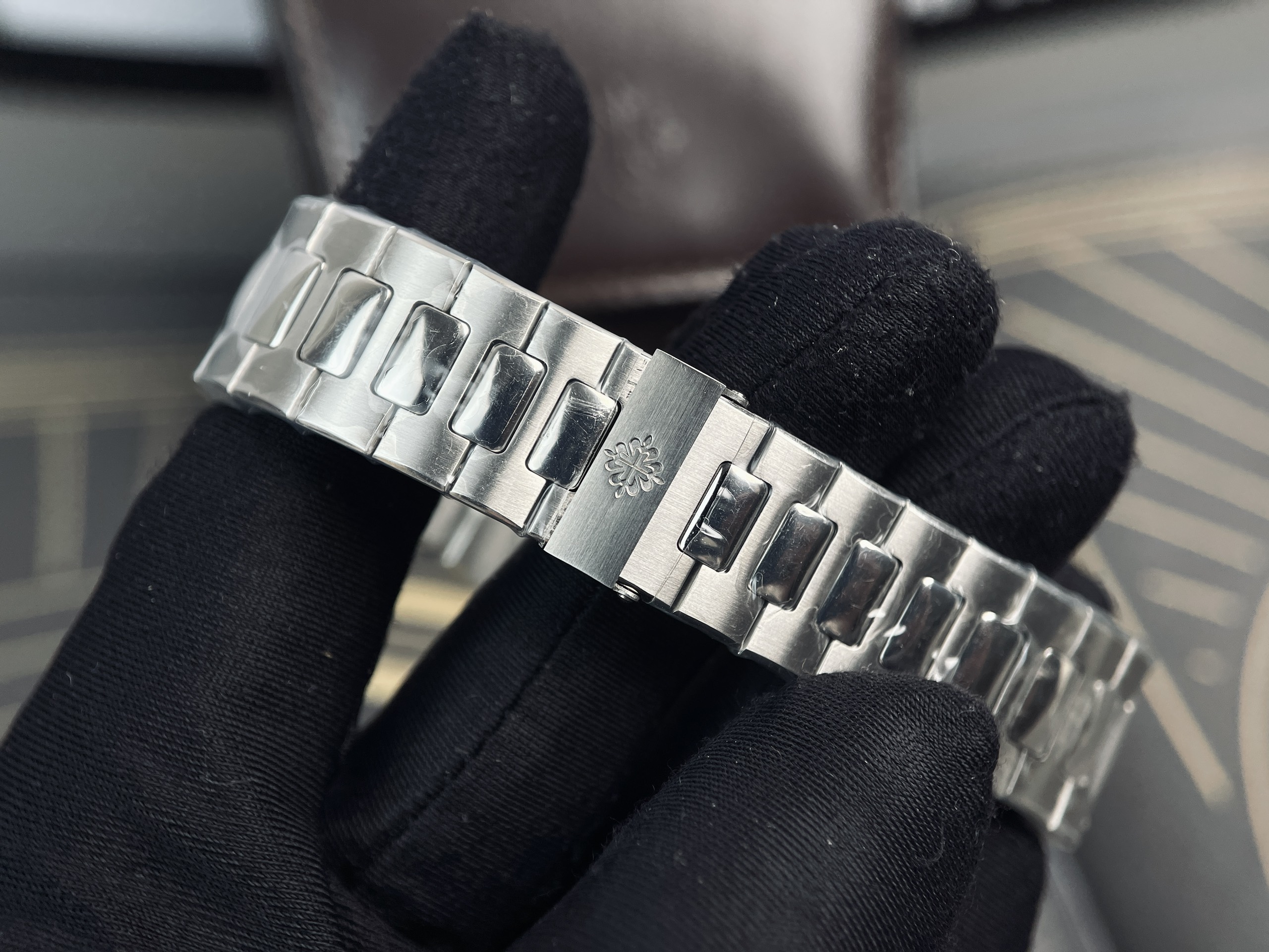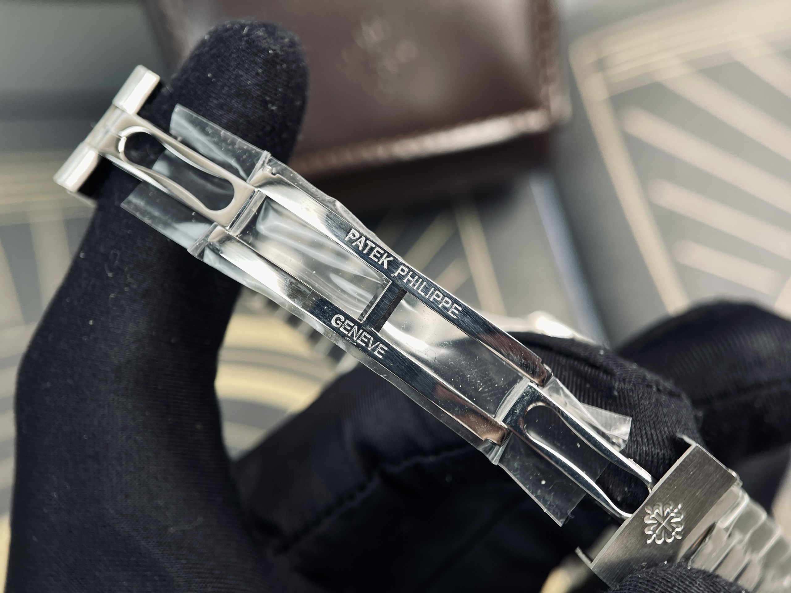 Dây khóa chuẩn hãng kèm logo hoa thị nổi tiếng của đồng hồ Patek Philipep Replica 1:1