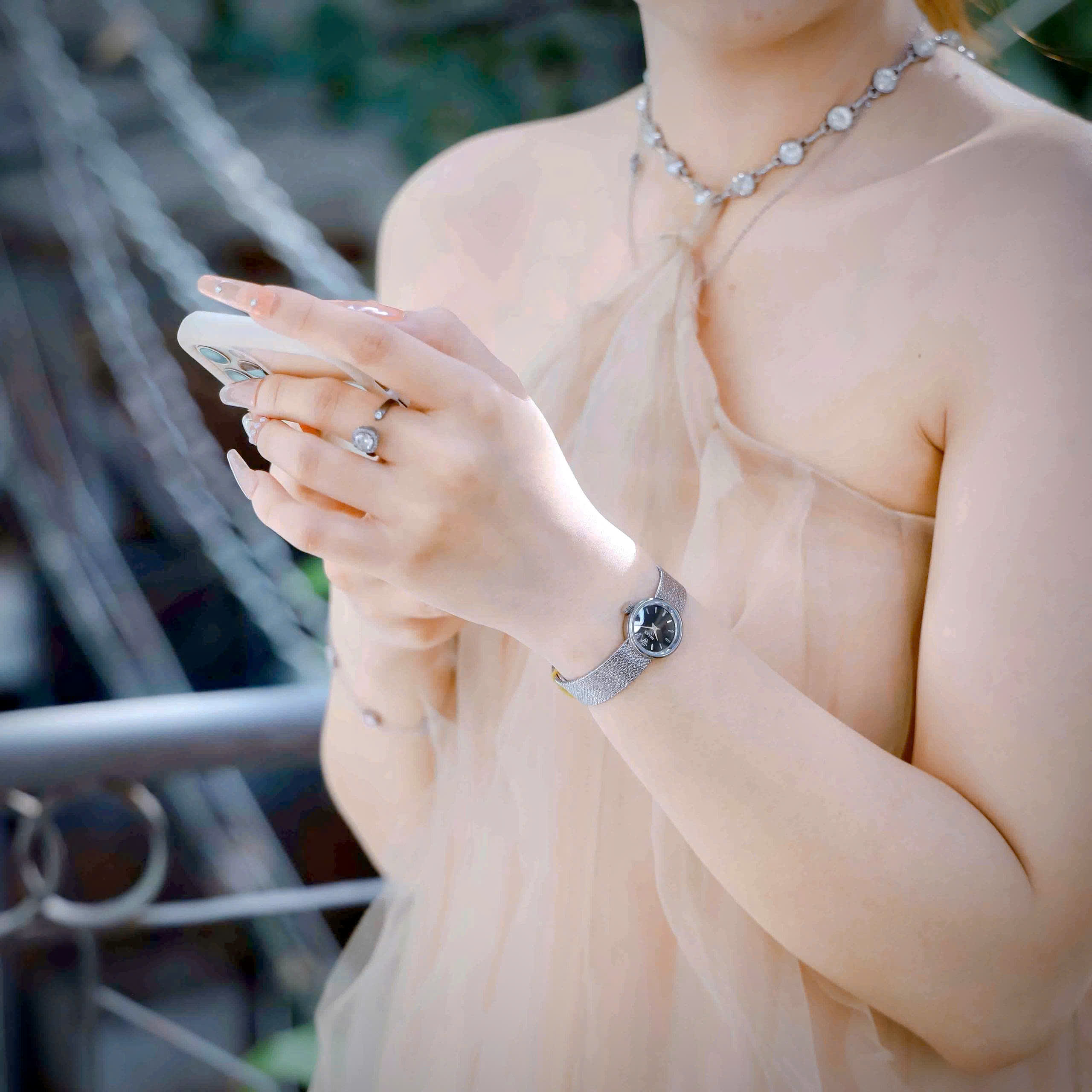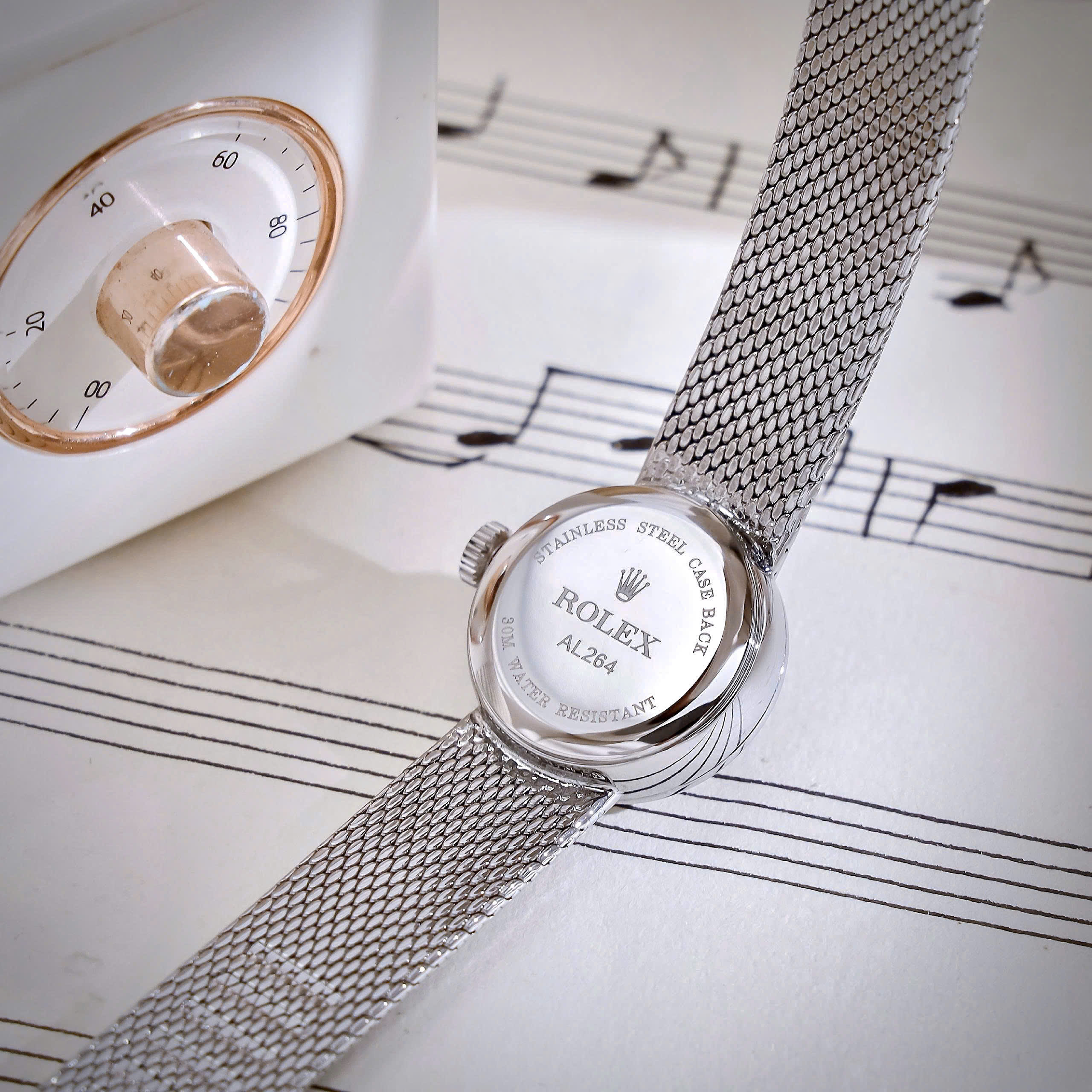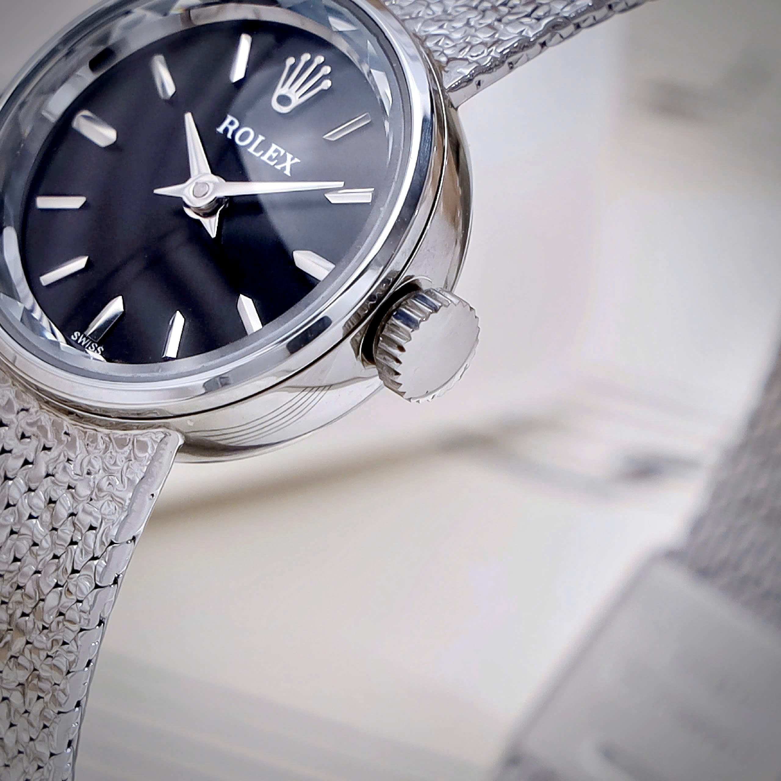 Đồng hồ Rolex Chameleon Vintage nữ dây kim loại mặt đen fake cao cấp 20mm