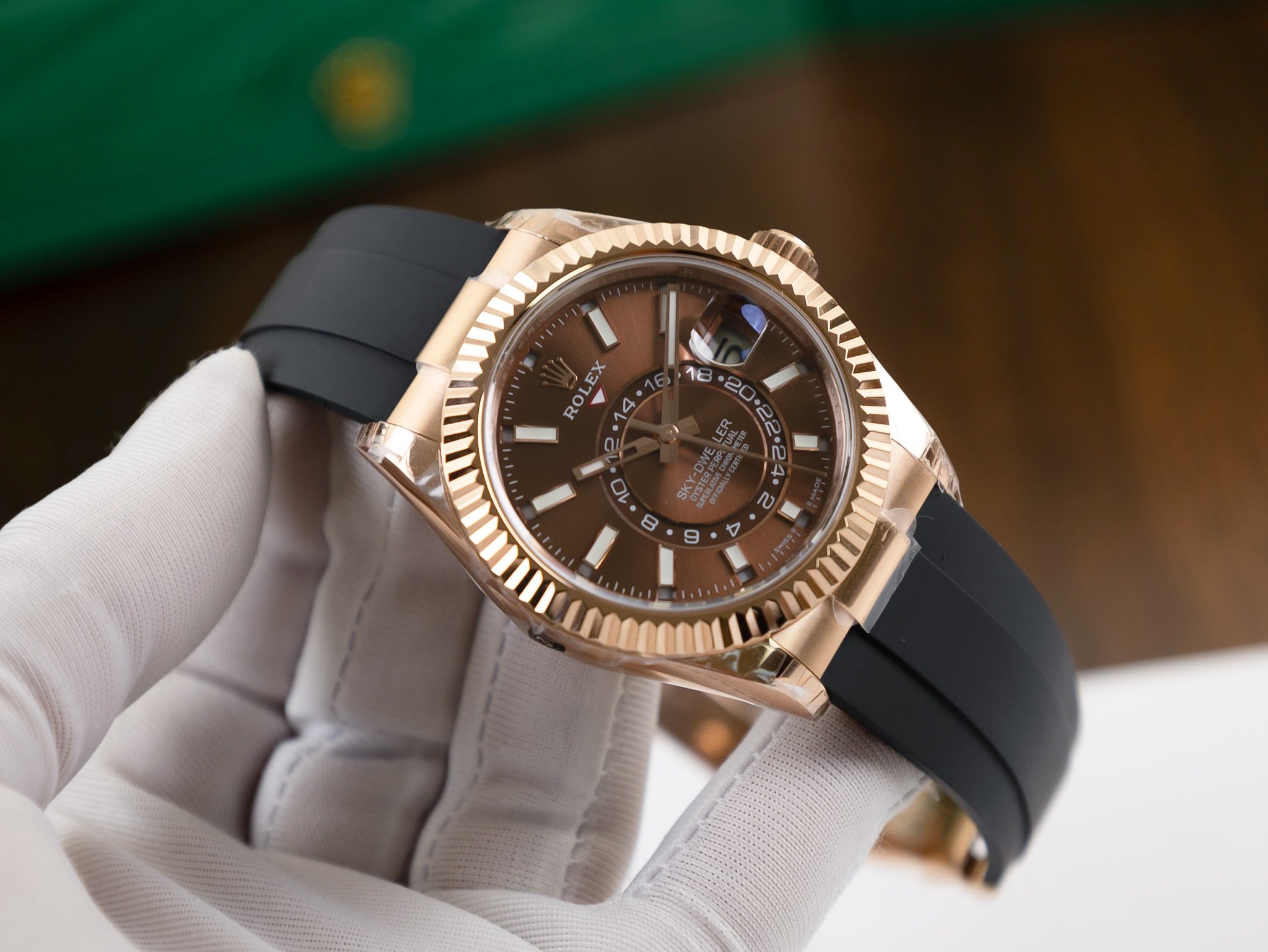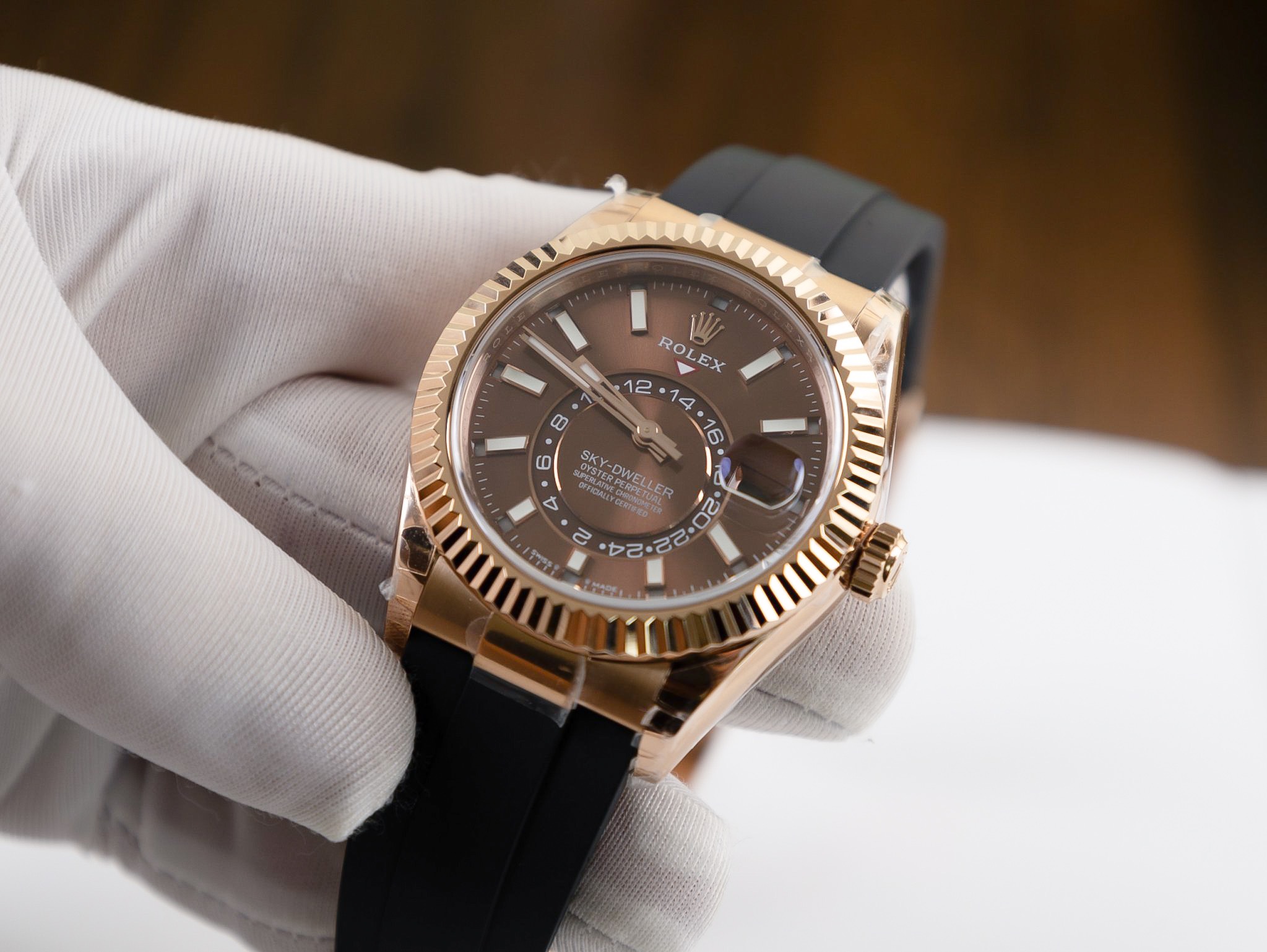 Đồng hồ Rolex chế tác Sky Dweller mặt số Chocolate dây cao su phiên bản cao cấp nhất tại DWatch.