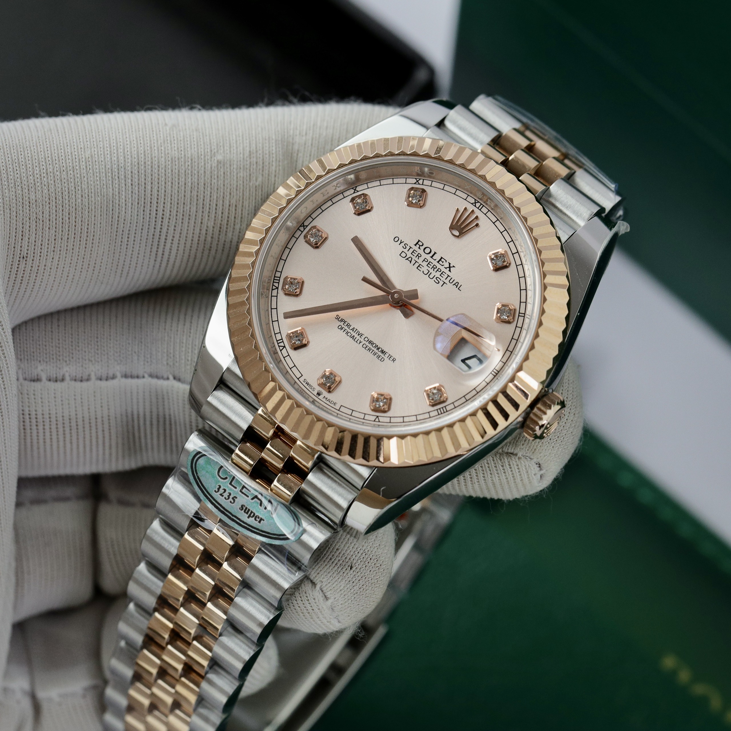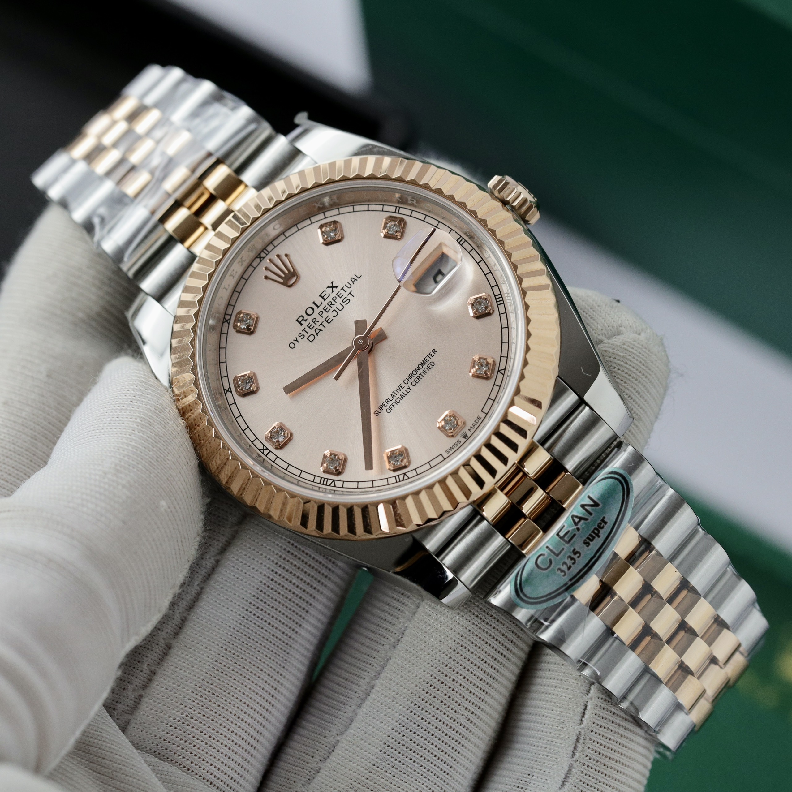 Đặt mua Đồng hồ Rolex Date Just 3235 Clean giá rẻ cọc số đính đá Fake 11 41mm