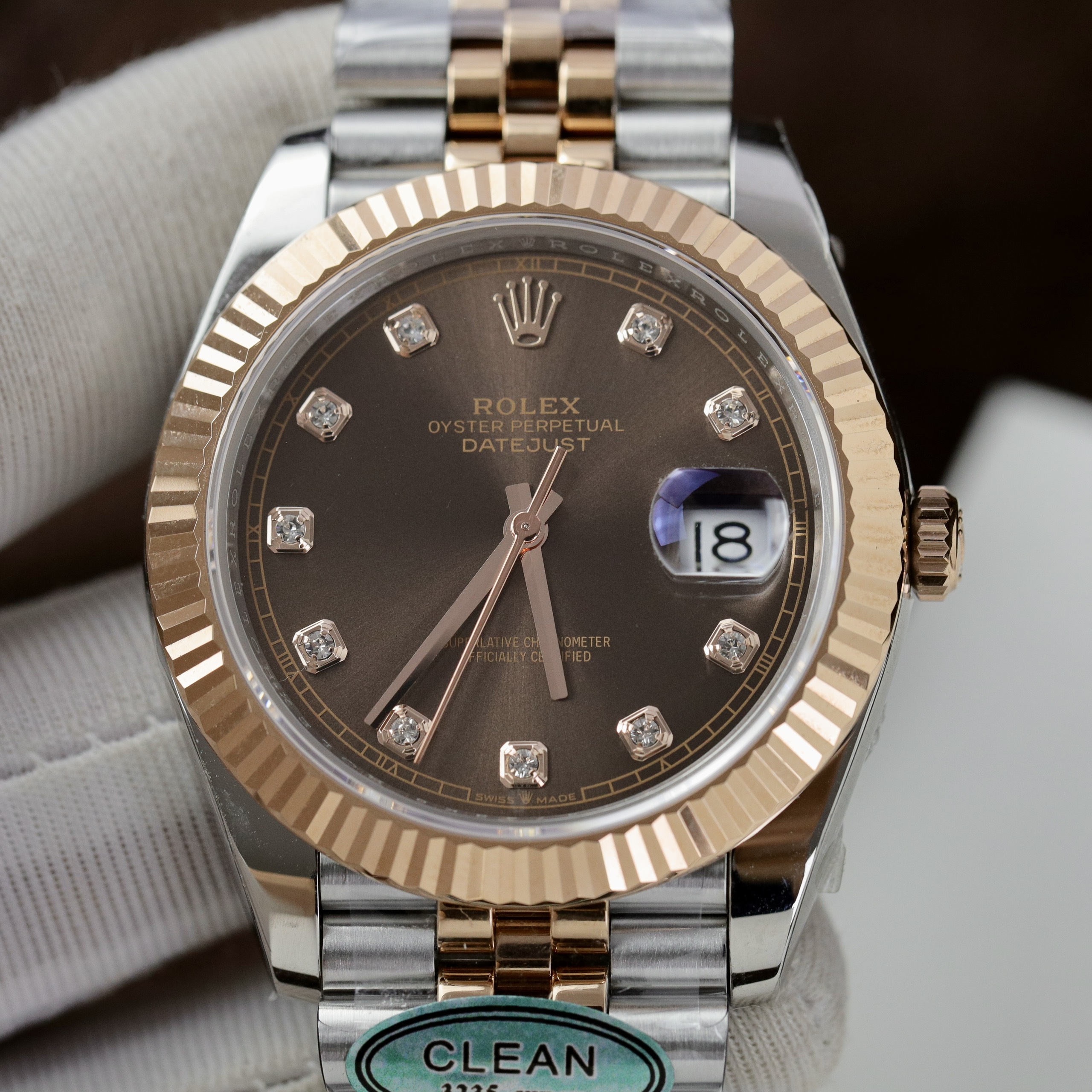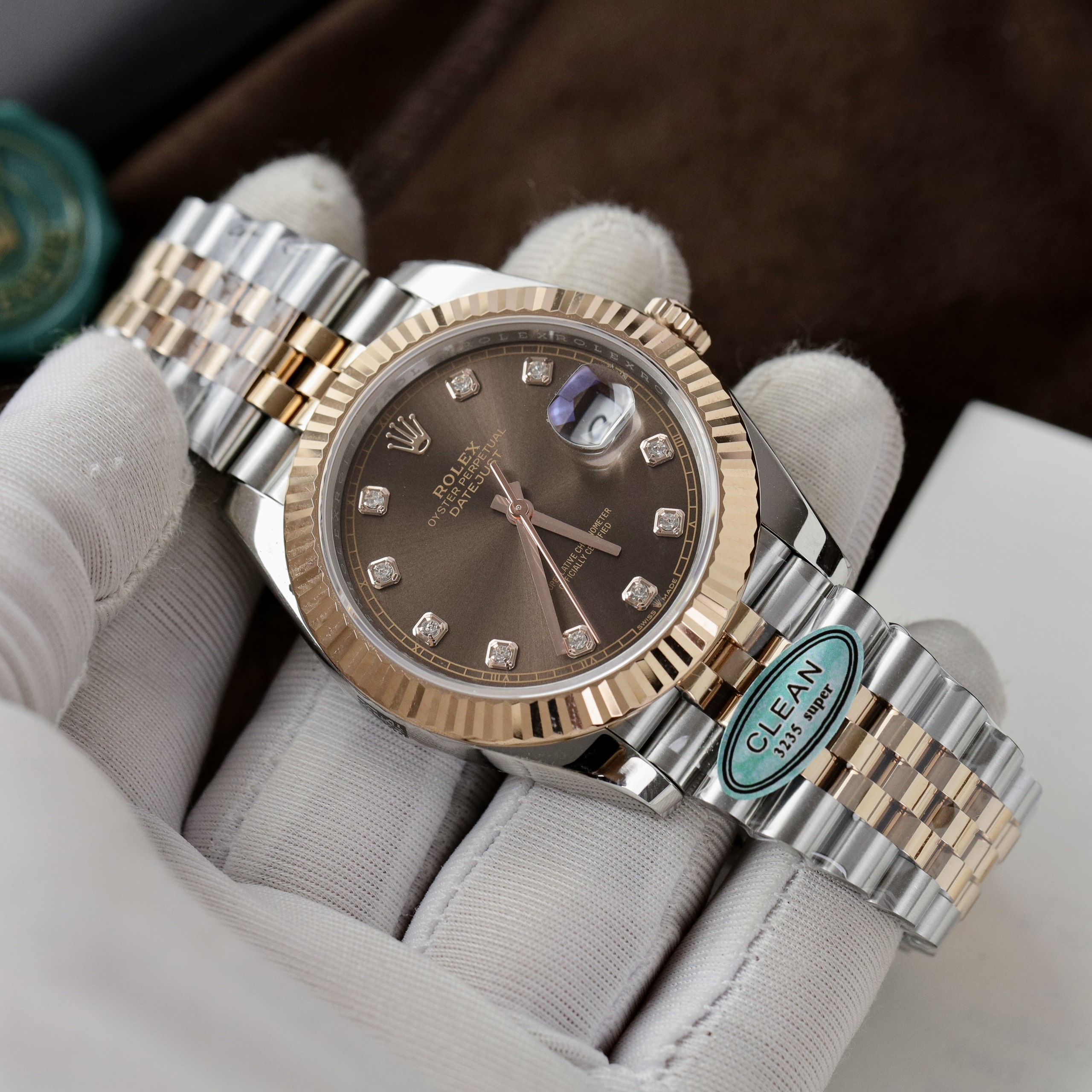 Đặt mua Đồng hồ Rolex Date Just 3235 Clean giá rẻ mặt chocolate Fake cao cấp 41mm