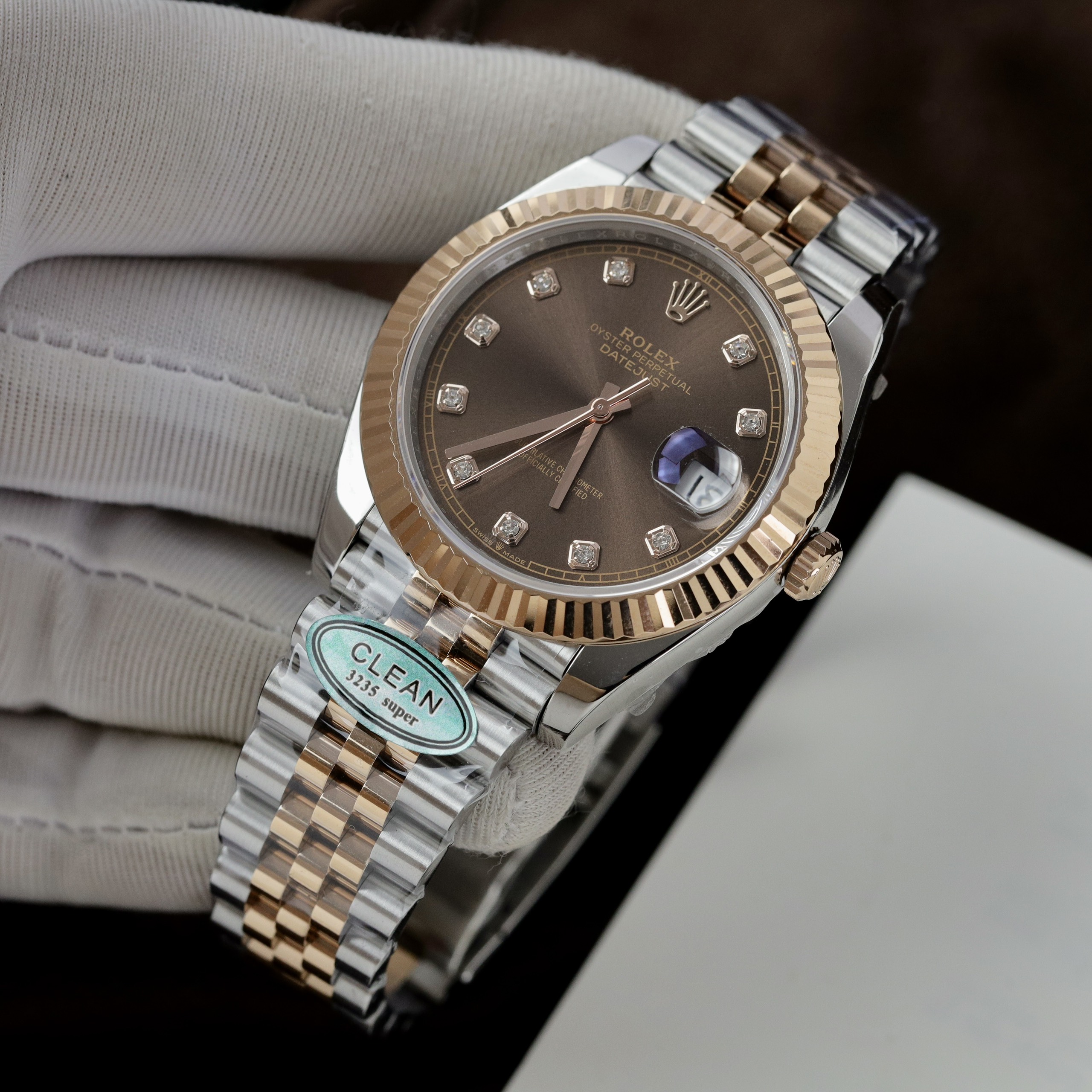 Đồng hồ Rolex Date Just 3235 Clean giá rẻ mặt chocolate Fake cao cấp 41mm