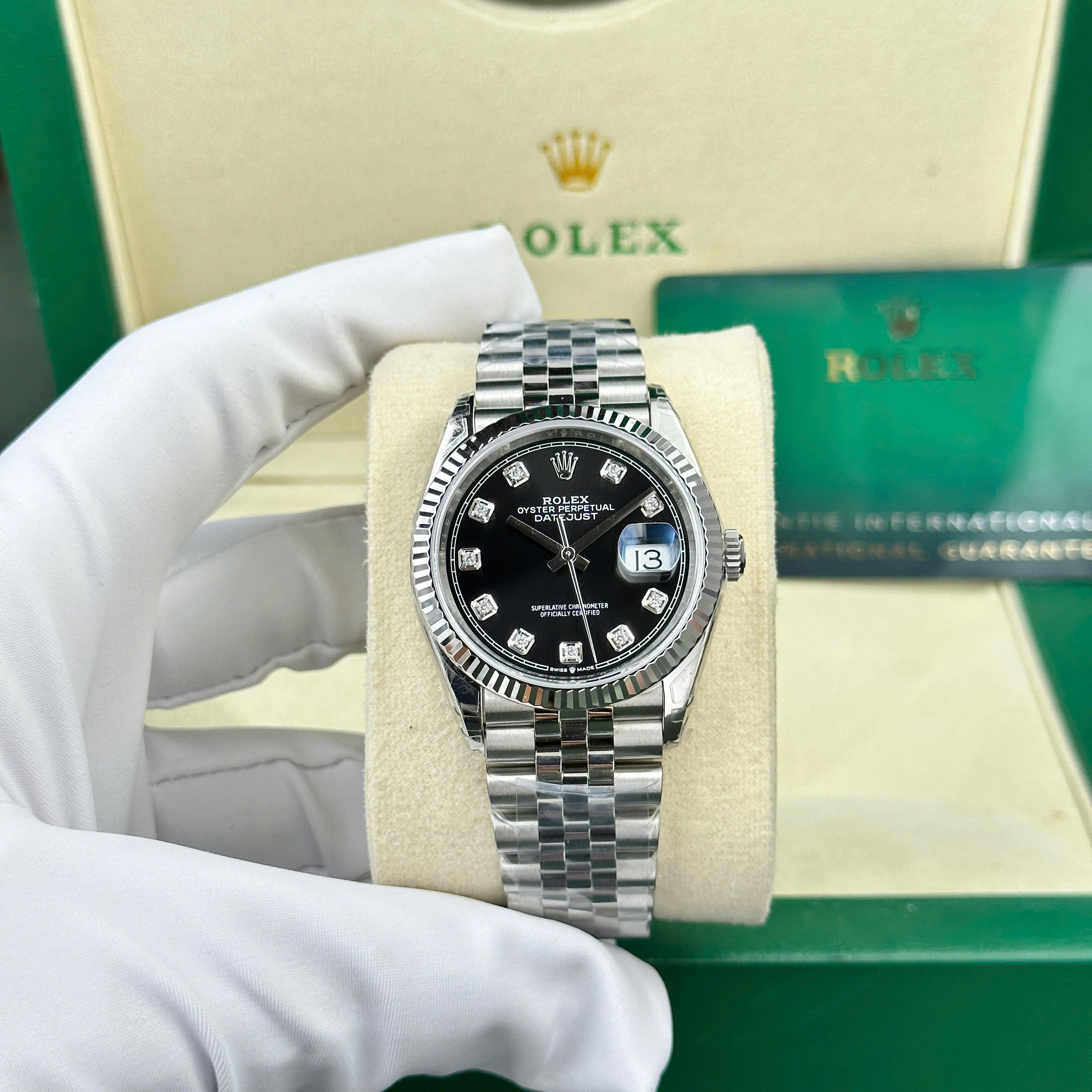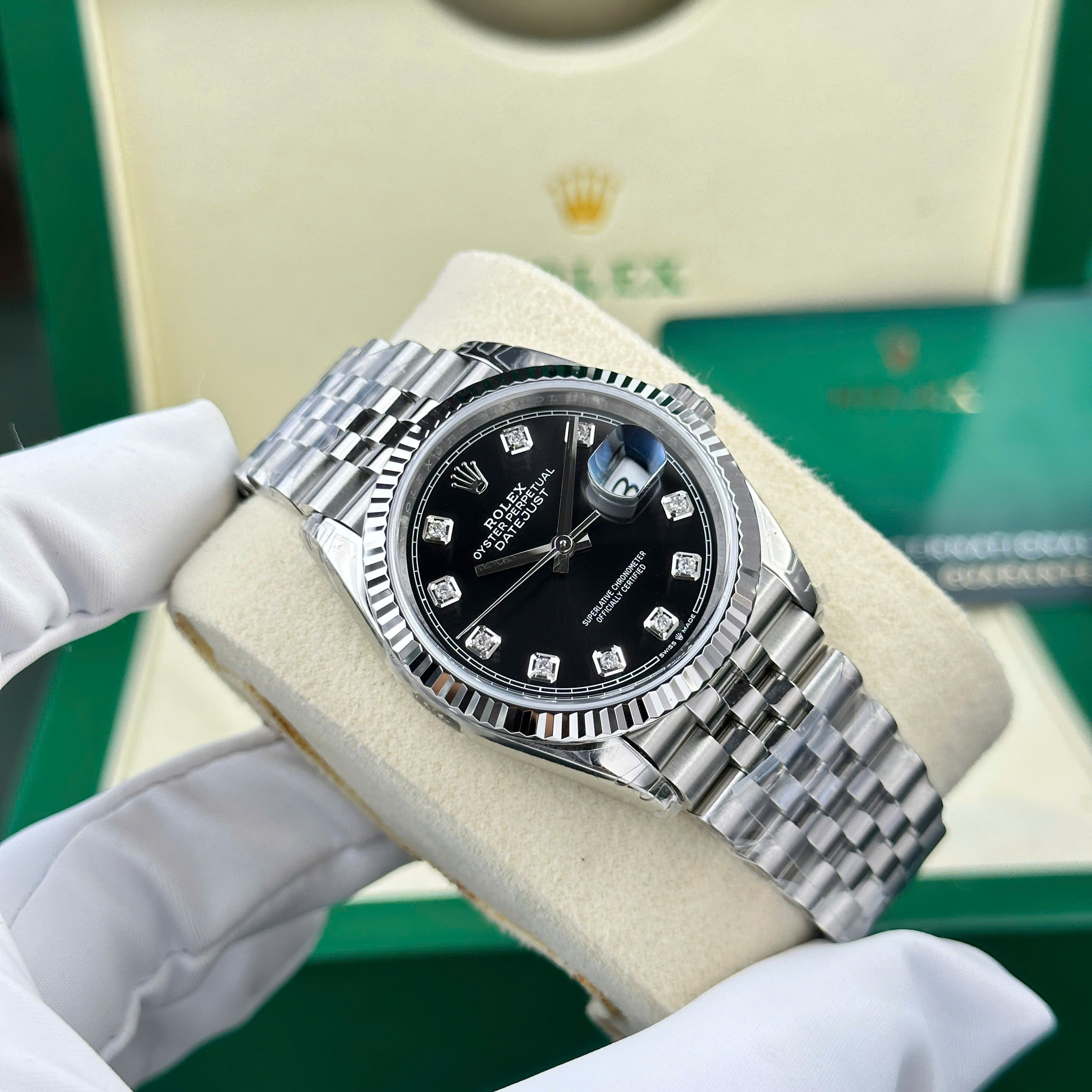 Đồng hồ Rolex DateJust 126234 Replica 11 mặt đen cọc số đính đá nhà máy VS 36mm phiên bản cao cấp nhất tại DWatch.