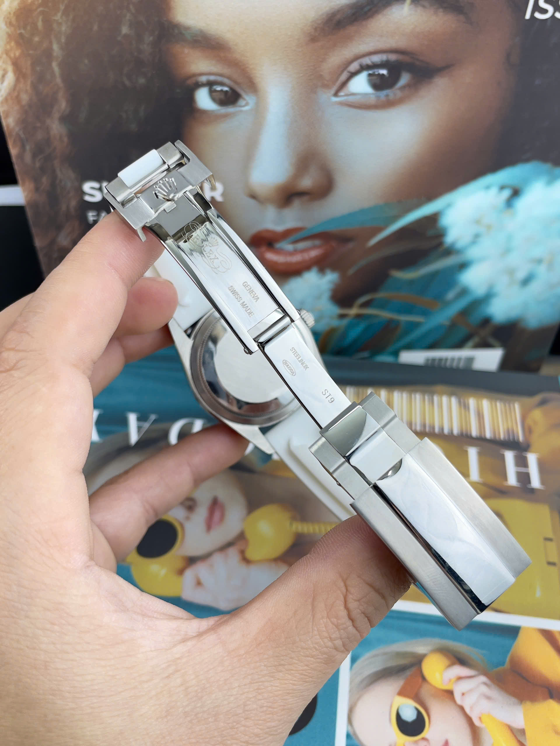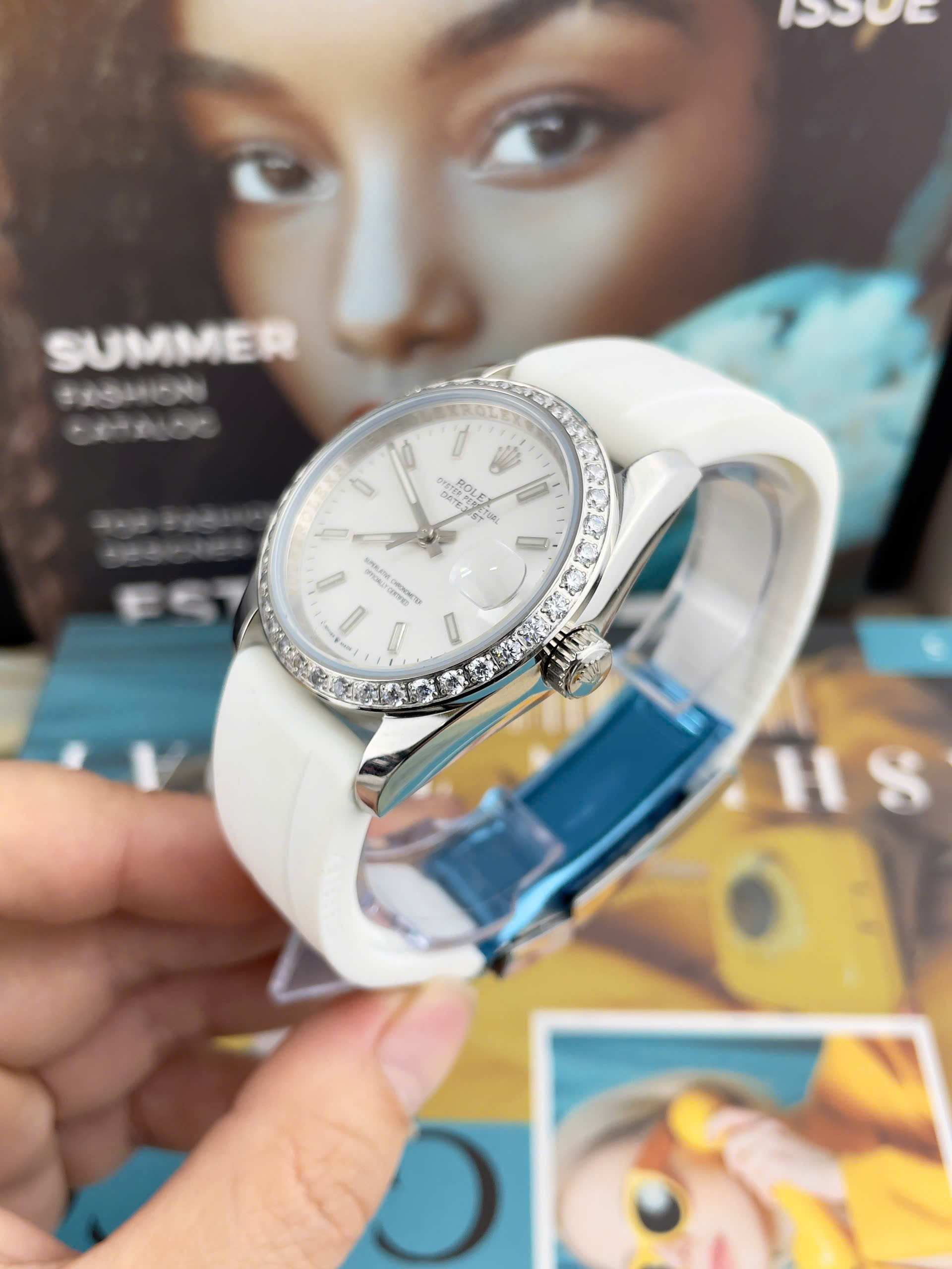 Đặt mua Đồng Hồ Rolex DateJust Nam Dây Cao Su Trắng Cọc Số Dạ Quang Fake Cao Cấp 41mm
