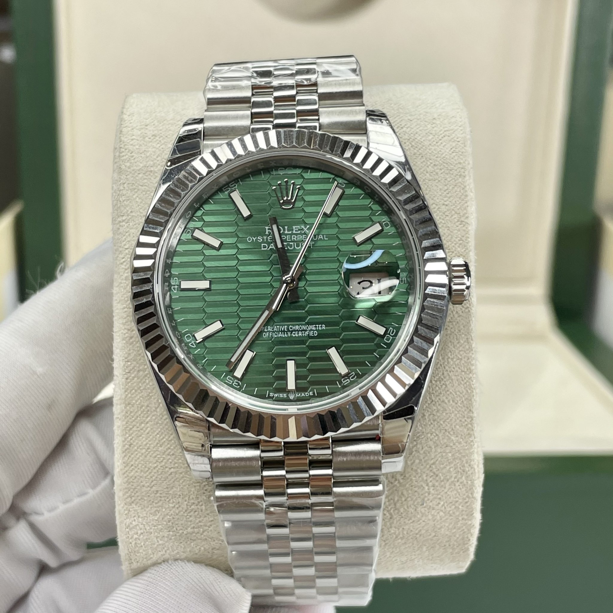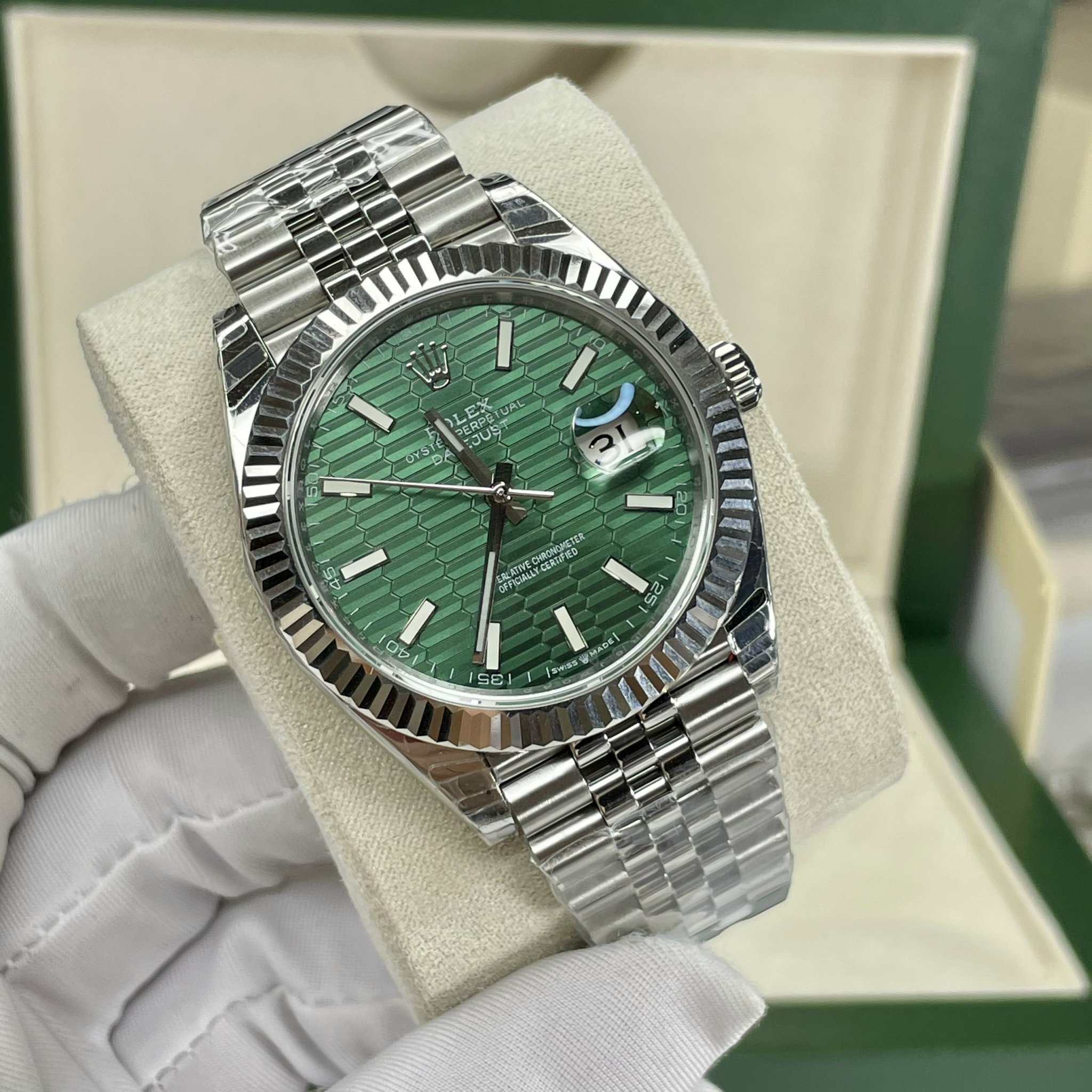 Đồng hồ Rolex DateJust nam máy cơ dây kim loại mặt vân gấp xanh green fake cao cấp