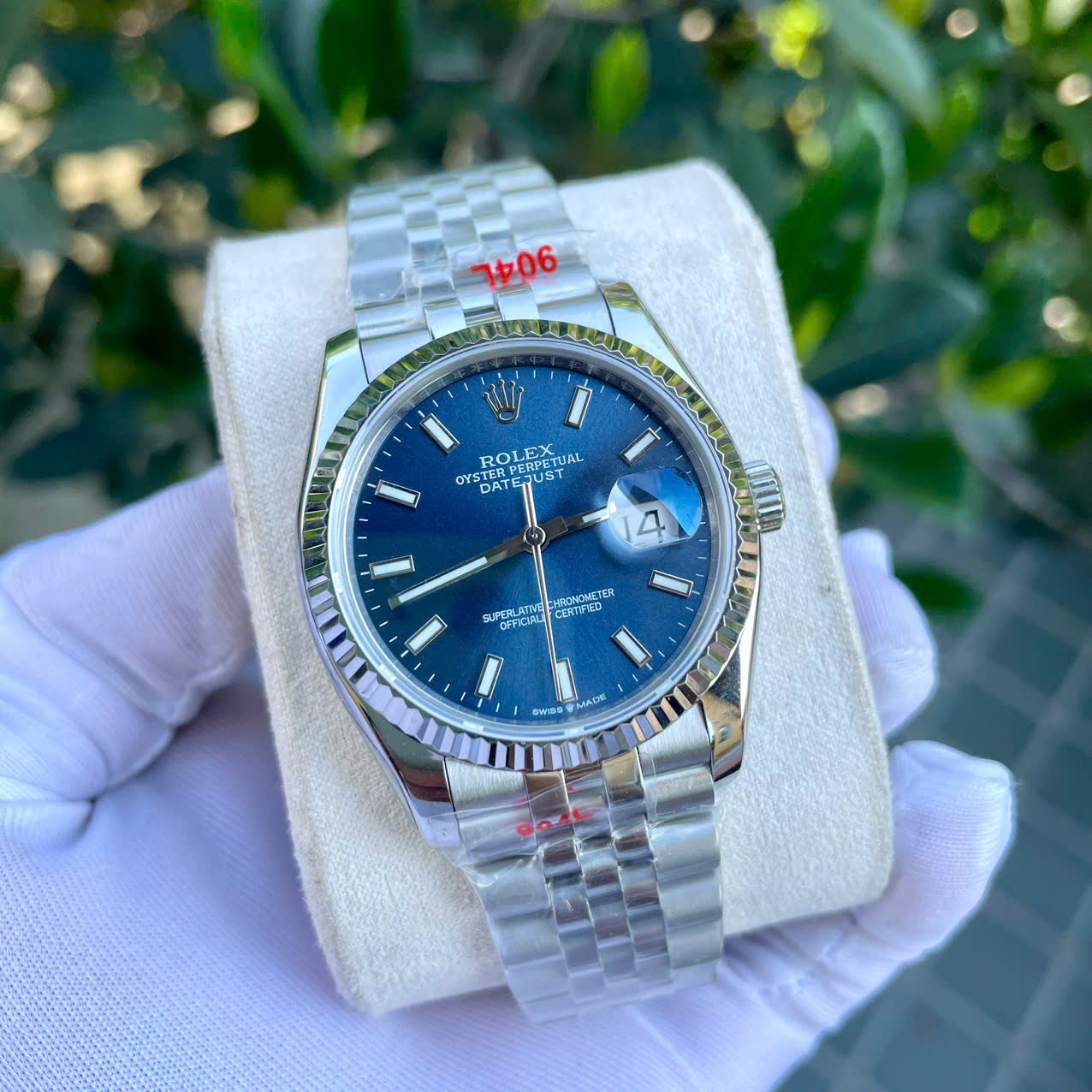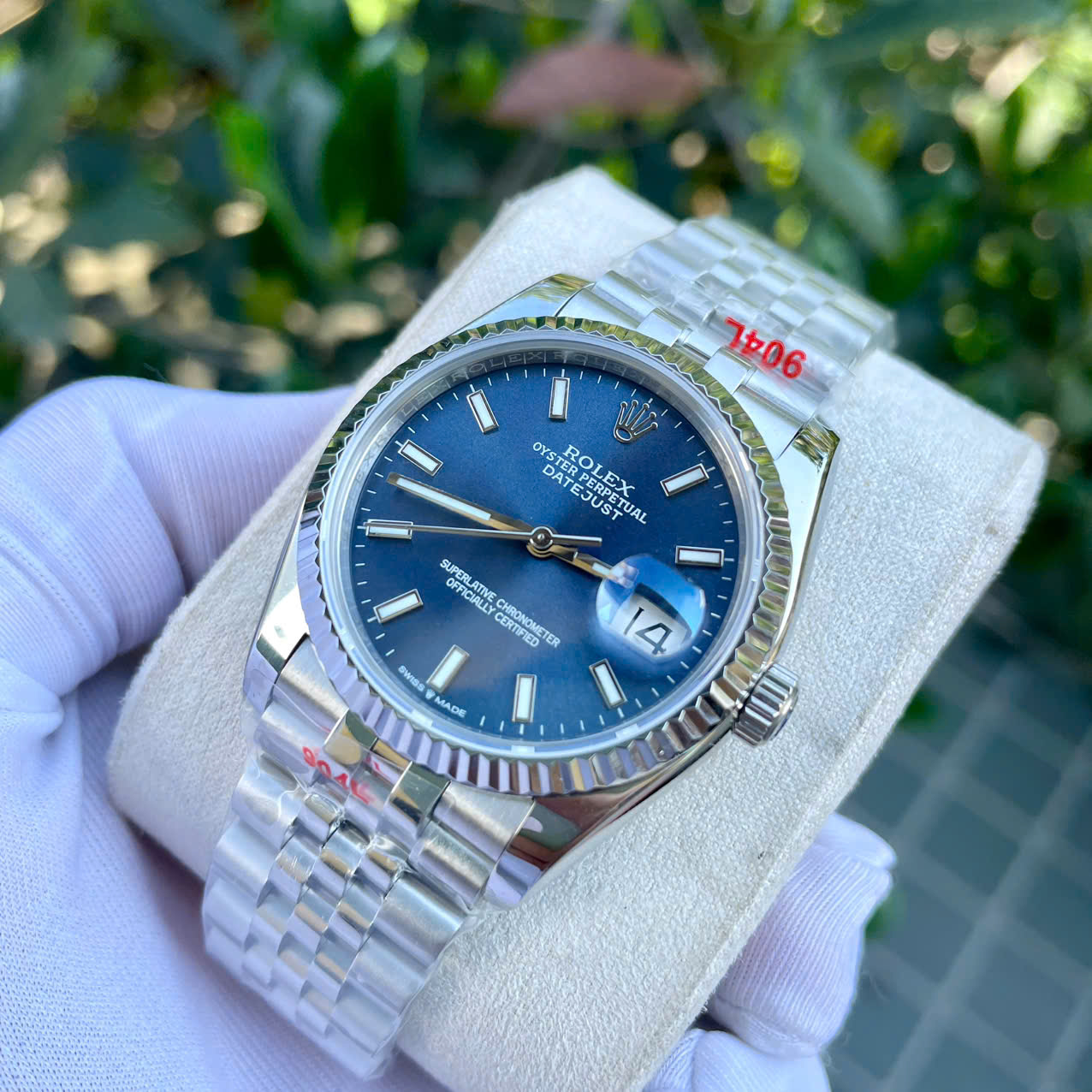 Đồng hồ Rolex nam dây kim loại mặt màu xanh dương